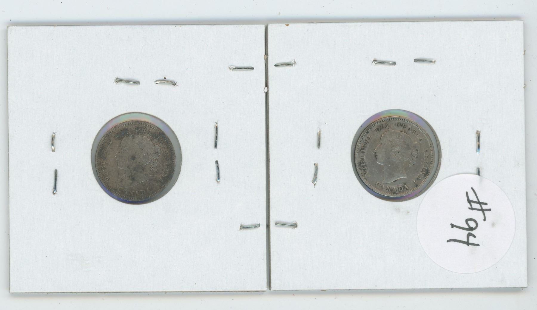 Set Of 2 CDN 5 Cent 1900 Small Date, 1901