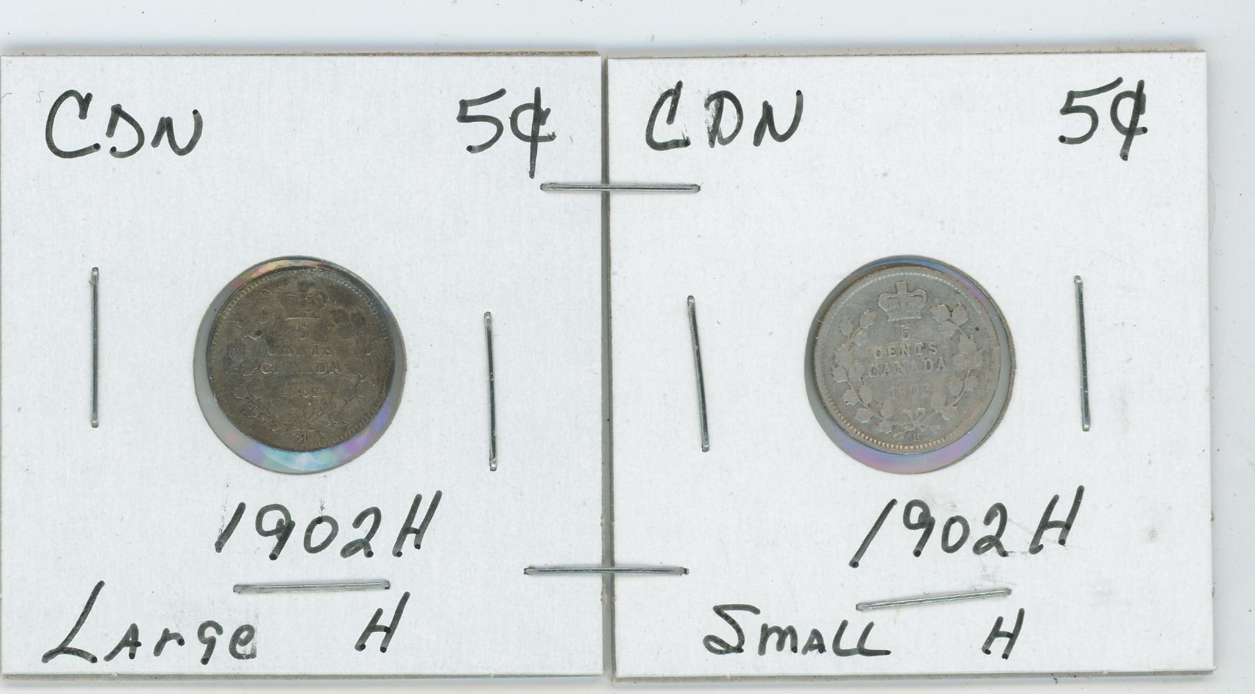 Set Of 2 CDN 5 cent 1902 H, 1902 H