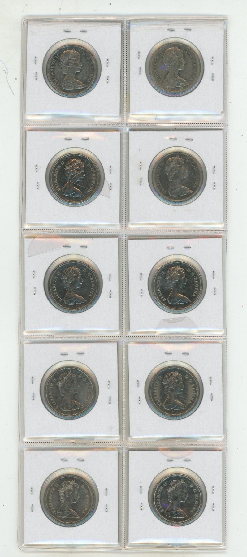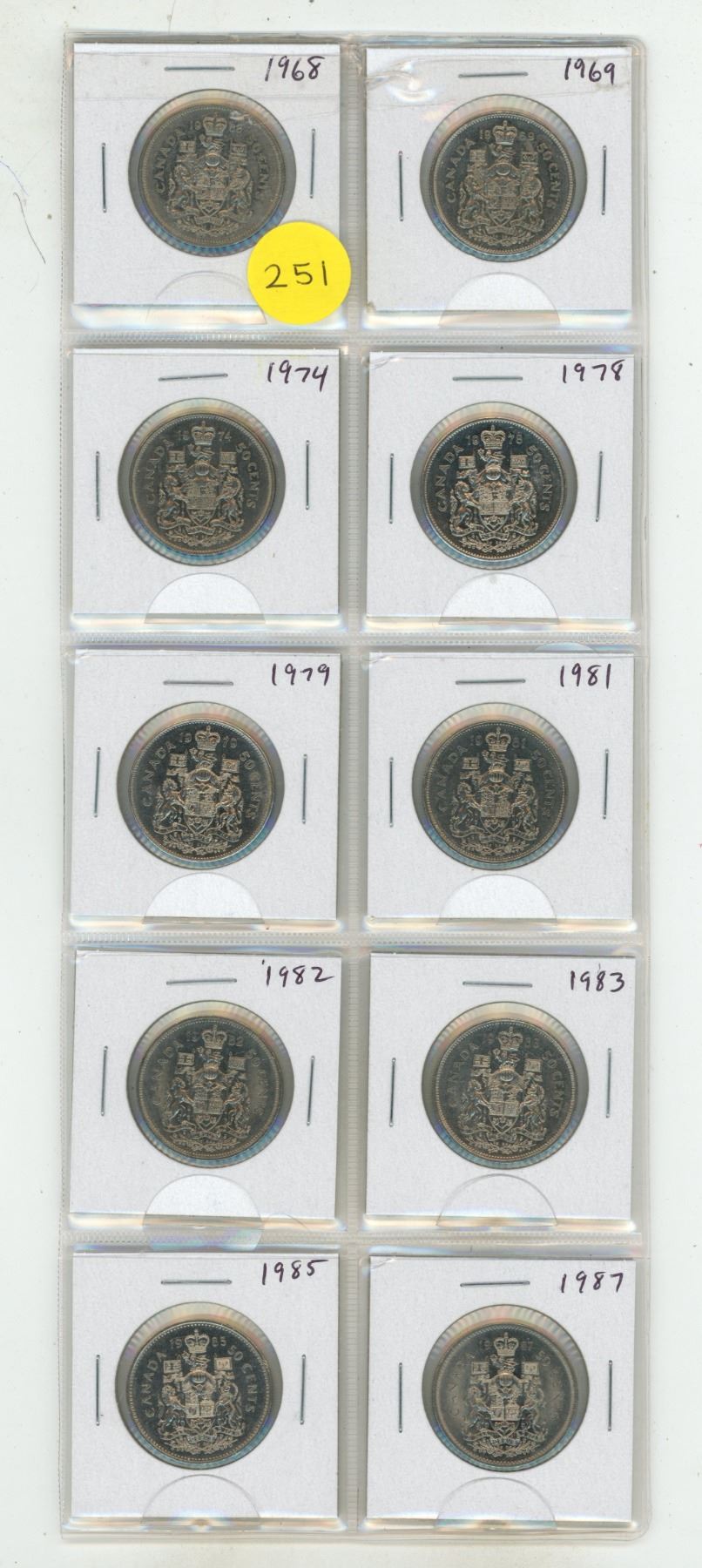 Set of 10 Canadian 50 Cents. 1968 – 1987.