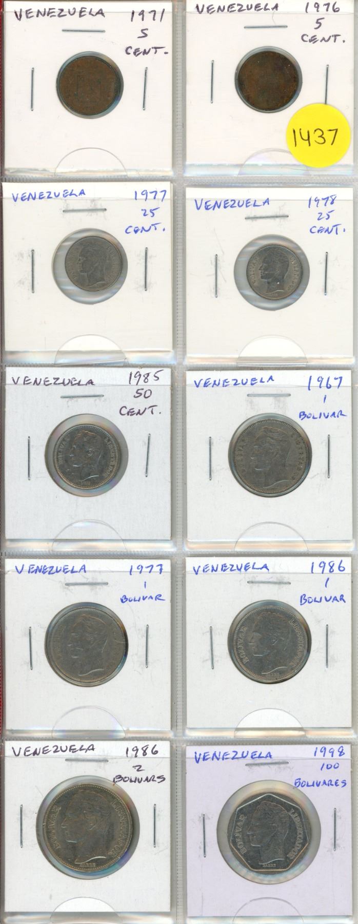 Set of 10 coins from Venezuela.