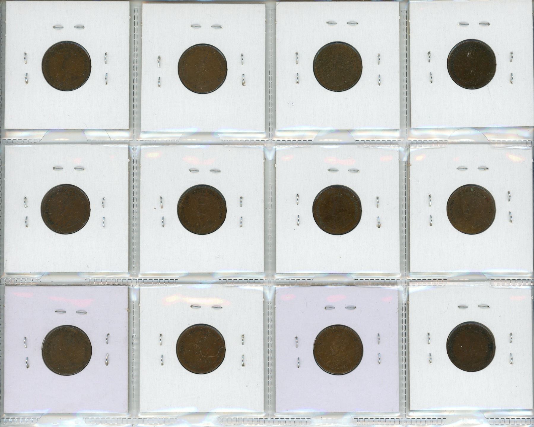 Set of 12 Canadian George V Small Cents. Includes 1920, 1921, 1927, 1928, 1929, 1930, 1931, 1932, 19