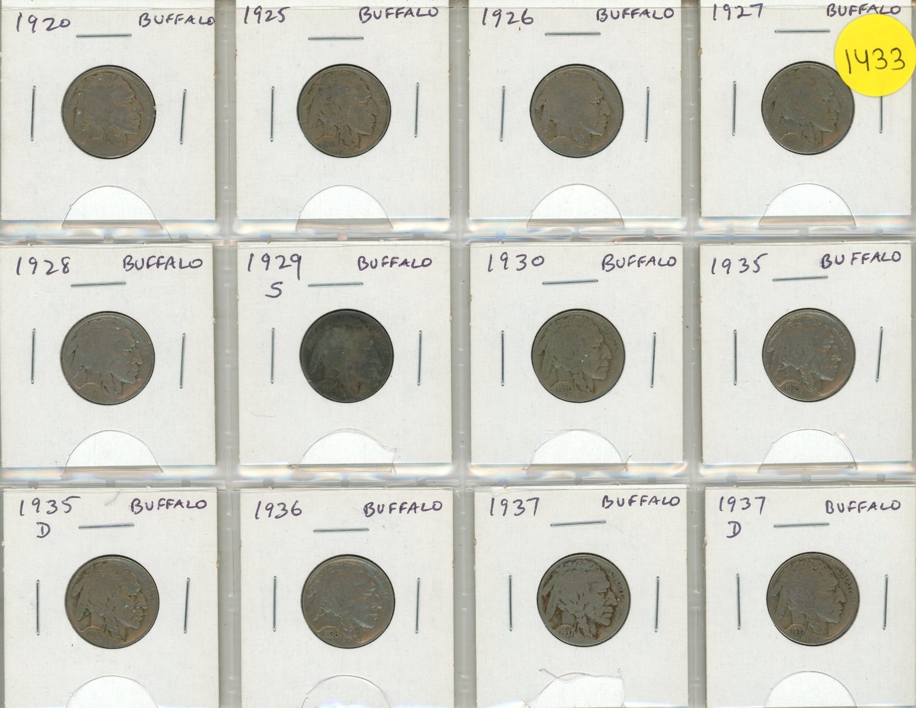 Set of 12 U.S. Buffalo Nickels from 1920 to 1937D.