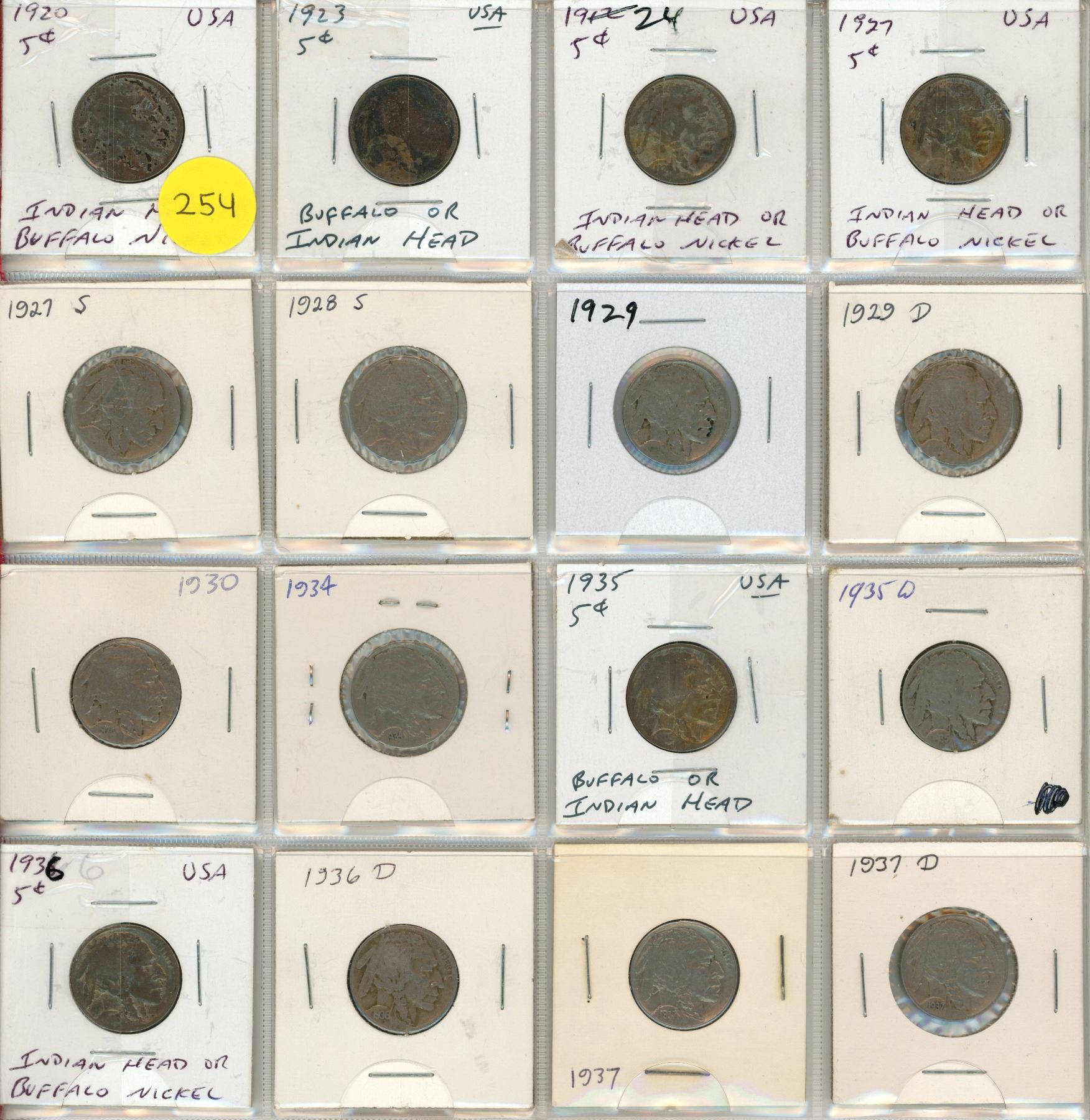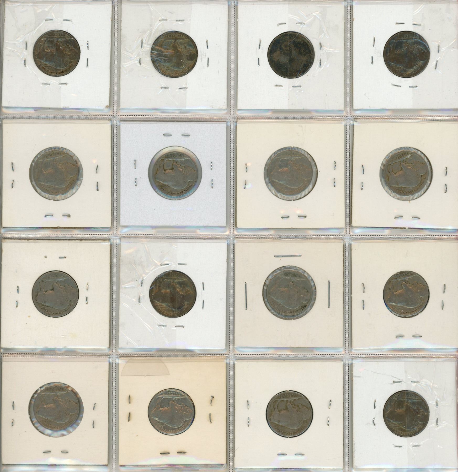 Set of 16 different U.S. Buffalo Nickels 1920 – 1937D.