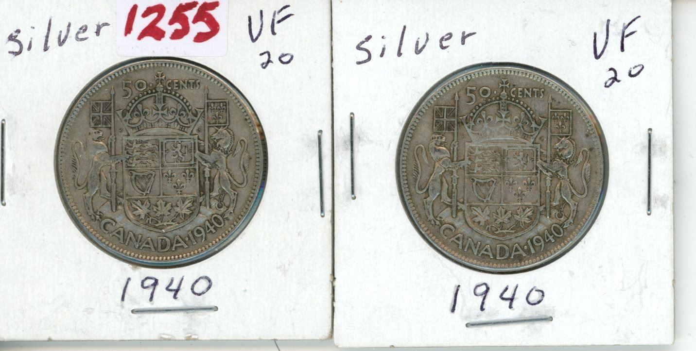 Set of 2 1940 Canadian Silver 50 Cent Coins - King George VI