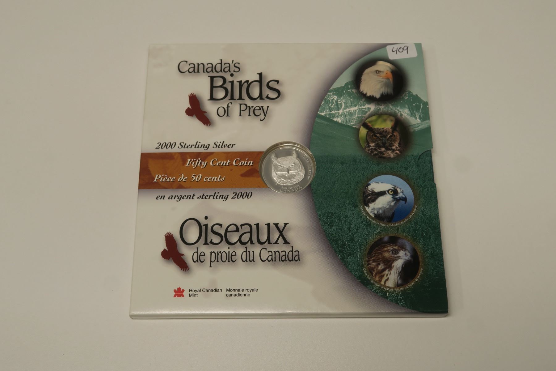 Set of 2 2000 Sterling Silver 50 Cents. Birds of Prey. Great Horned Owl. In RCM folder.