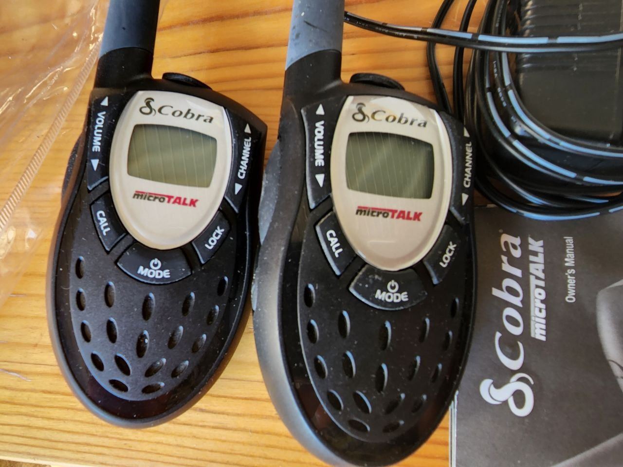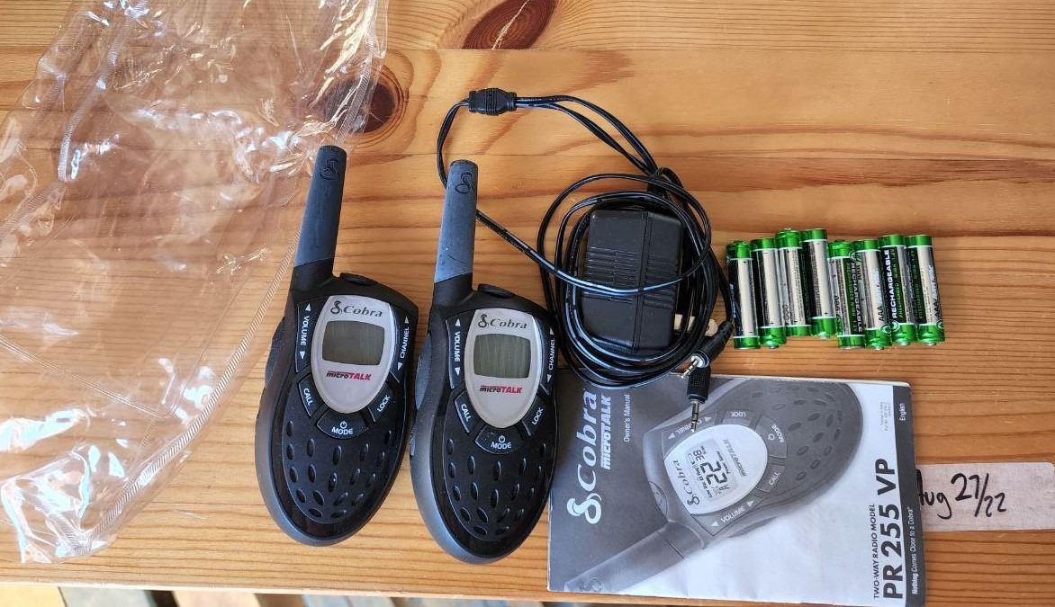 Set of 2 "Cobra" MicroTalk Walkie Talkies, extra batteries and charger. (Tested Working)