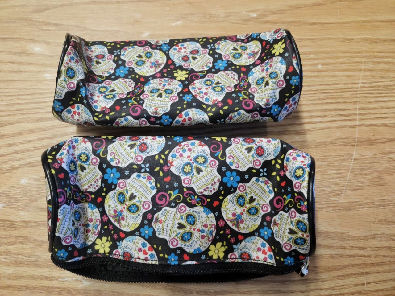 Set of 2, Day of the Dead Skulls Pencil Case, Circle End