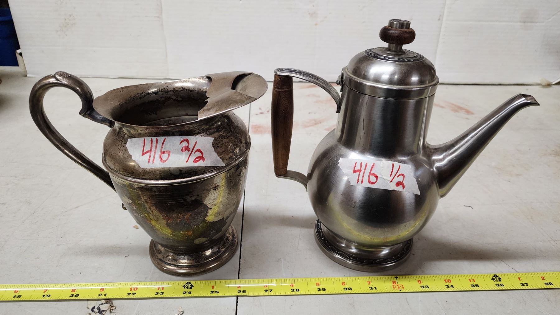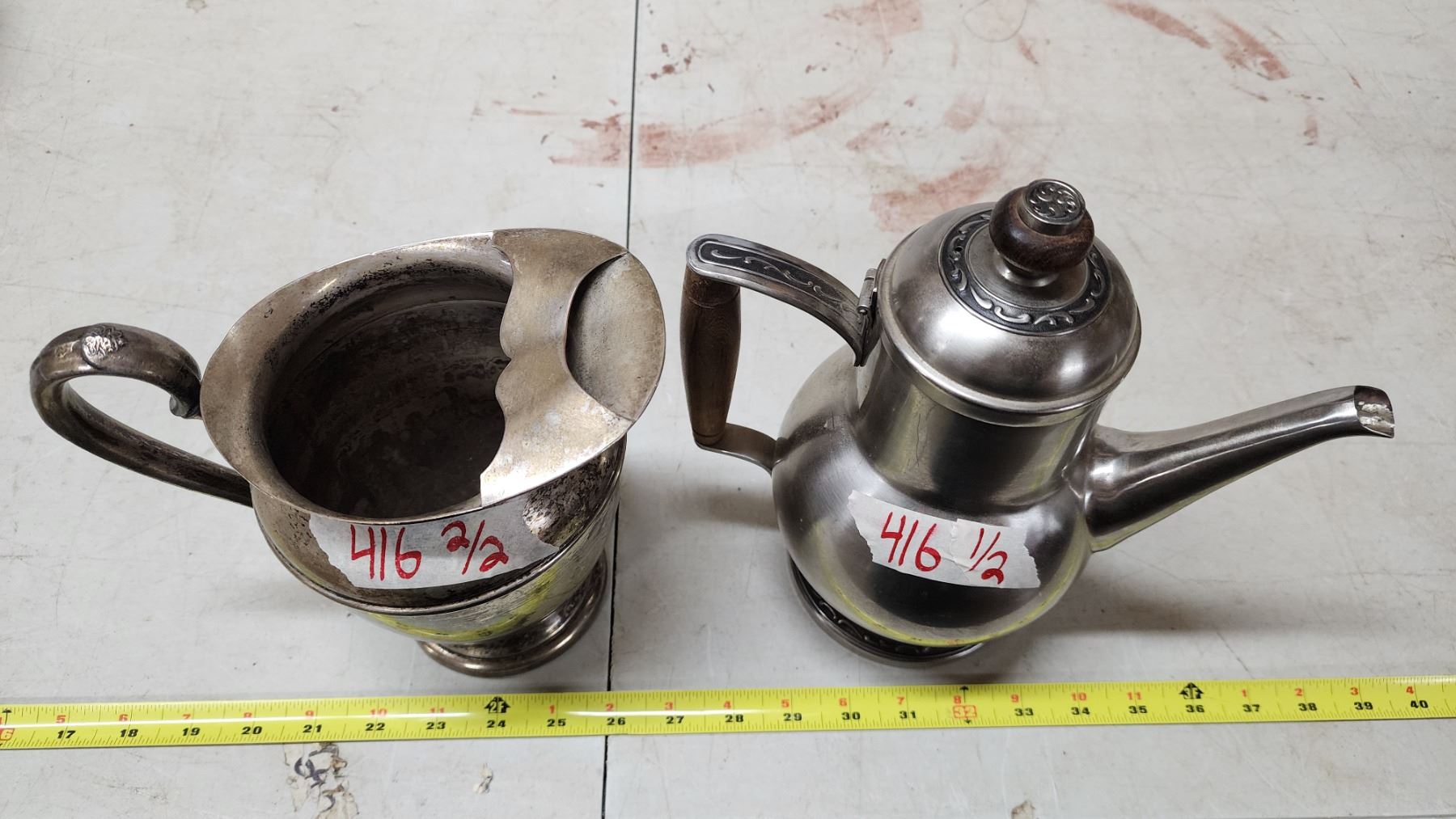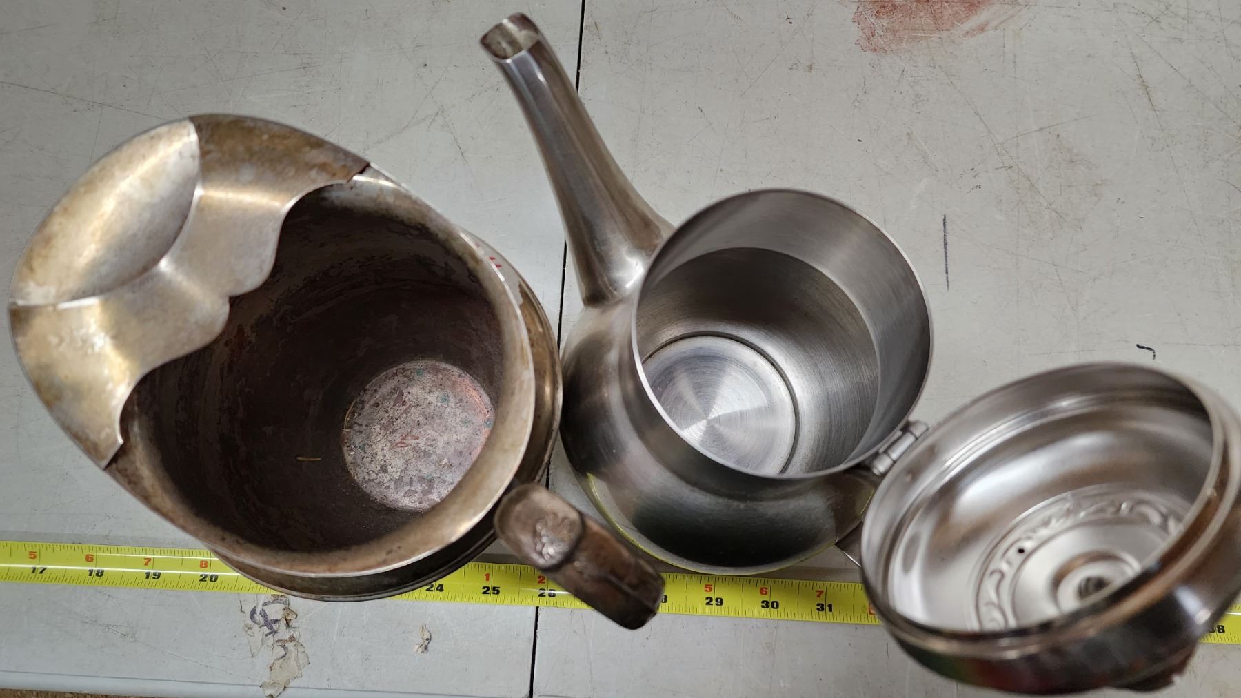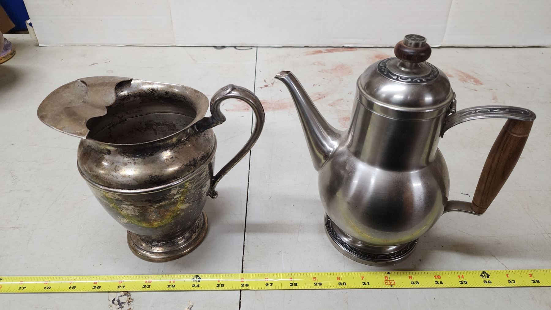 Set of 2, Electroplated Silver over Copper pitcher & Stainless steel kettle