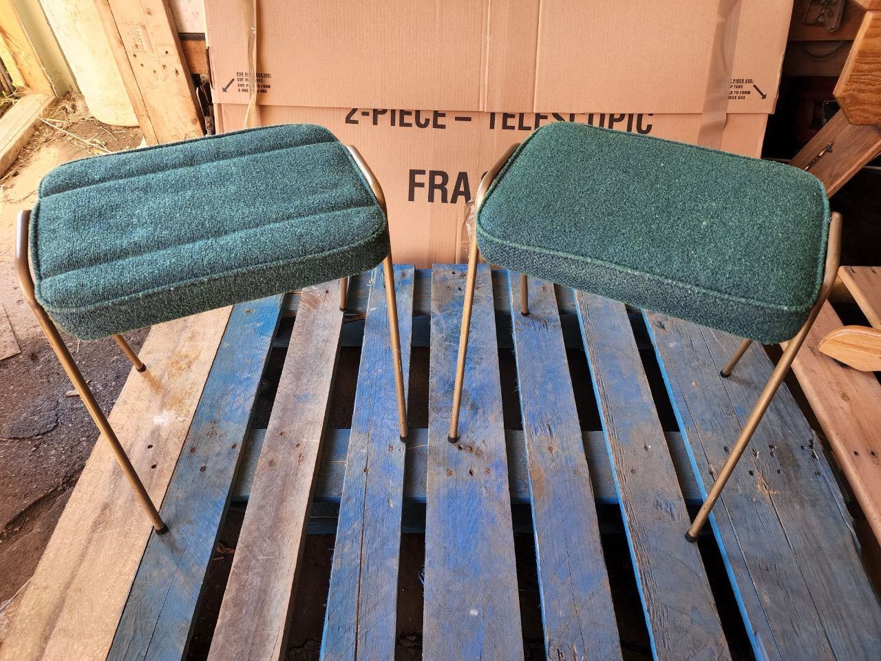 Set of 2, Green Stool Seats H-1ft 5 1/2"
