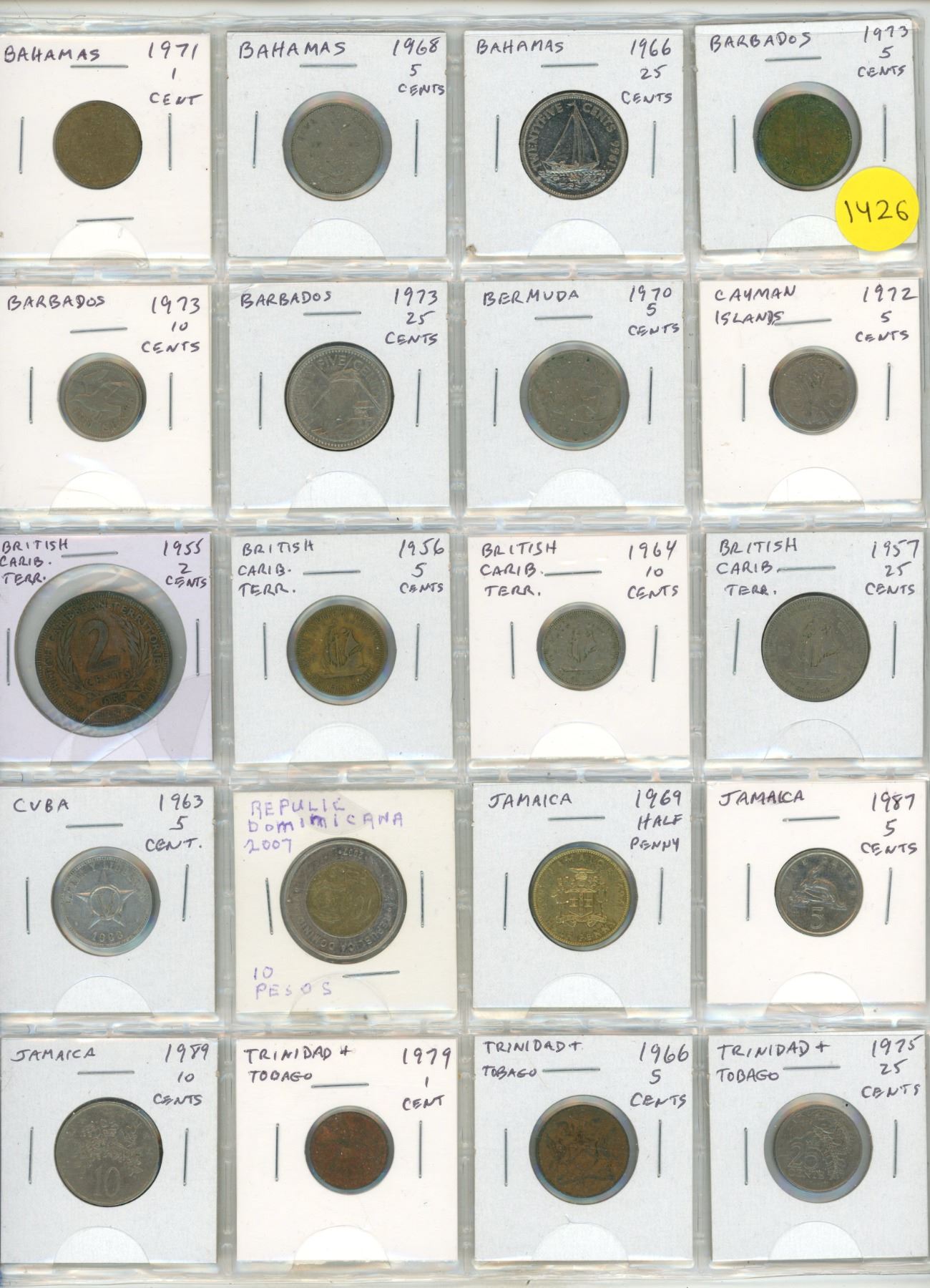 Set of 20 Caribbean coins from Bahamas to Trinidad and Tobago.