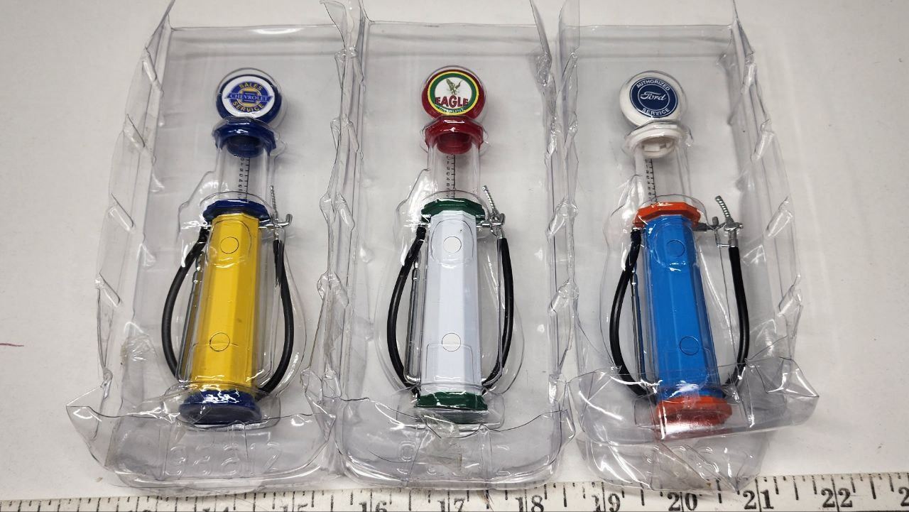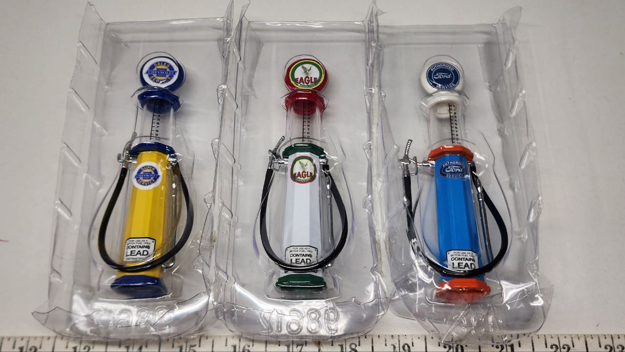 Set of 3 - 5 inch high Resin Gas Pumps - Chevrolet, Ford, Eagle (New)