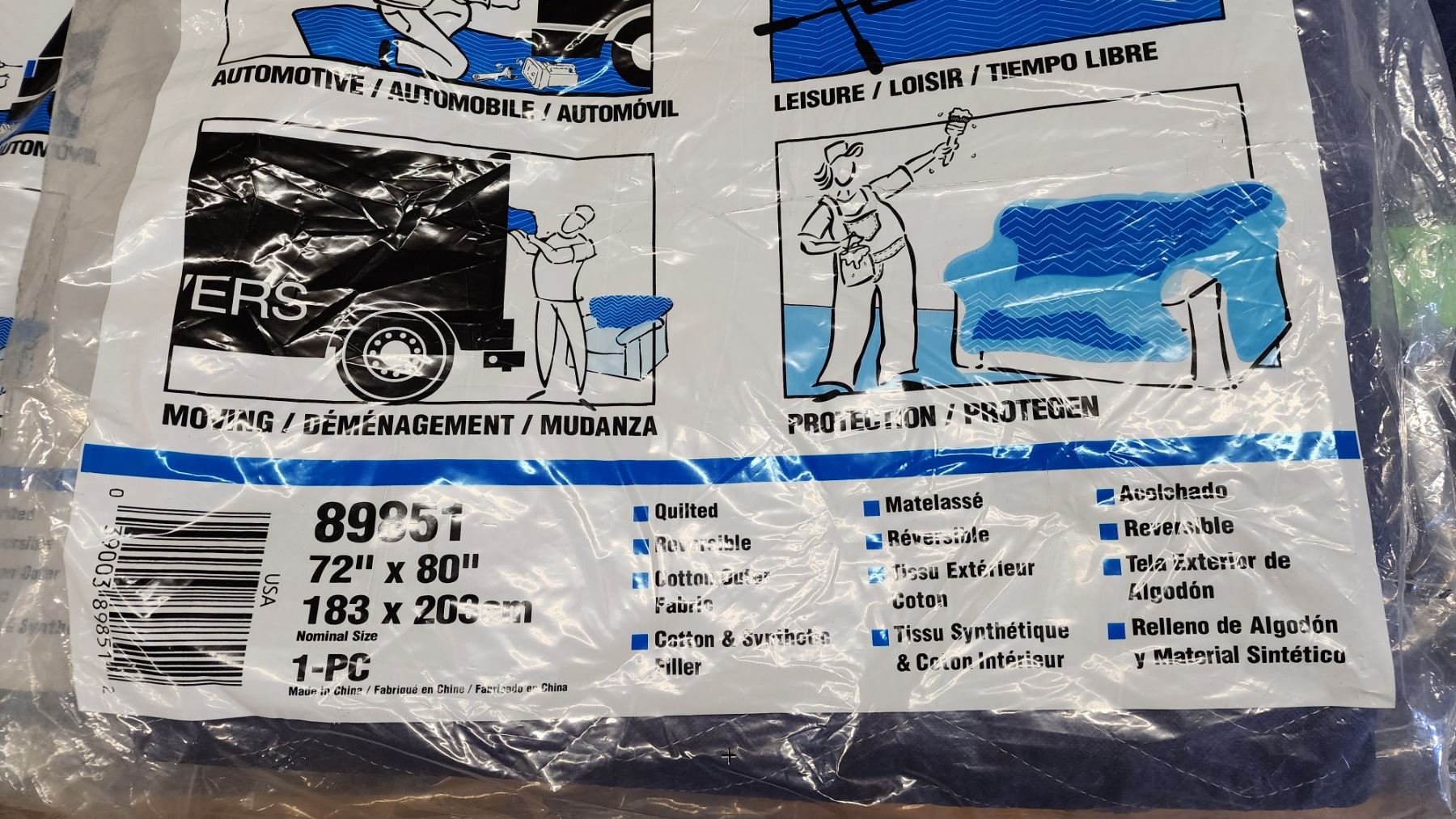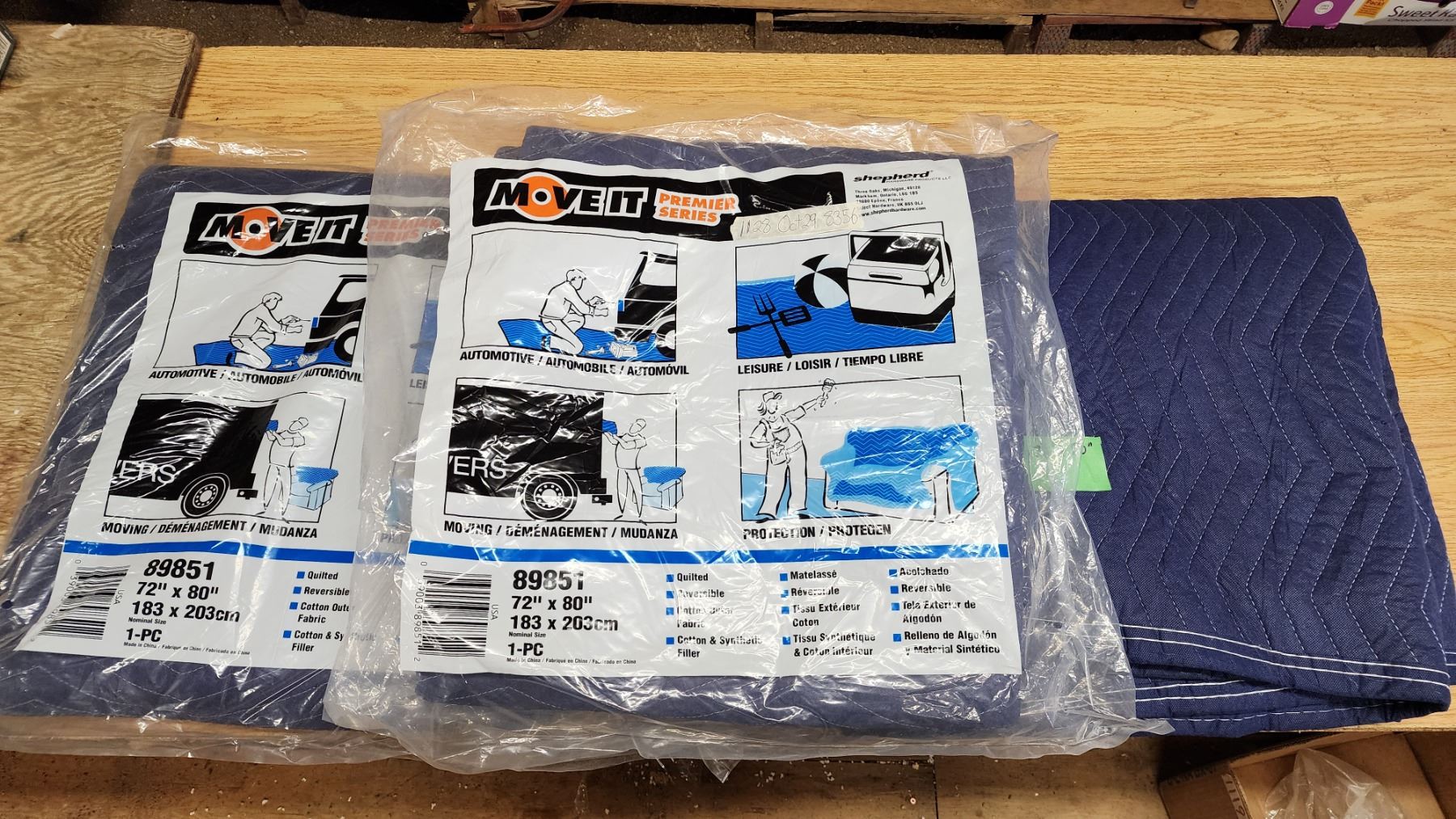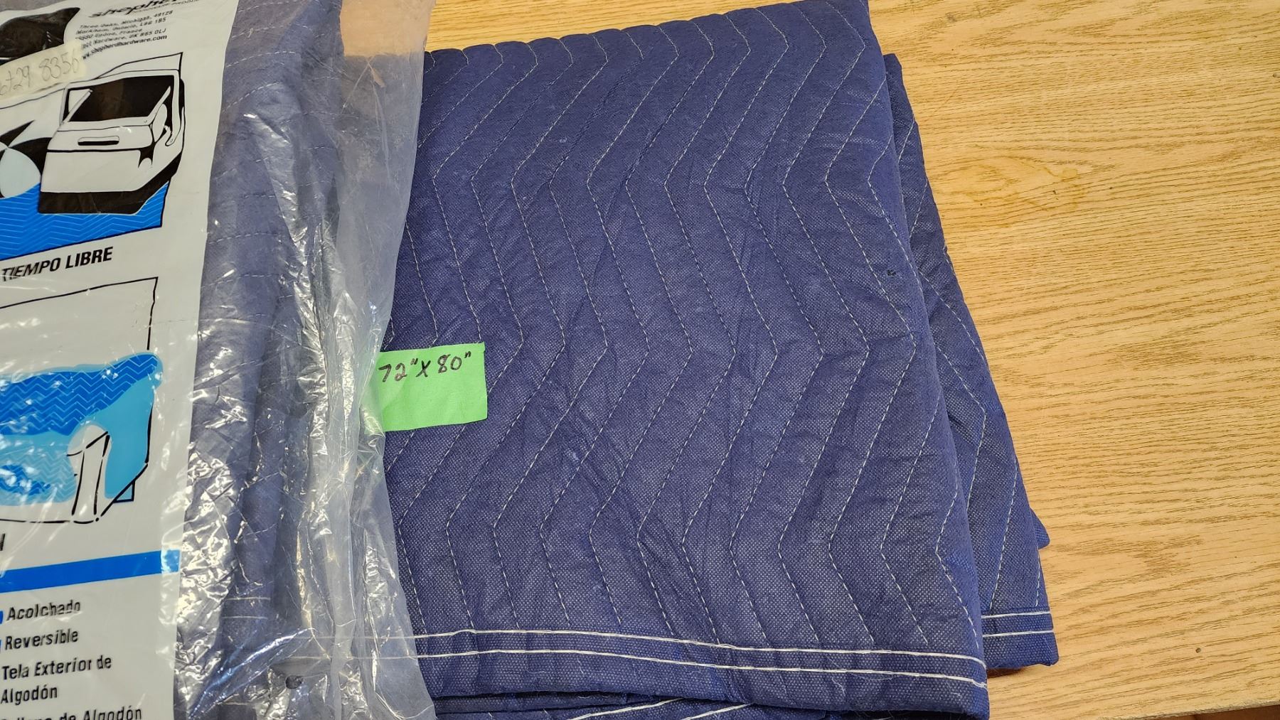 Set of 3, Blue Moving blankets - 2 are new, sealed in bags & One loose - All 72" x 80"