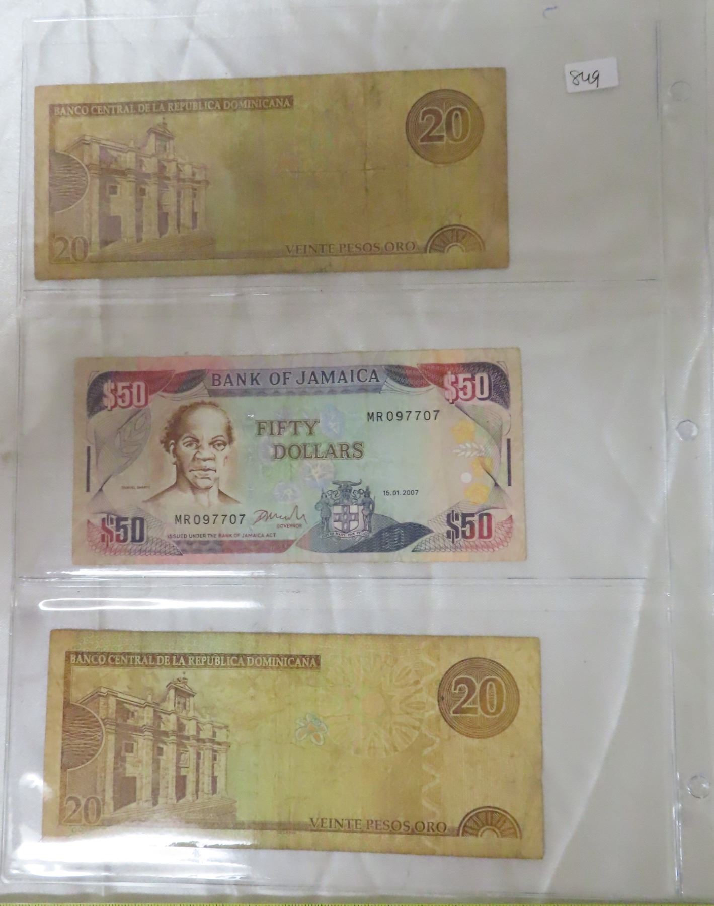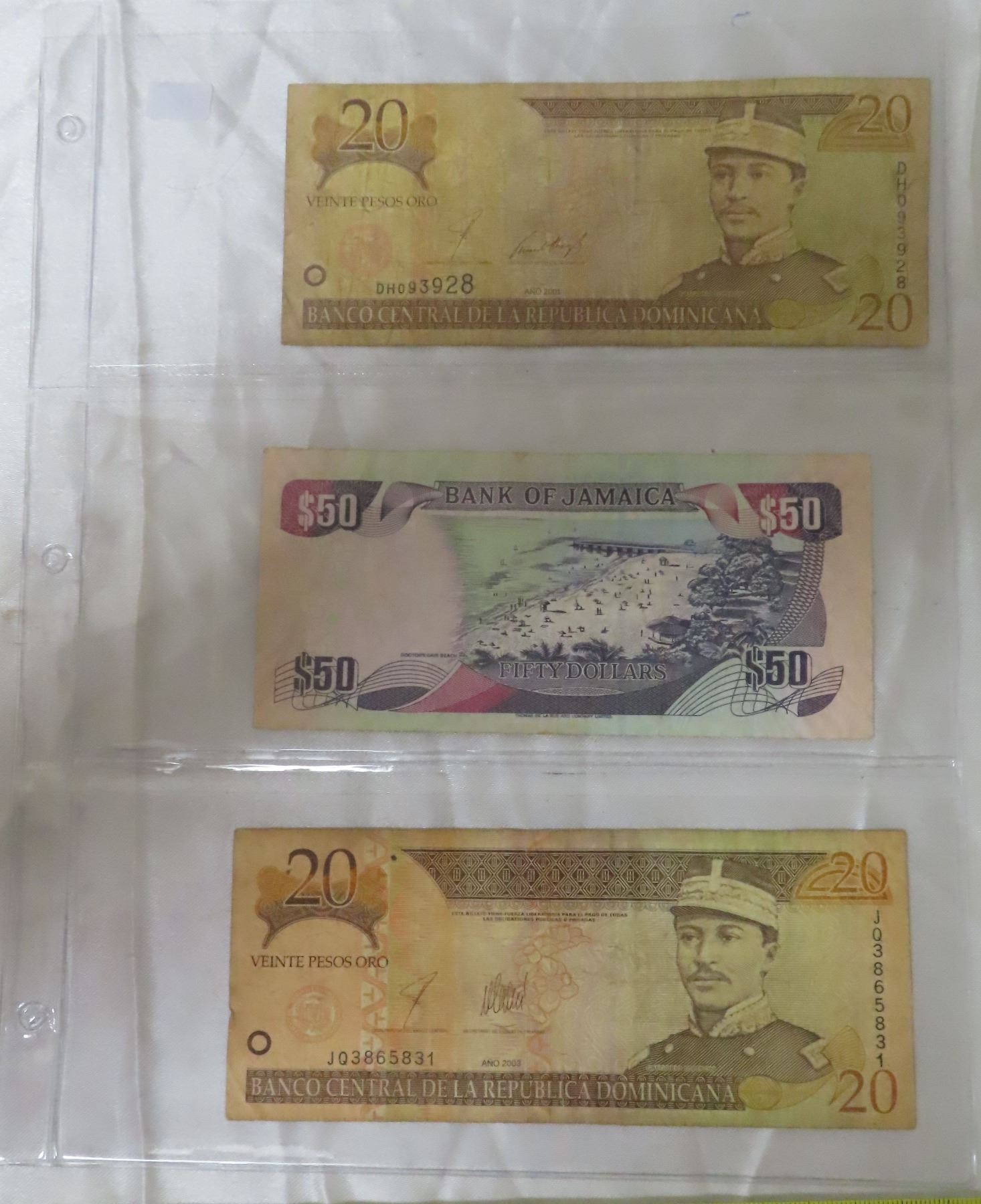Set of 3 Different bills ( dominican republic 20 pesos 2003 and 2001, jamaica 50 dollars 2007