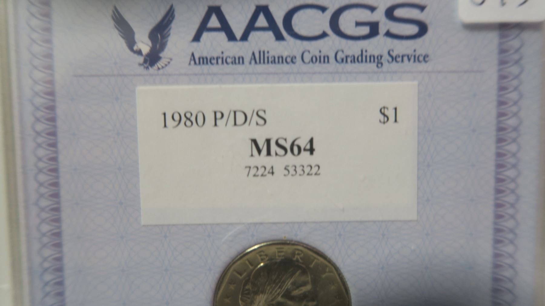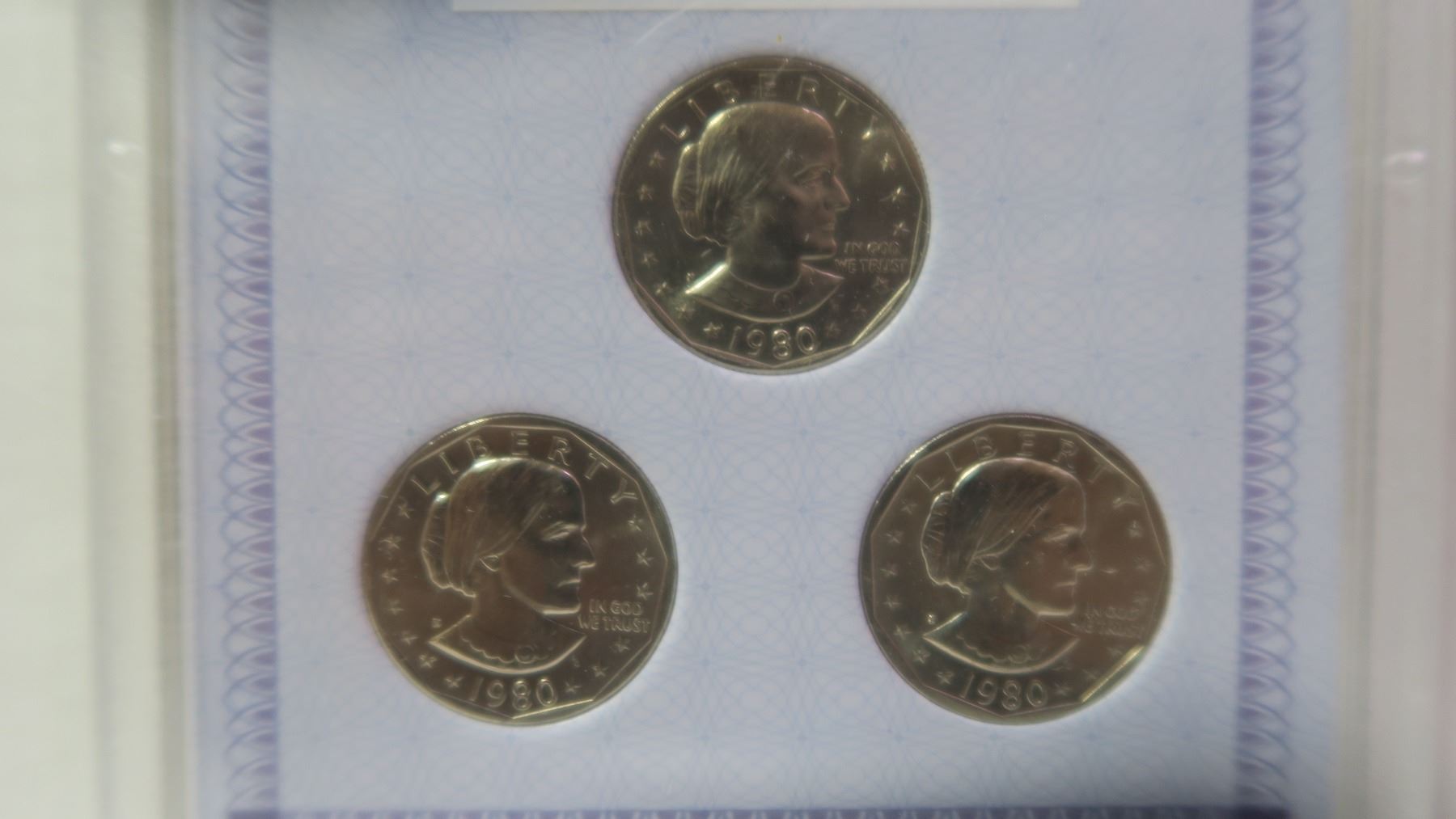 Set of 3 U.S. 1980 P/D/S Susan B. Anthony Dollars. AACGS certified & graded MS-64.