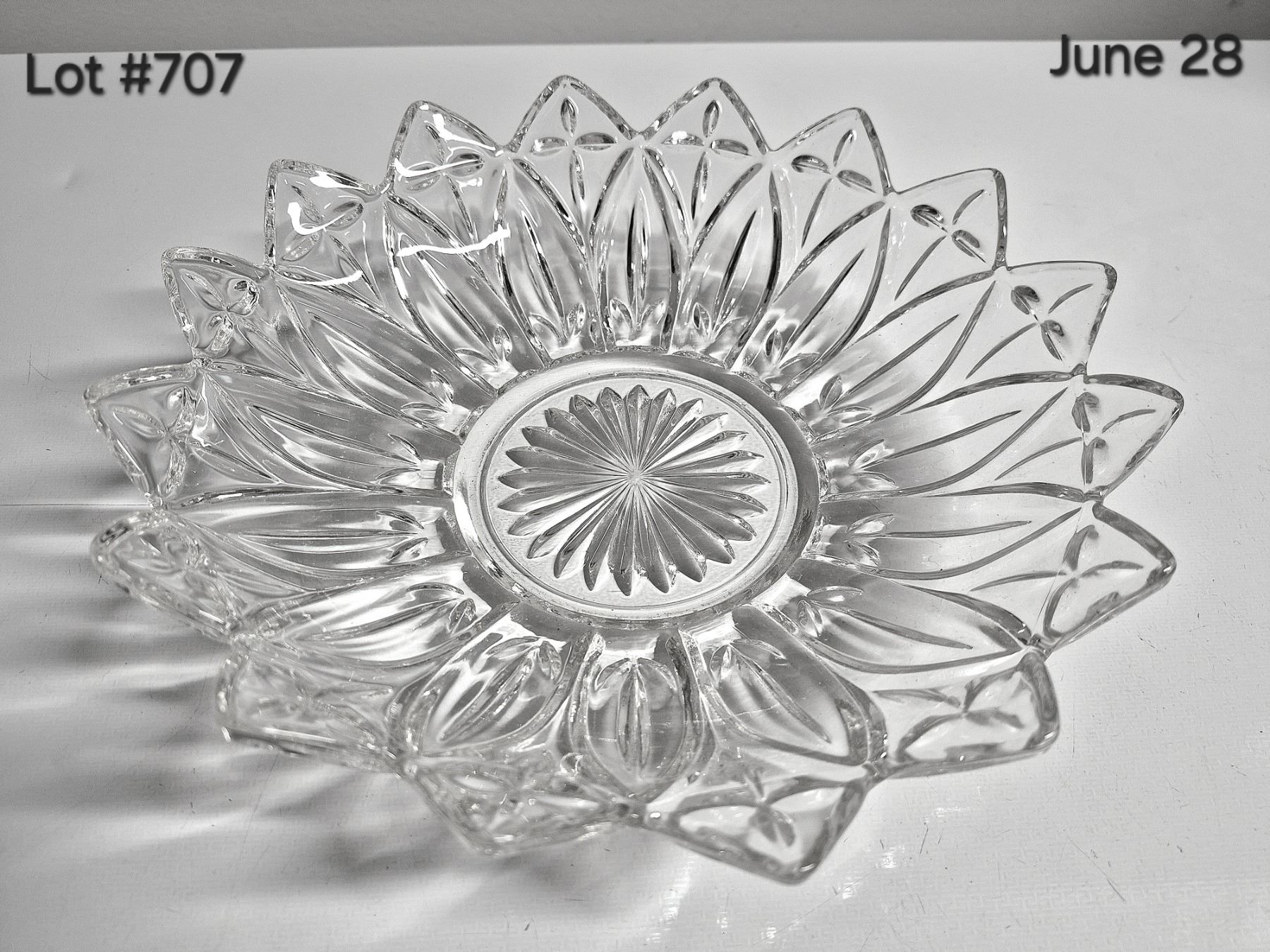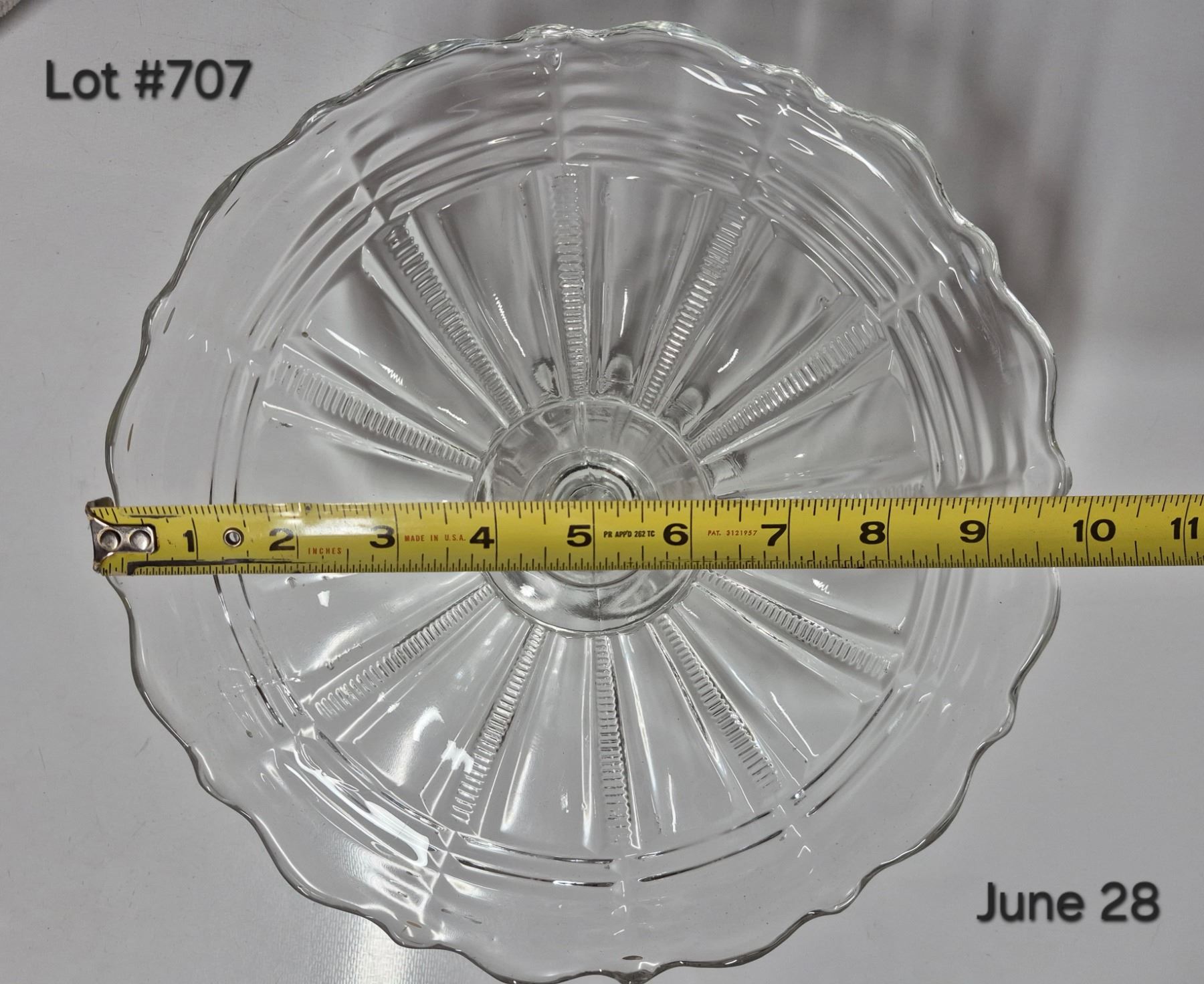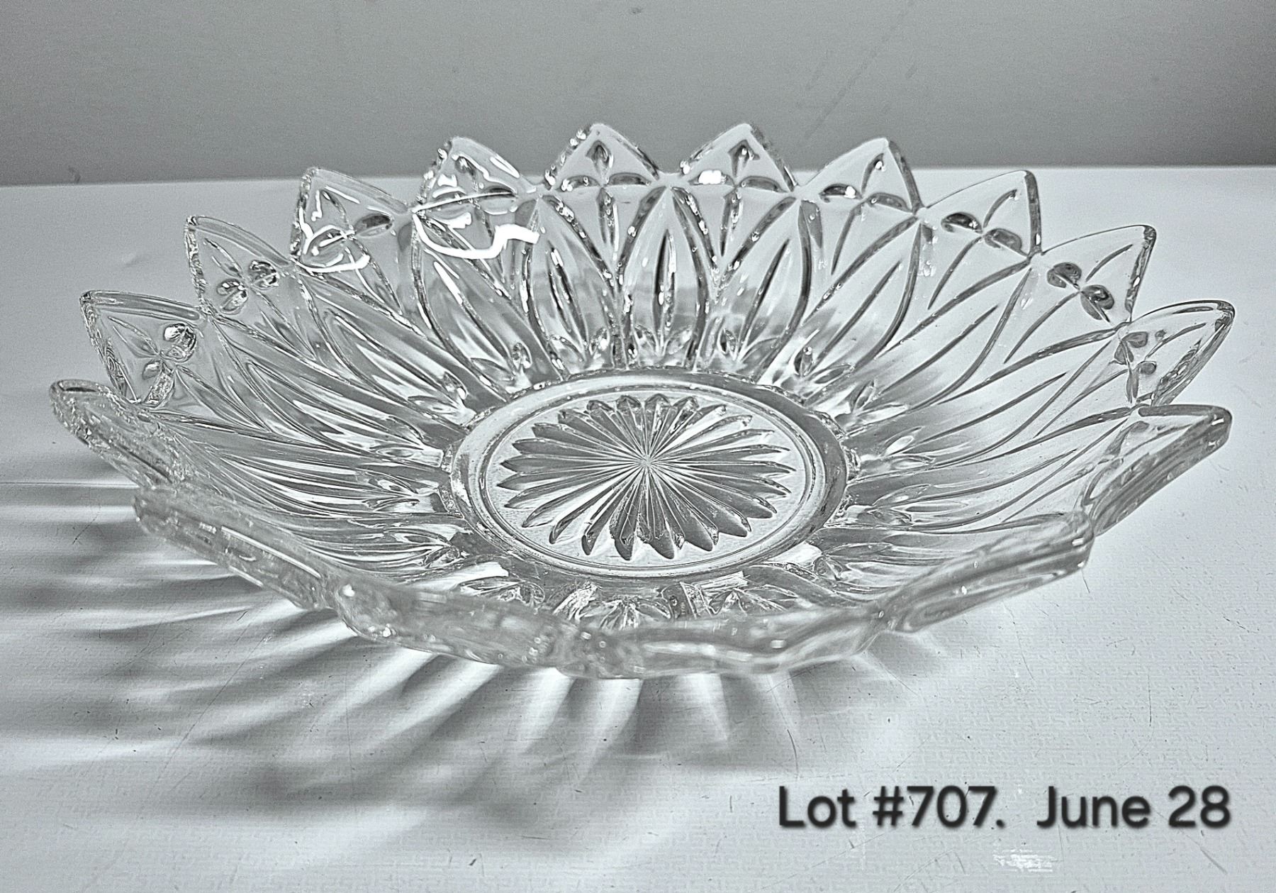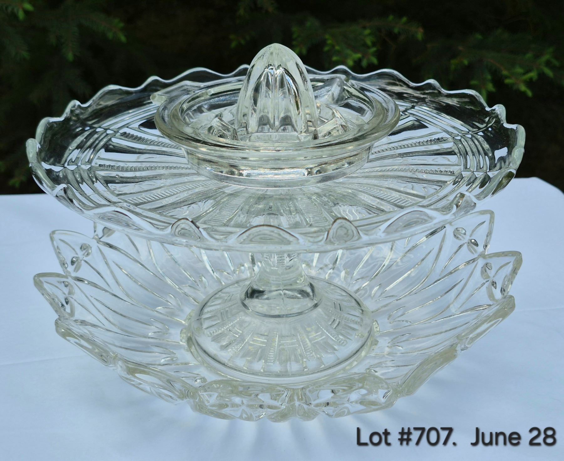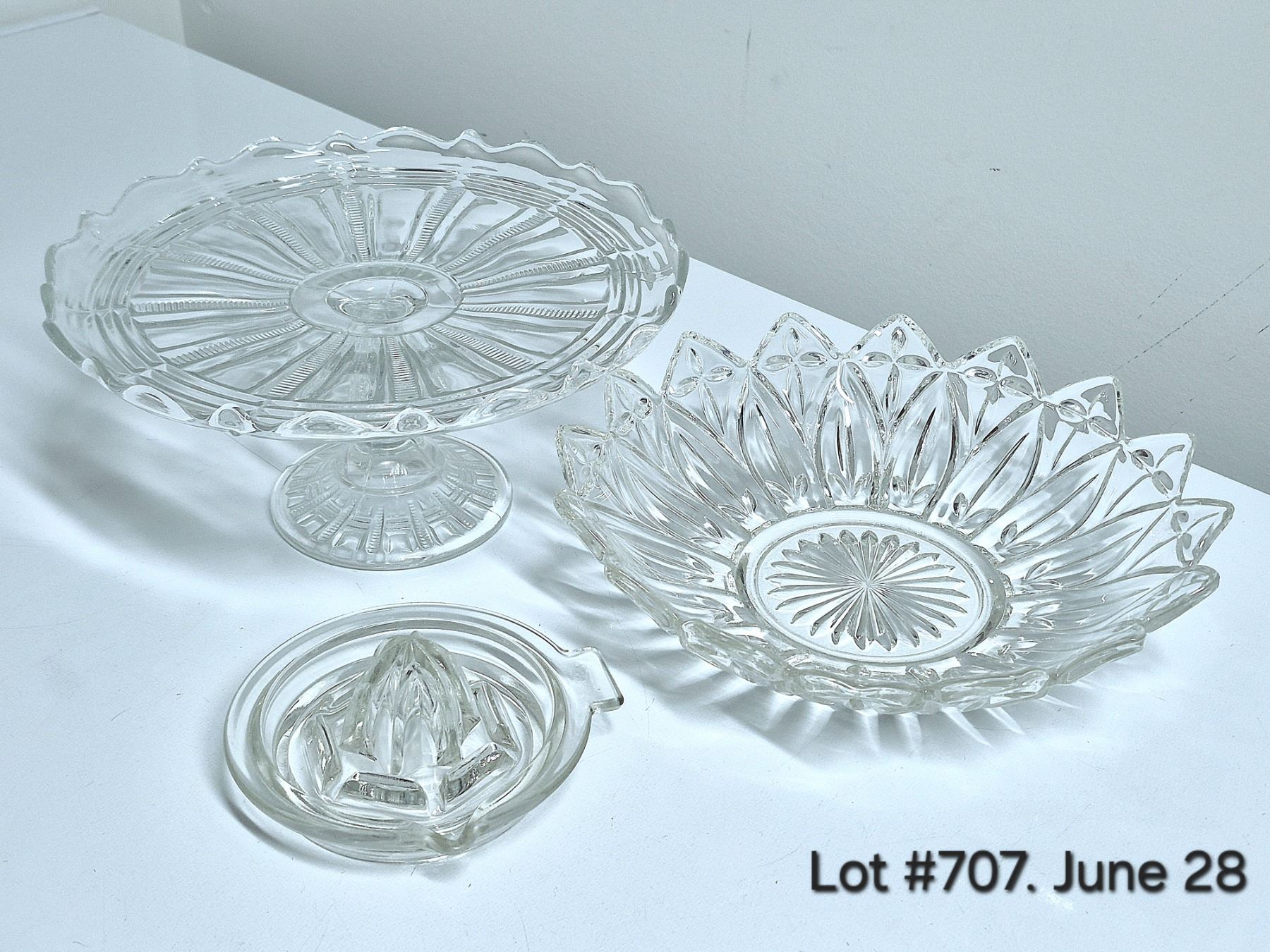 Set of 3 Vintage Glassware. 1950-1960's Federal Glass Petal Bowl + Ruffled edge pedestal plate + Dominion Glass orange/lemon juicer.