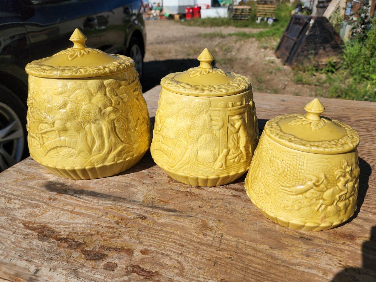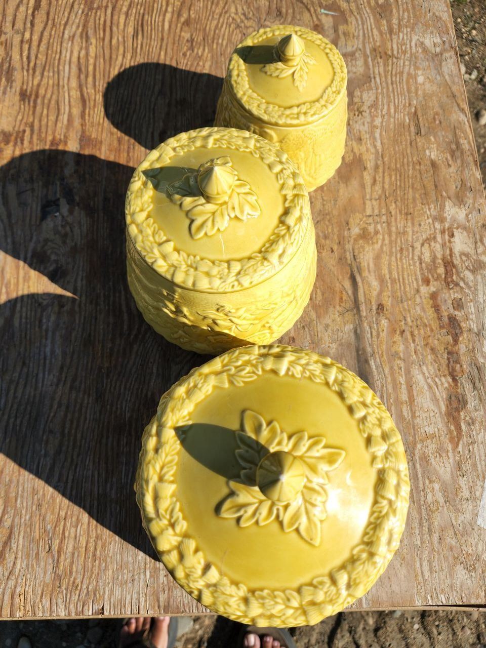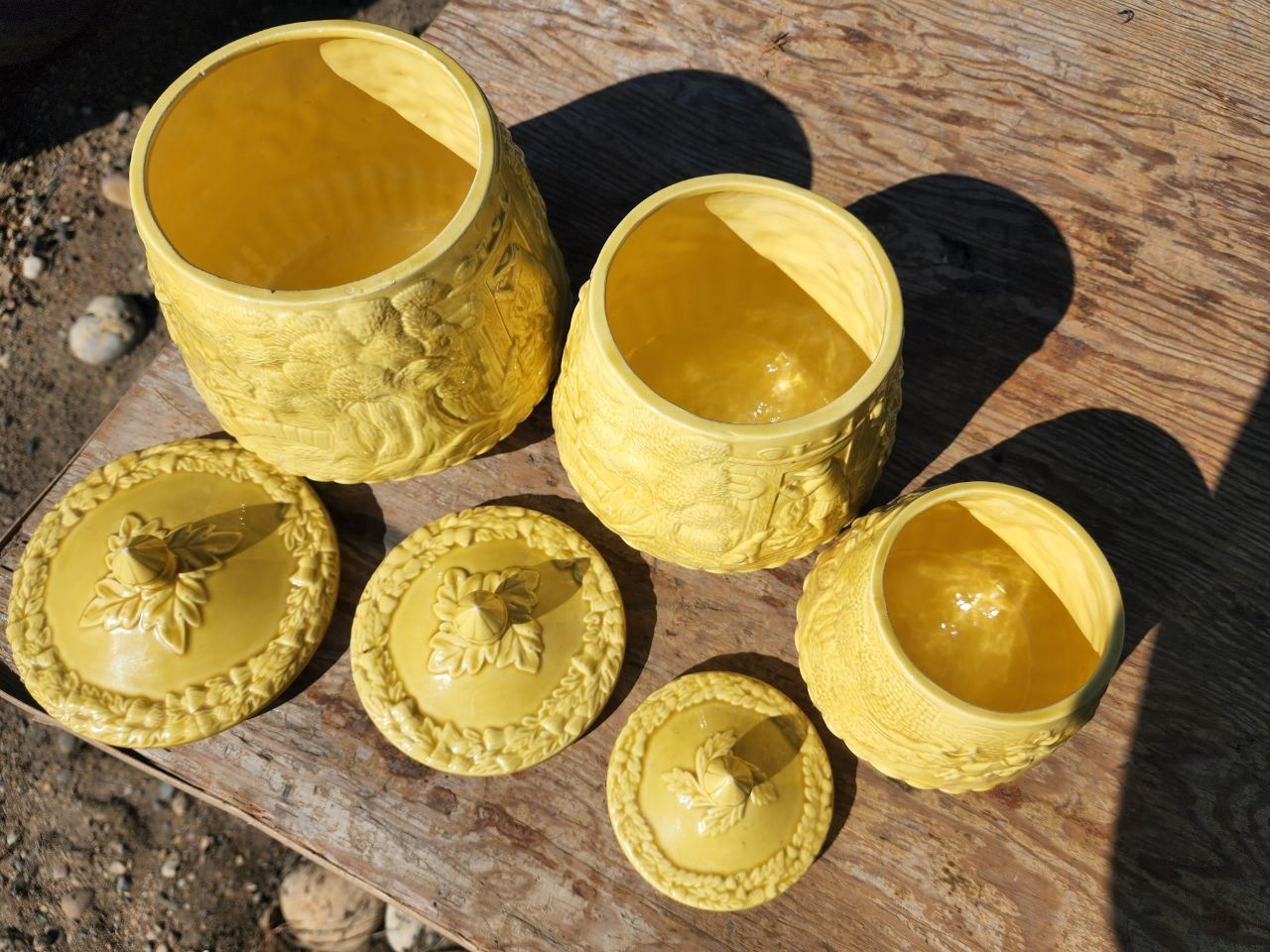 Set of 3, Yellow Ceramic Food Storage Jars/Containers 8", 6.5", 5"