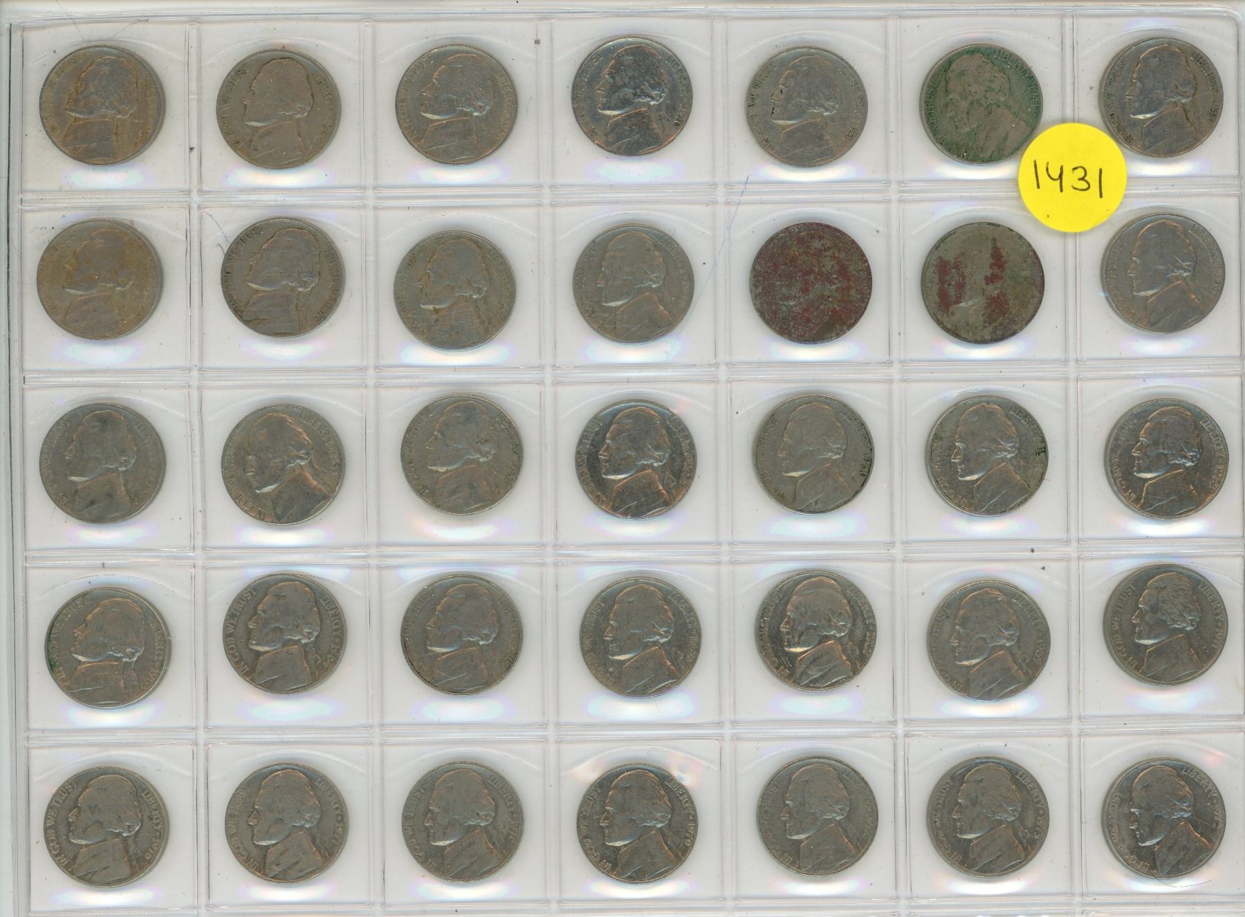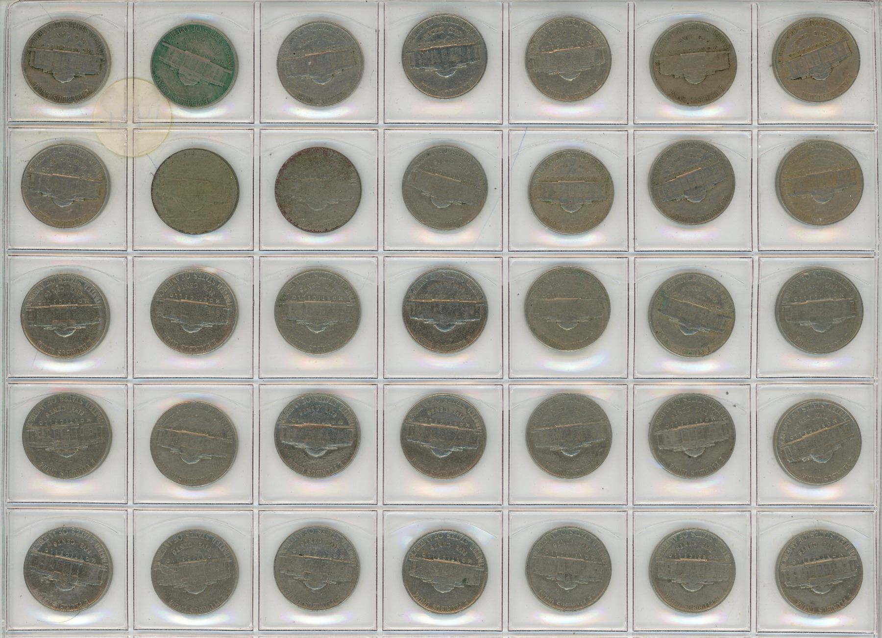 Set of 35 U.S. Jefferson Nickels from 1938 to 1974.