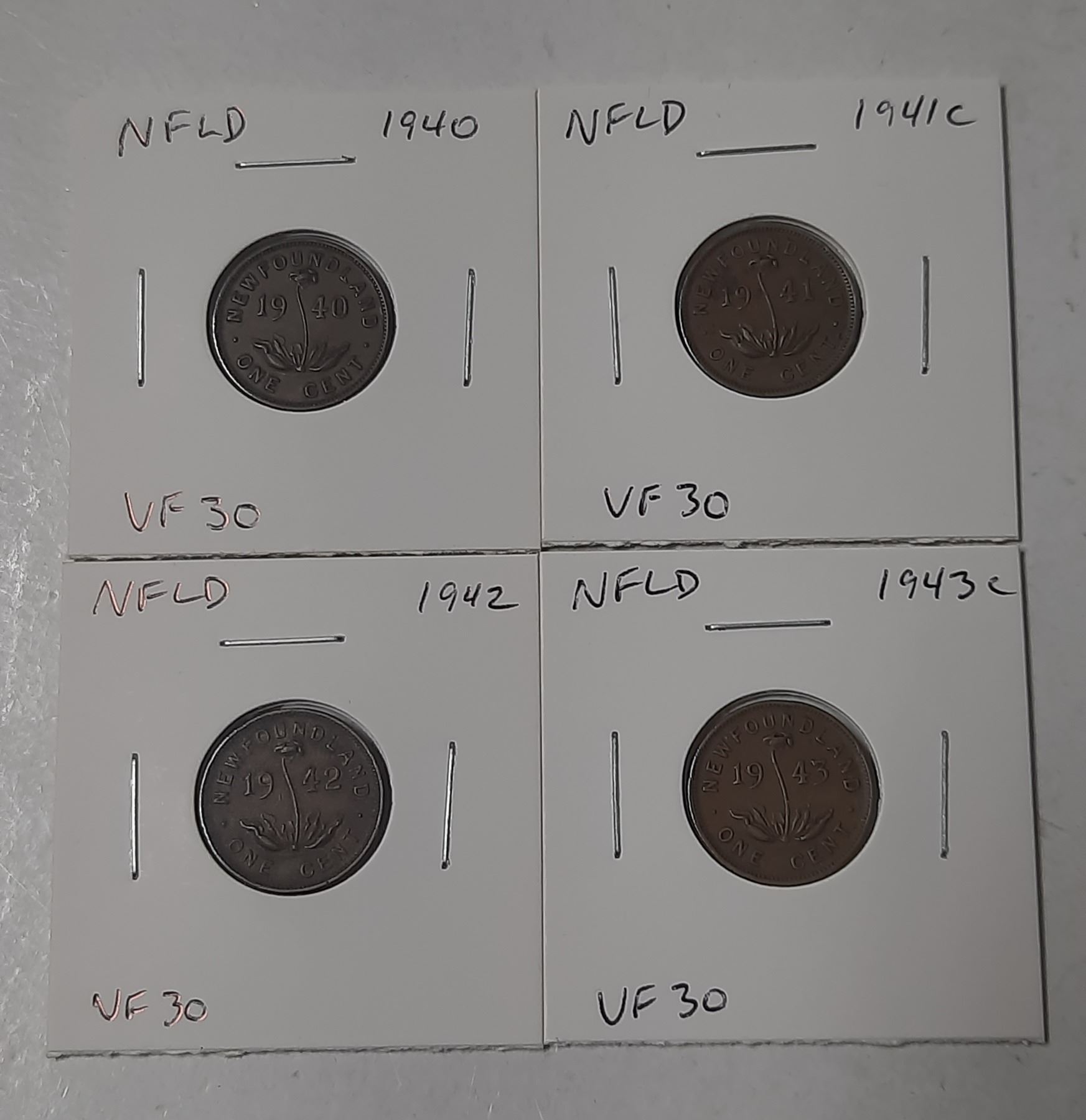Set of 4 Newfoundland Small Cents 1940 – 1943c. Coins grade VF30.