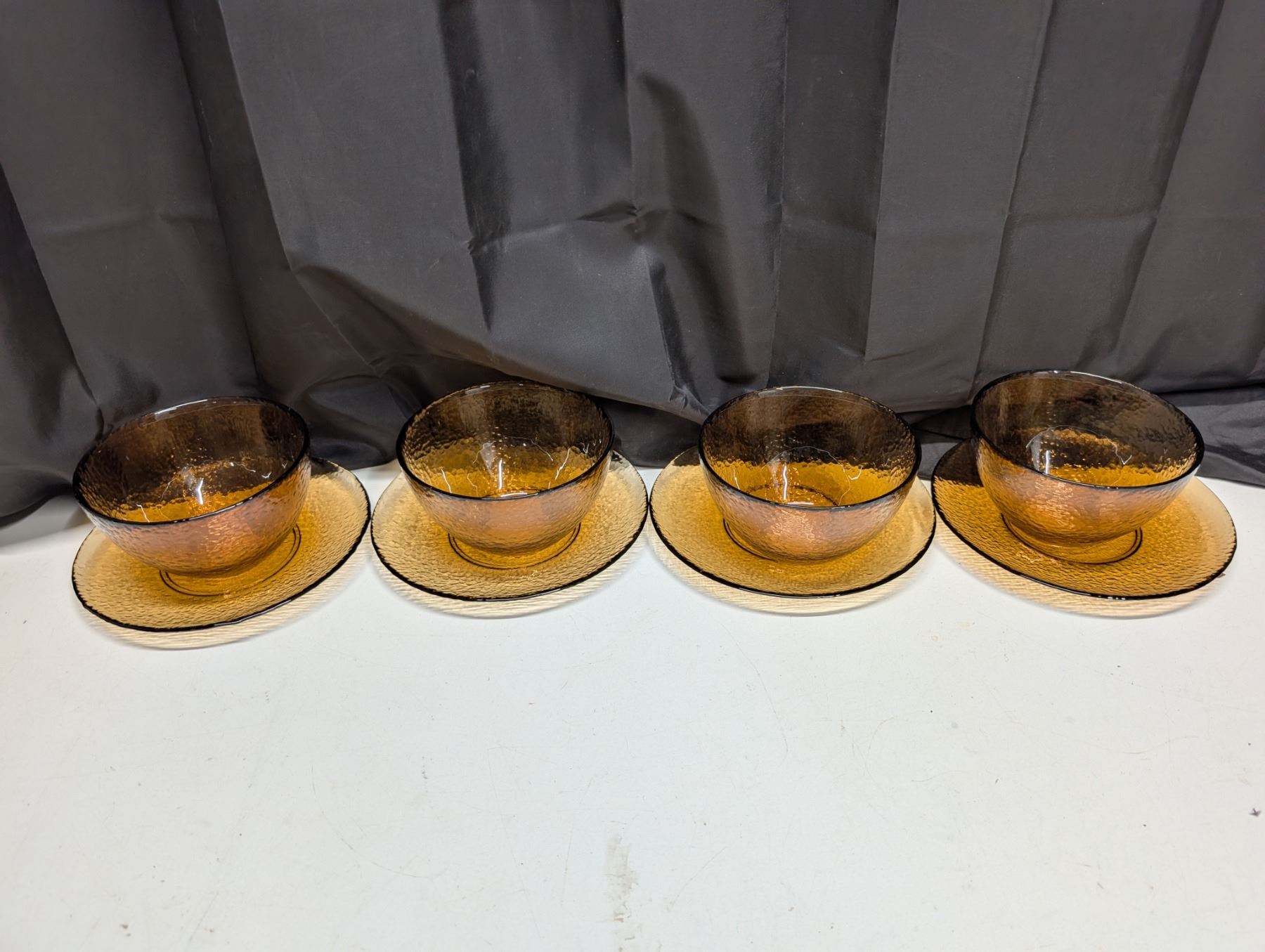 Set of (4) Possible Amber Glass Bowl and Plate sets