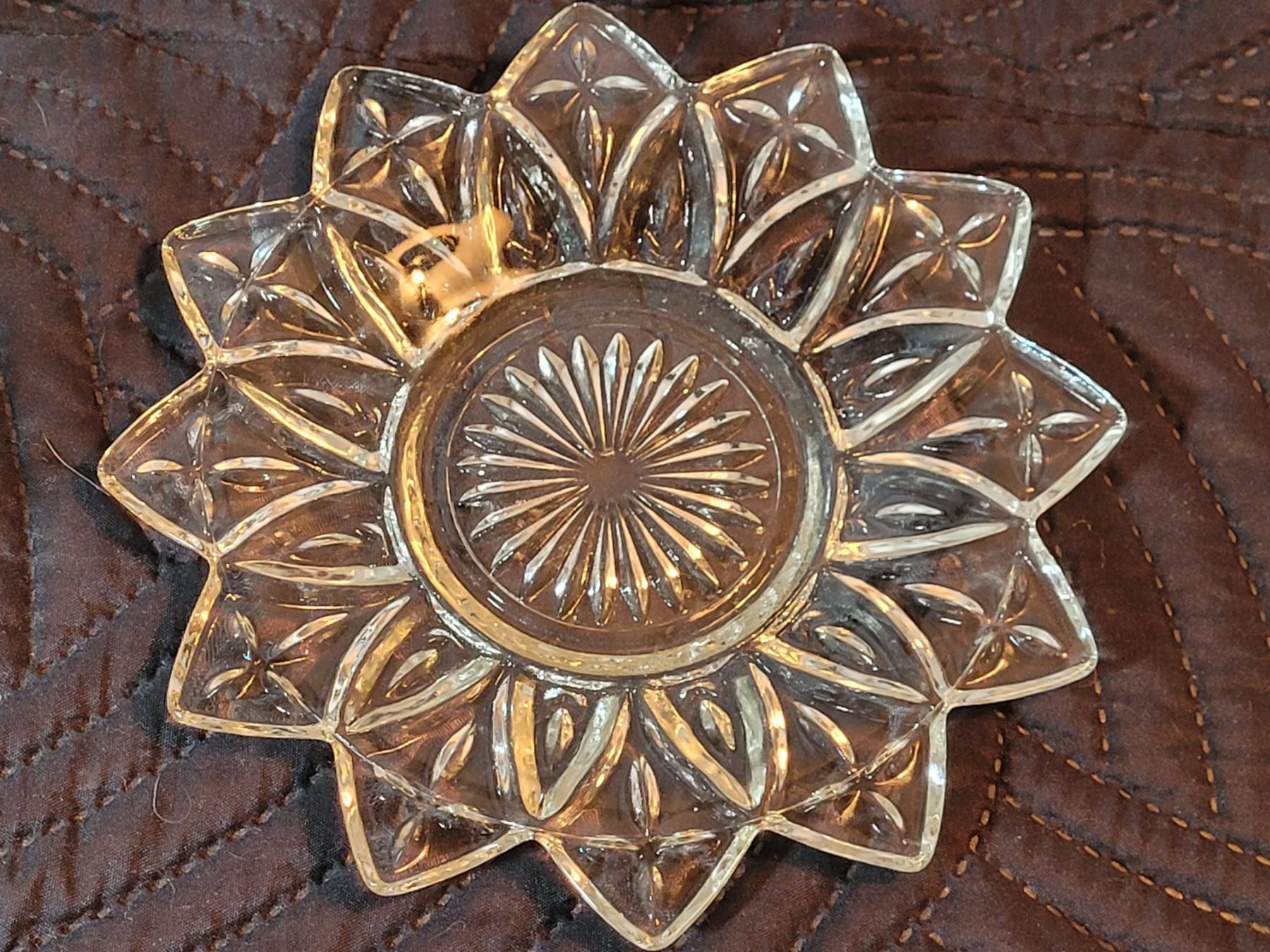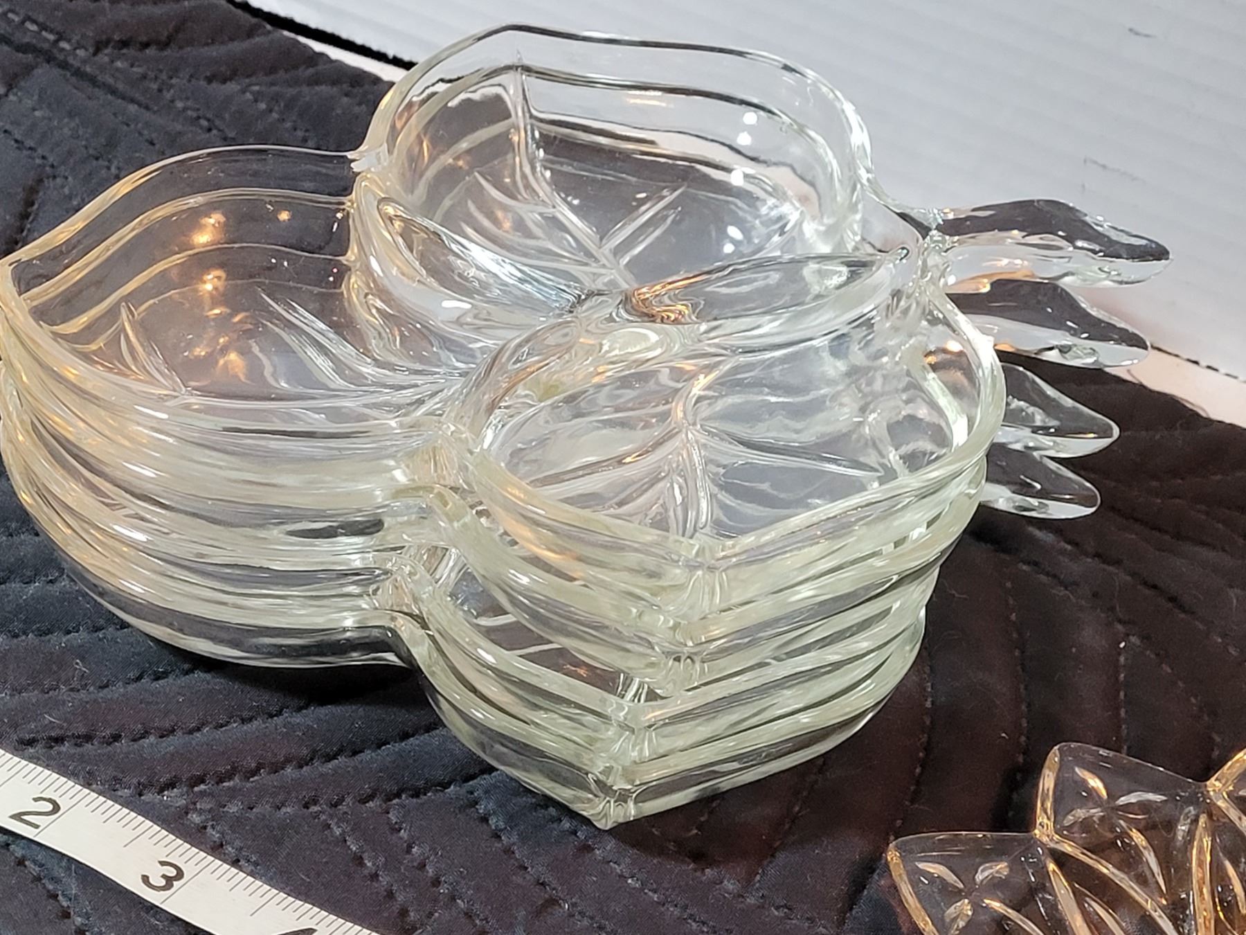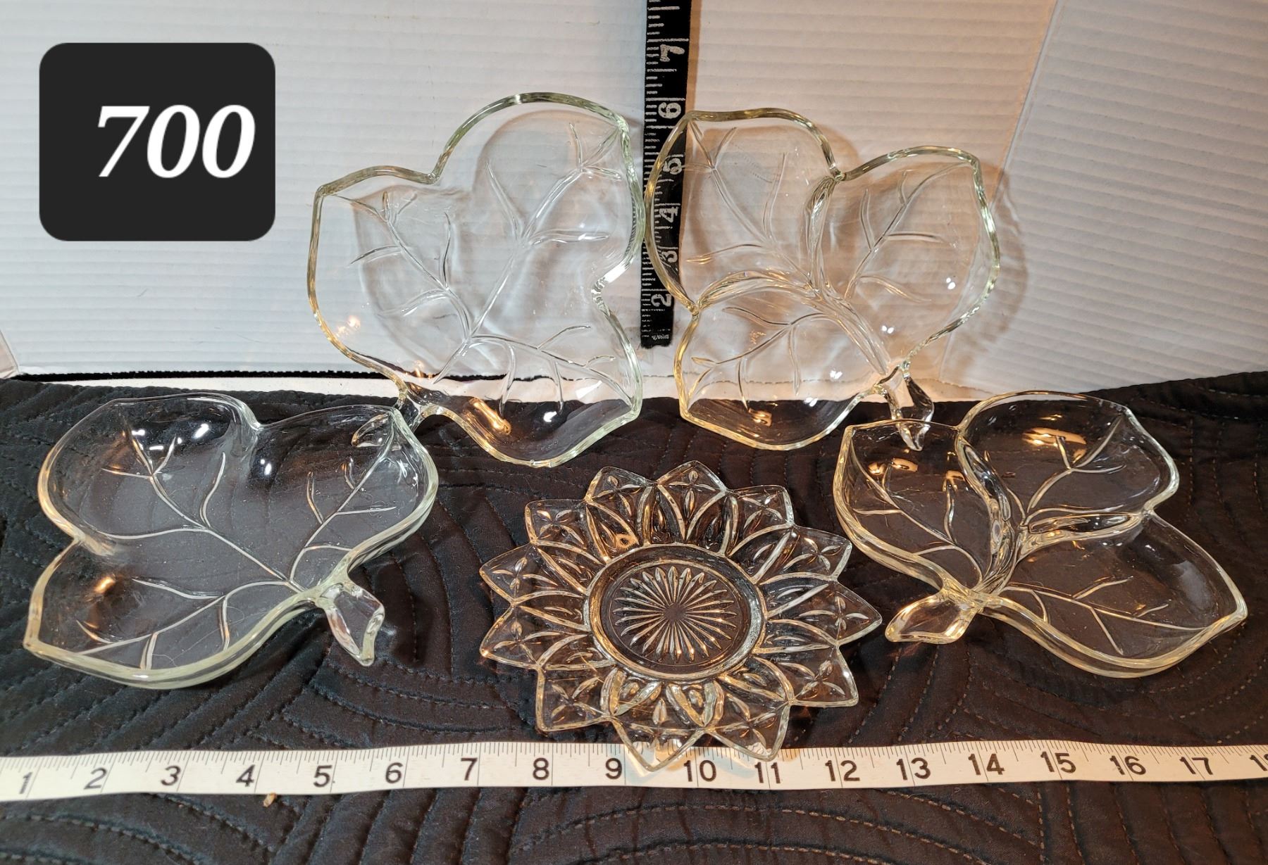 Set of 4 leaf snack dishes & starburst plate.