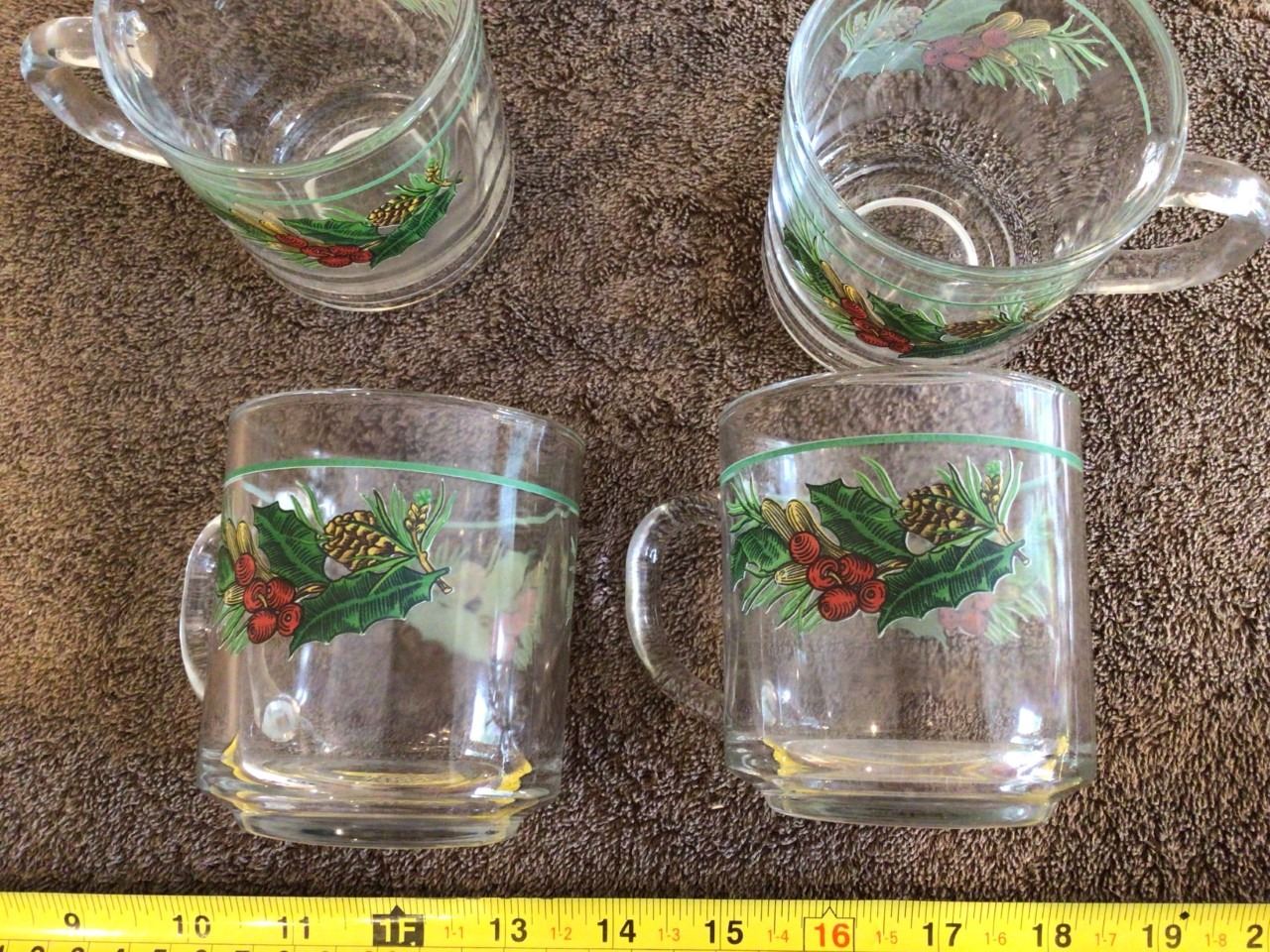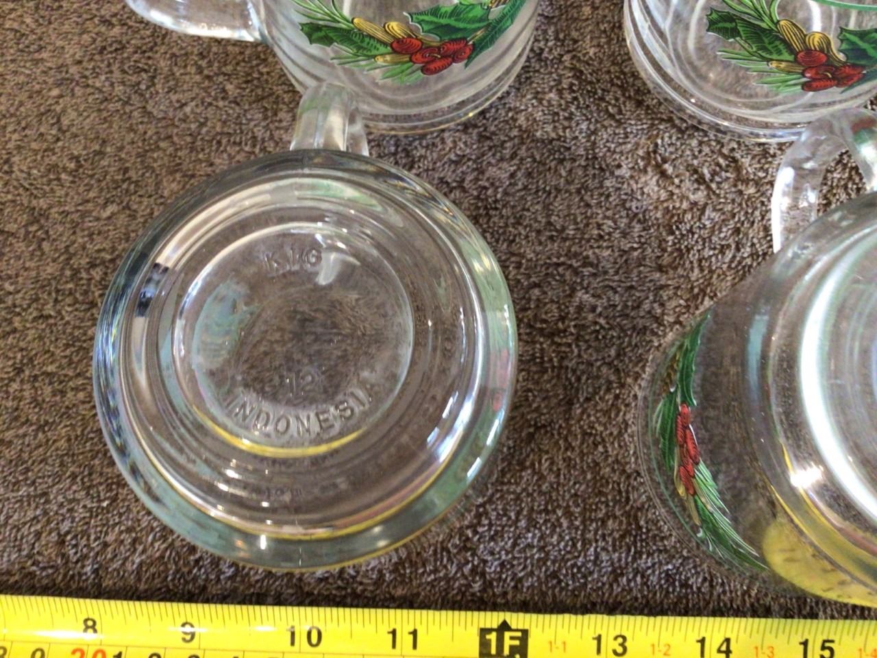 Set of 4 vintage clear glass Christmas mugs, KIG - Indonesia. No chips or cracks