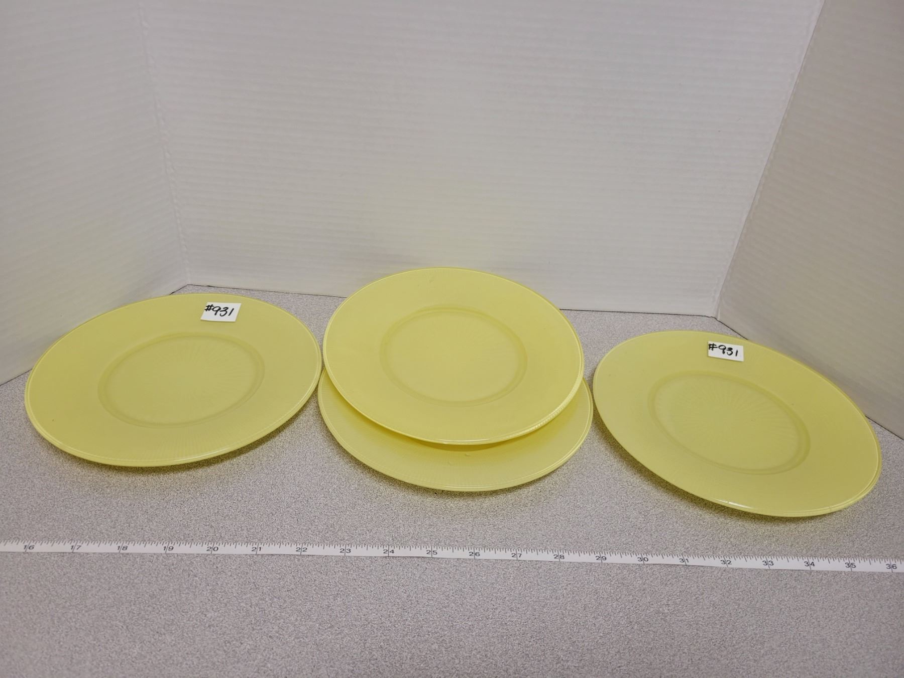 Set of 4 yellow Saguenay lunch plates, 8”, Dominion Glass, 1930’s