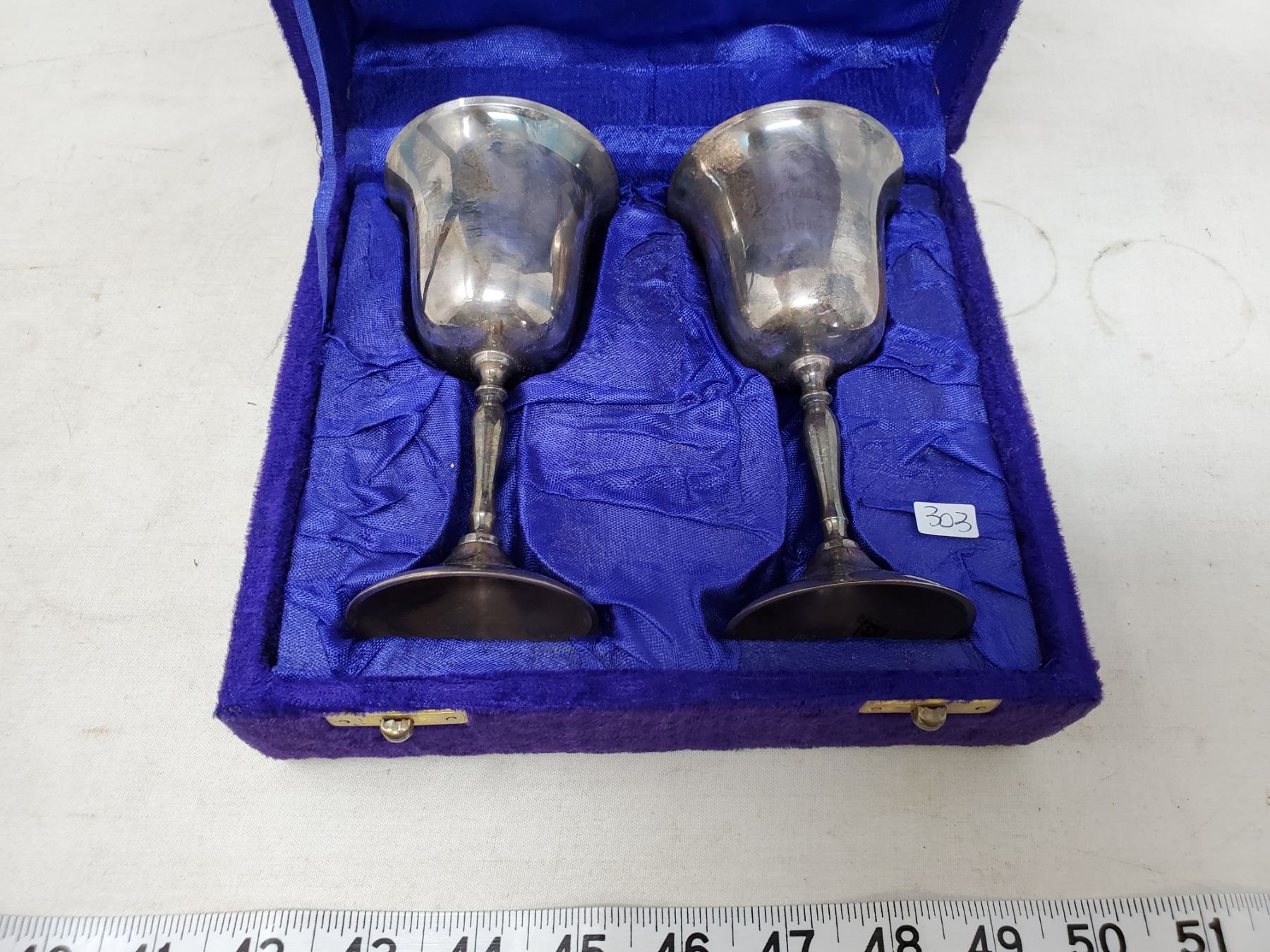Set of 40th anniversary brass wine glasses in a purple velvet box,1-set of brass wine glasses in a box