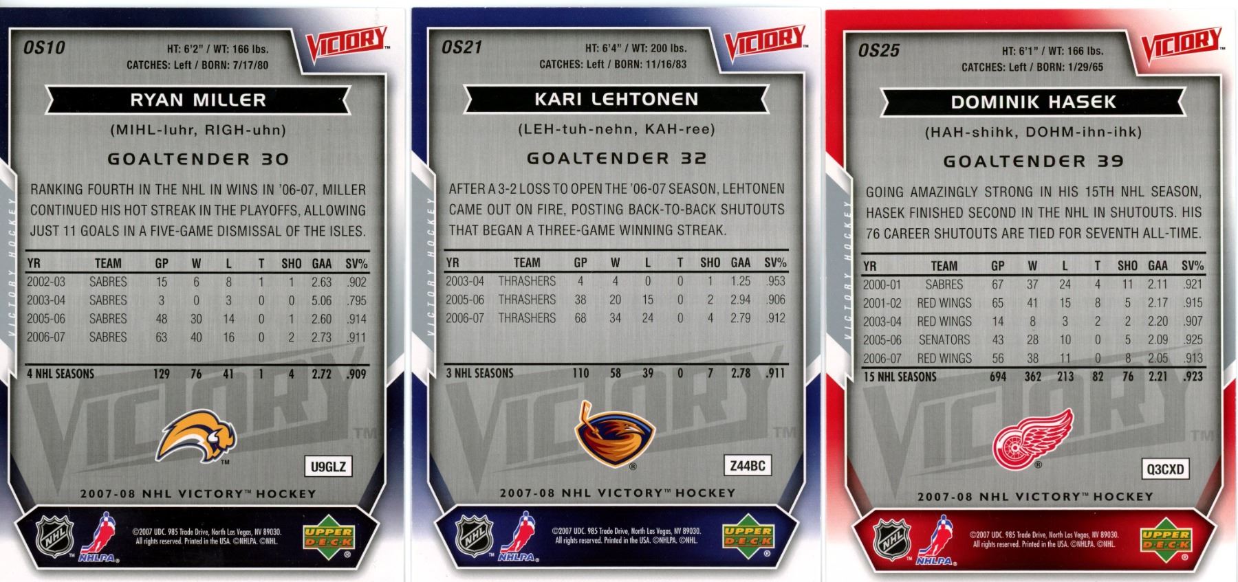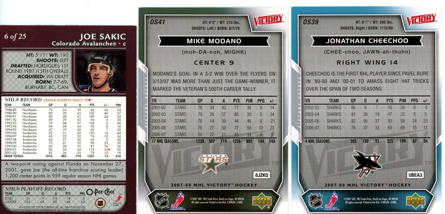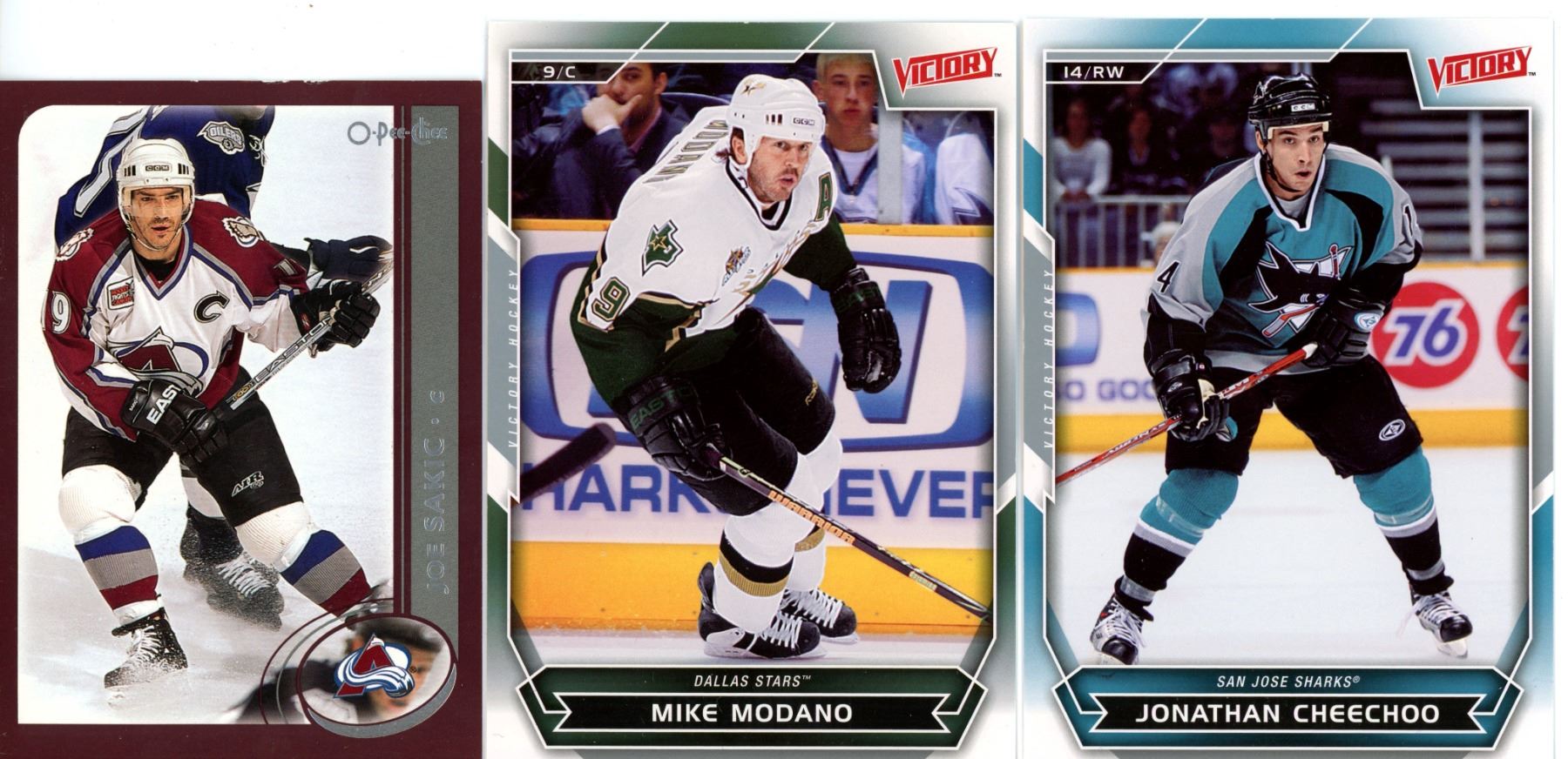 Set of 5, Victory Hockey cards & an O-Pee-Chee, Joe Sakic card