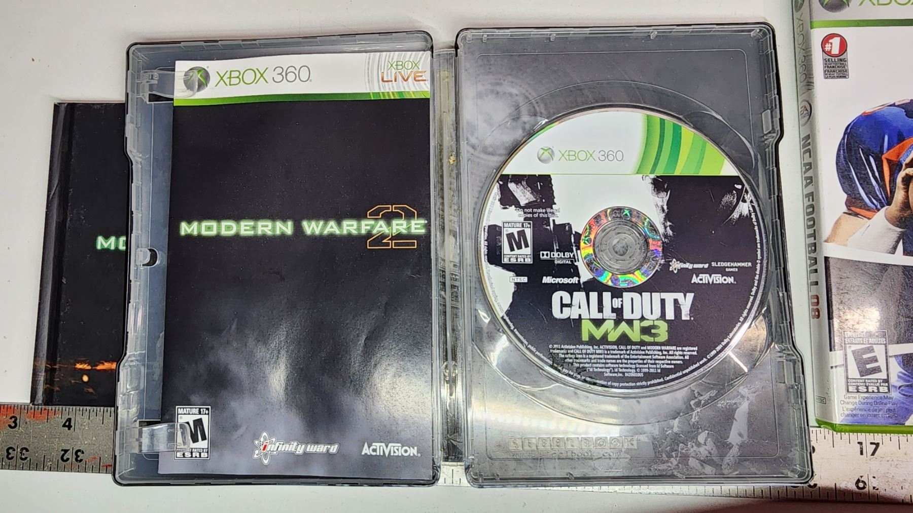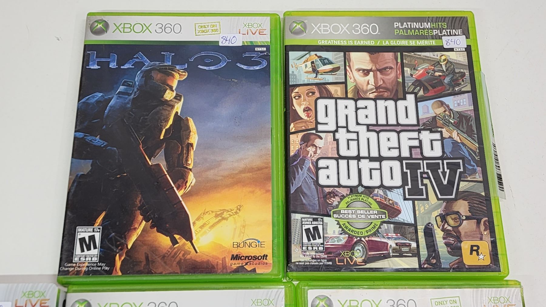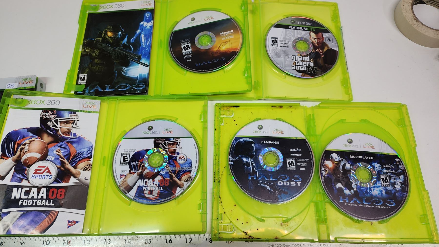 Set of 5, Xbox 360 games - Modern warfare 2: Hardened Edition in steel case, Halo 3, Halo 3 ODST, GTA 4 & NCAA 08 football - game discs are scratched