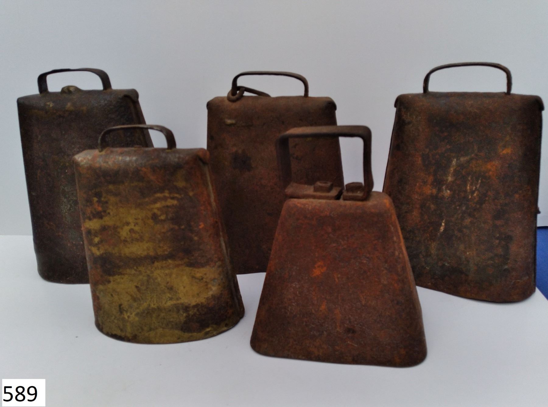 Set of 5 original antique cow bells