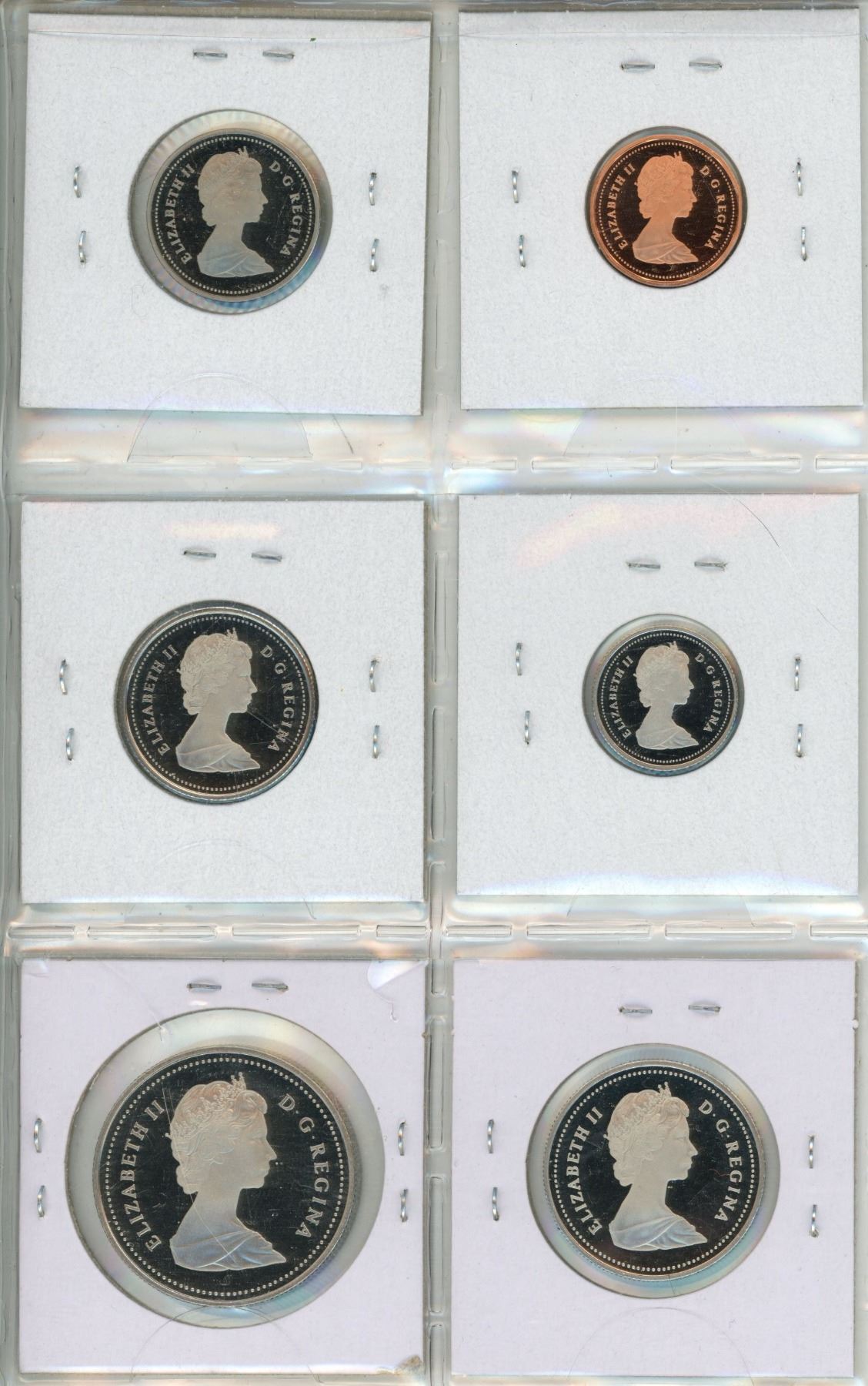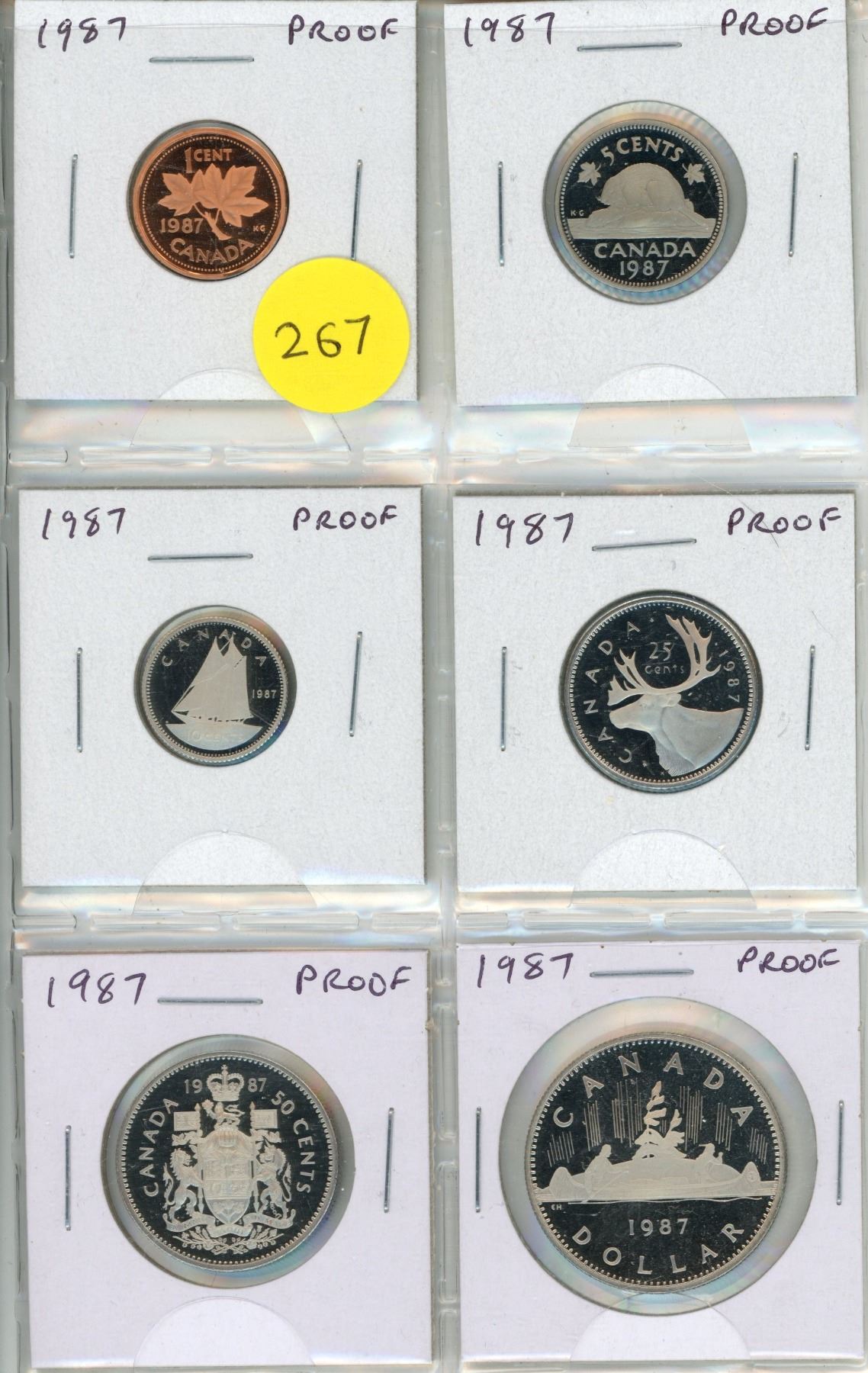 Set of 6 1987 Proof coins from Cent to Nickel Dollar.