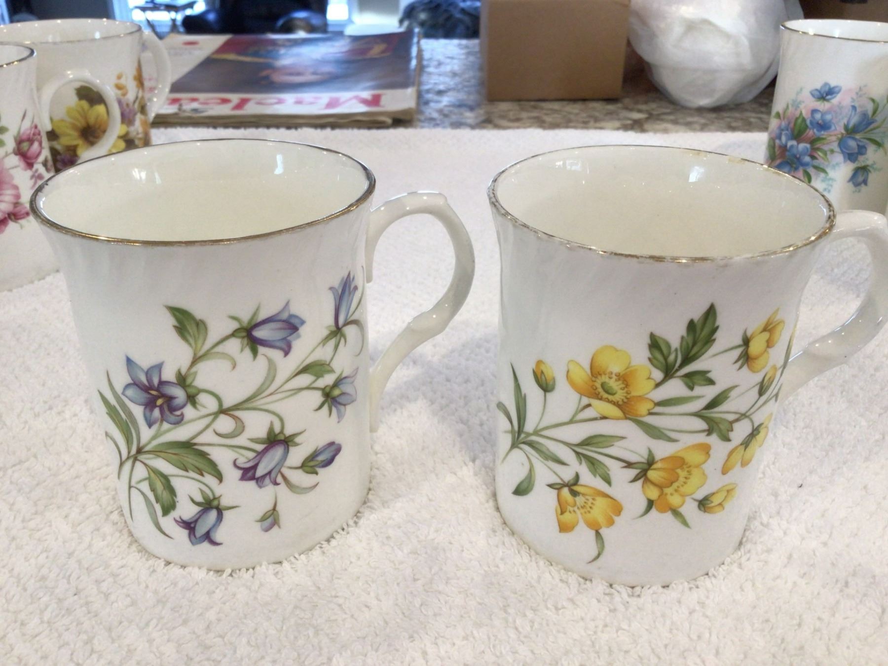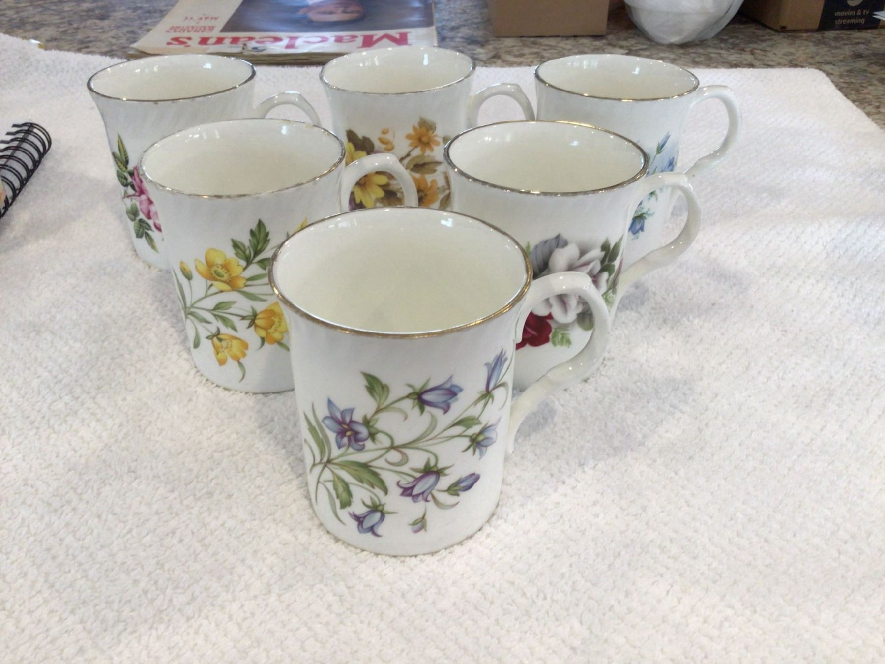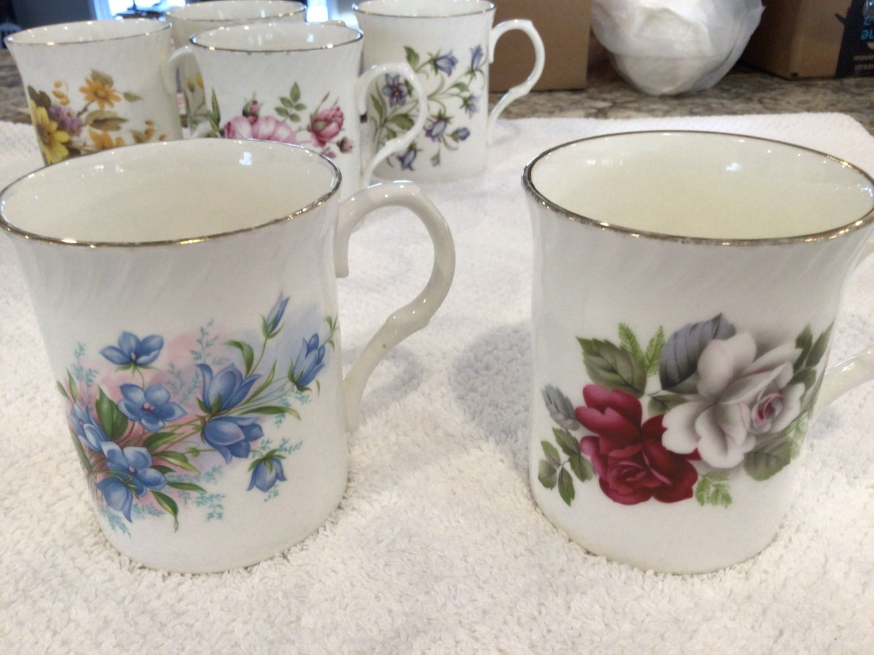 Set of 6 Royal Castle fine bone China tea or coffee mugs. 3 1/4" tall. Vintage 1959. Exc. condition.