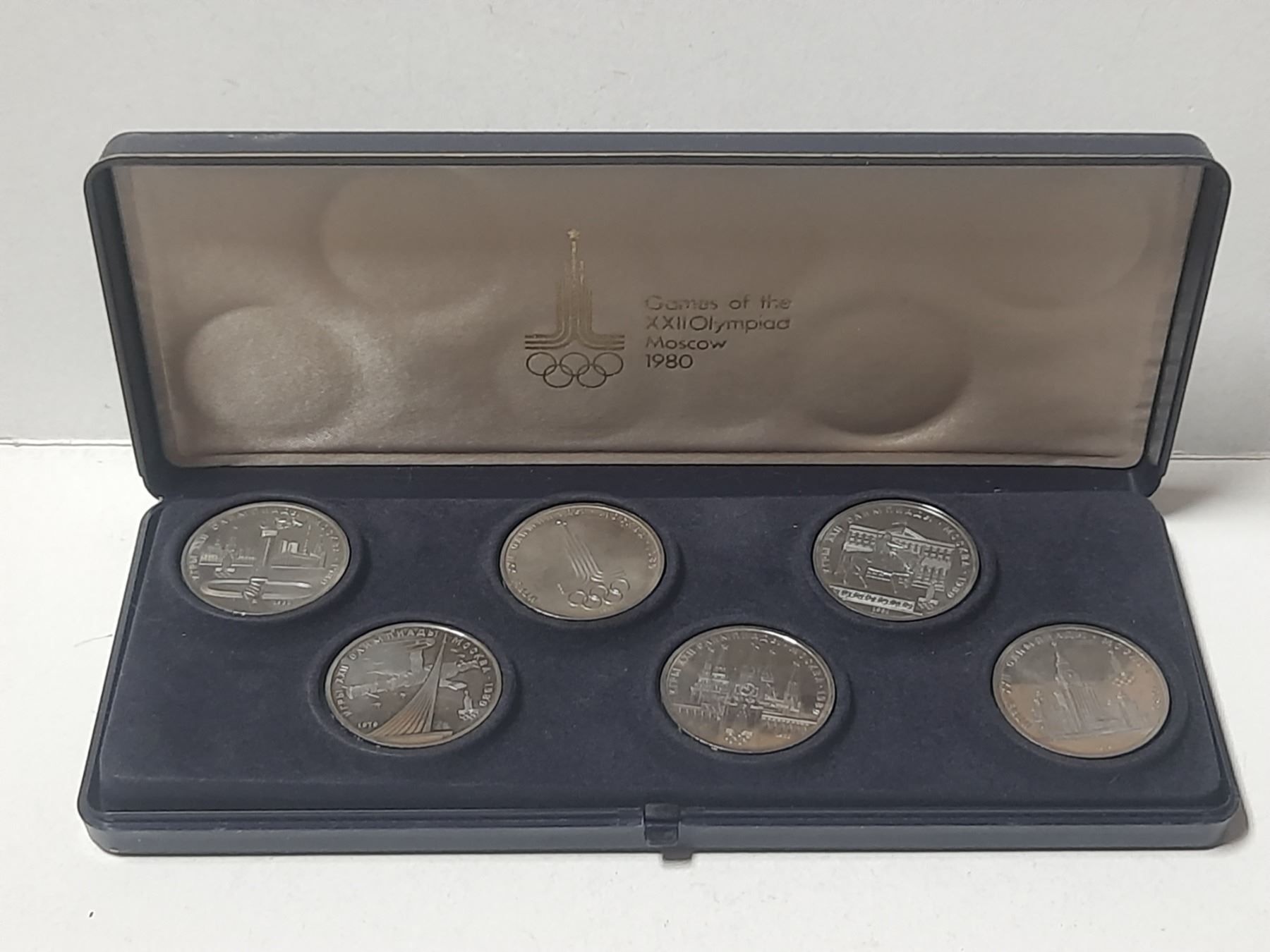 Set of 6 Russian 1980 Moscow Olympic Games 1 Ruble coins. Housed in its original case.