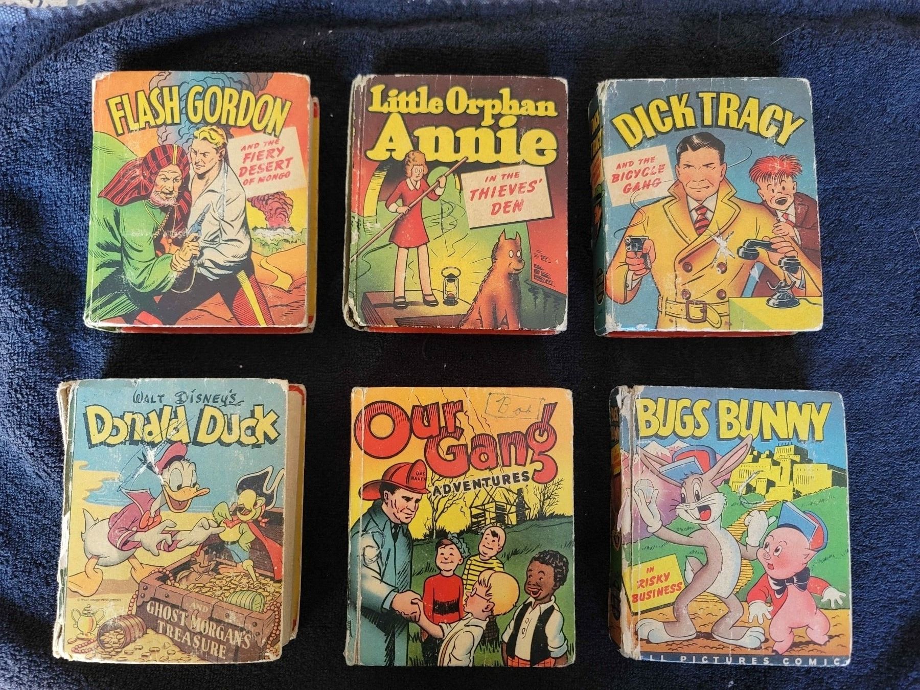 Set of 6 hardcover comic books-writing inside front cover of all books and loose bindings