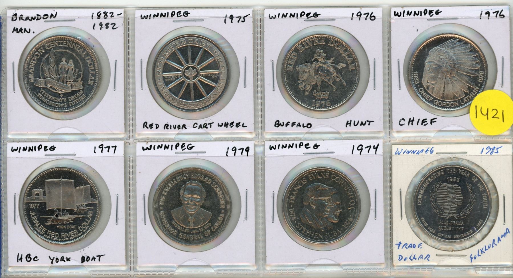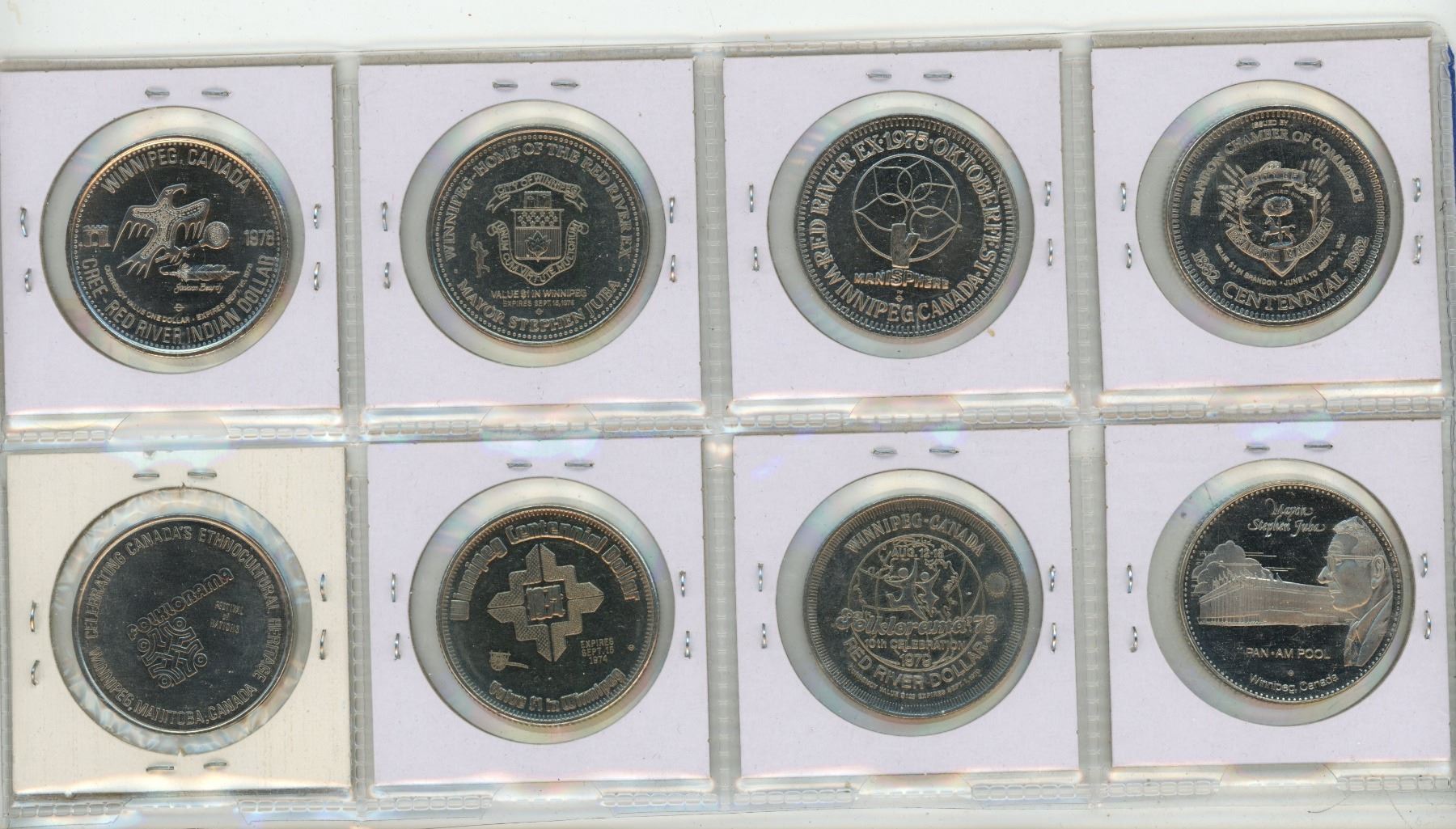 Set of 8 Manitoba Trade Dollars.