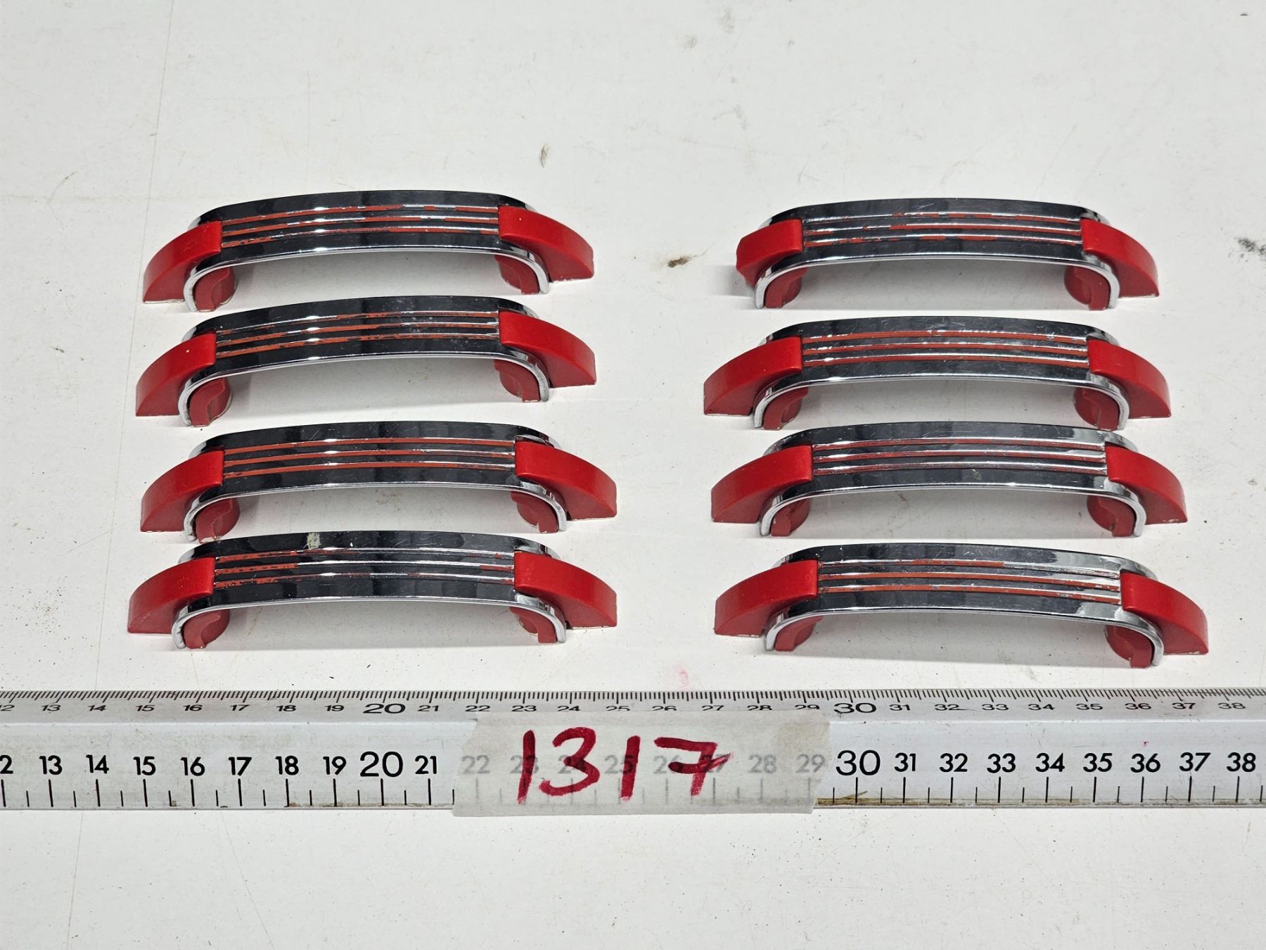 Set of (8) Red Chrome MCM Drawer Pulls