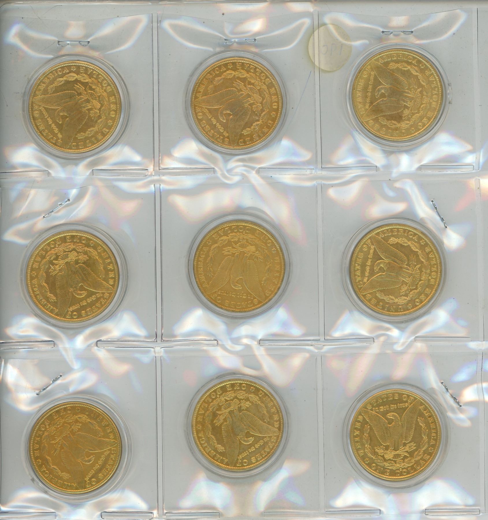 Set of 9 Copies of U.S. Silver Dollars 1895 – 1921.