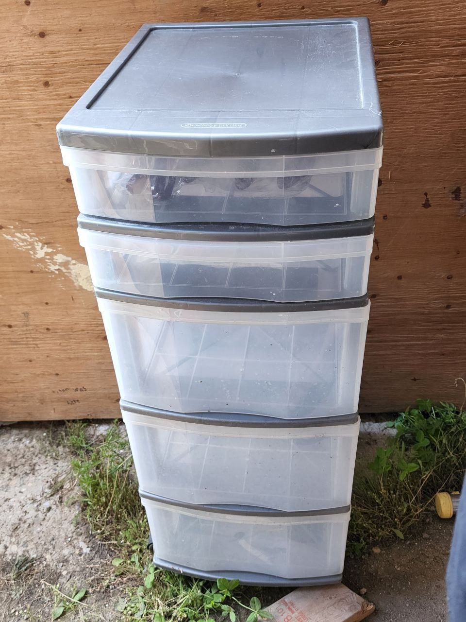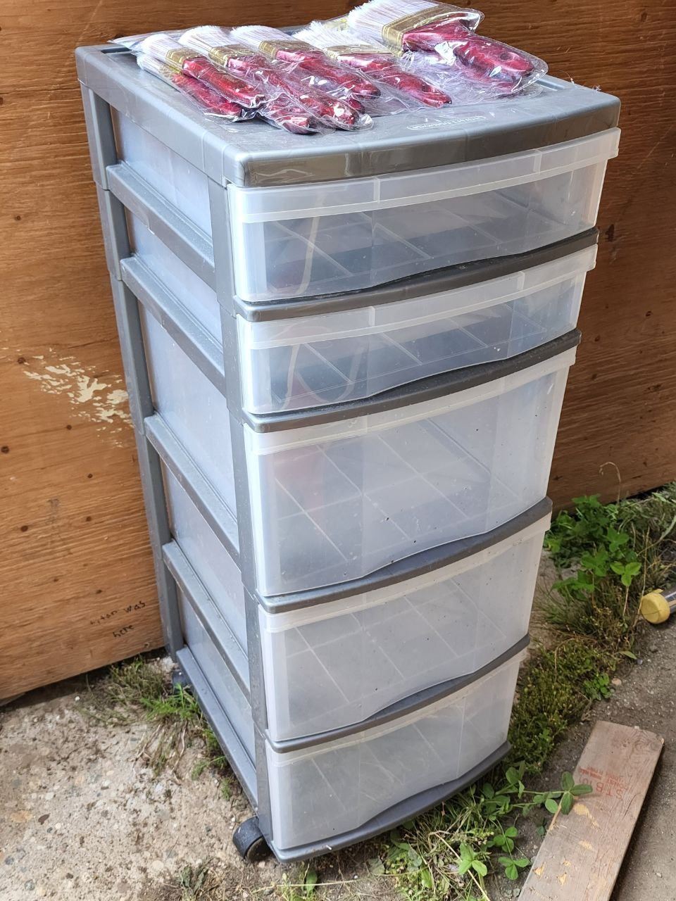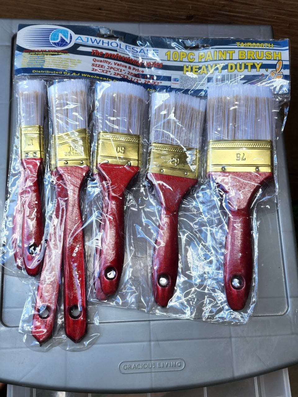 Set of Paintbrushes and Plastic Wheeled Storage Container H-2ft 10" W-1ft 1" D-1ft 5"