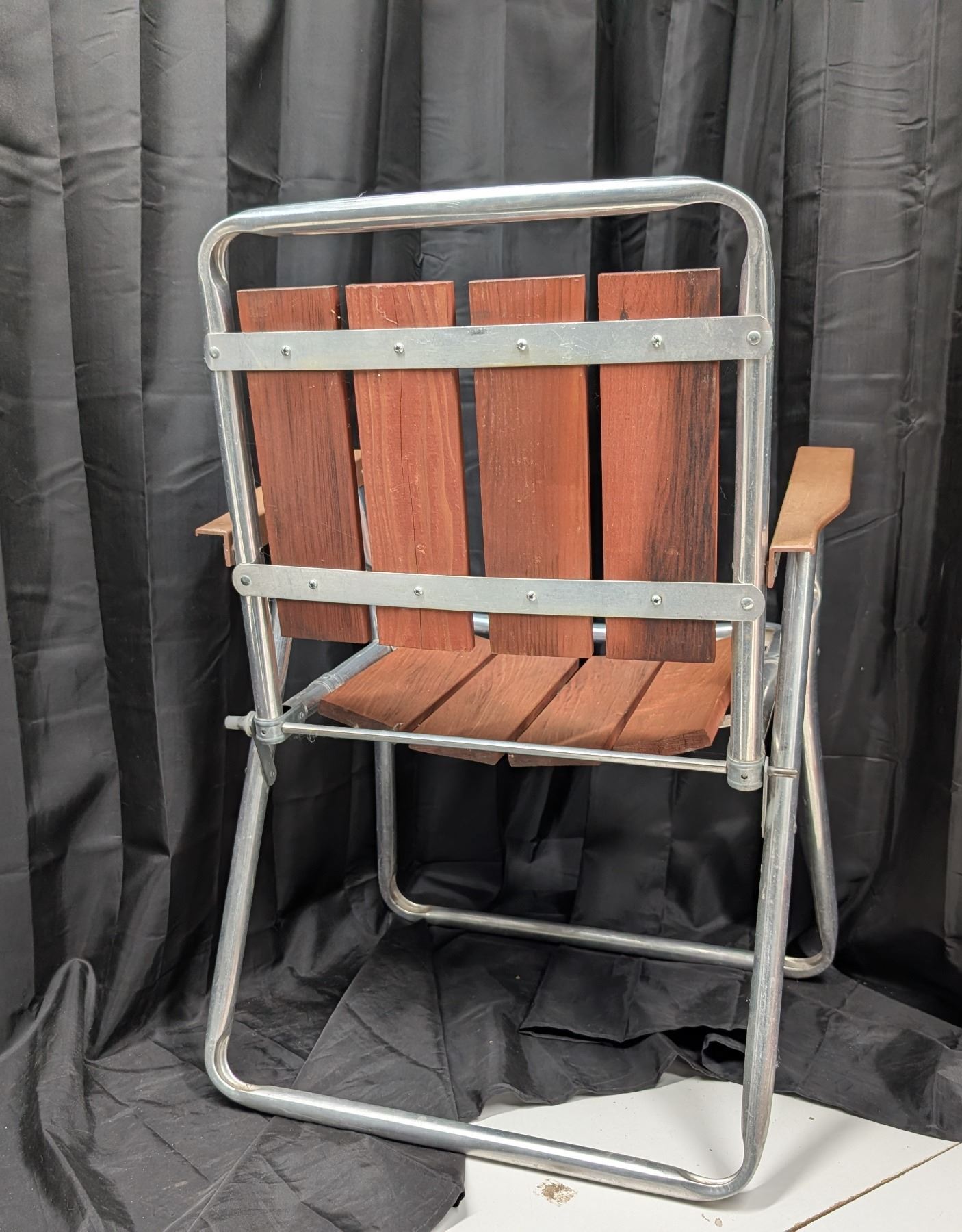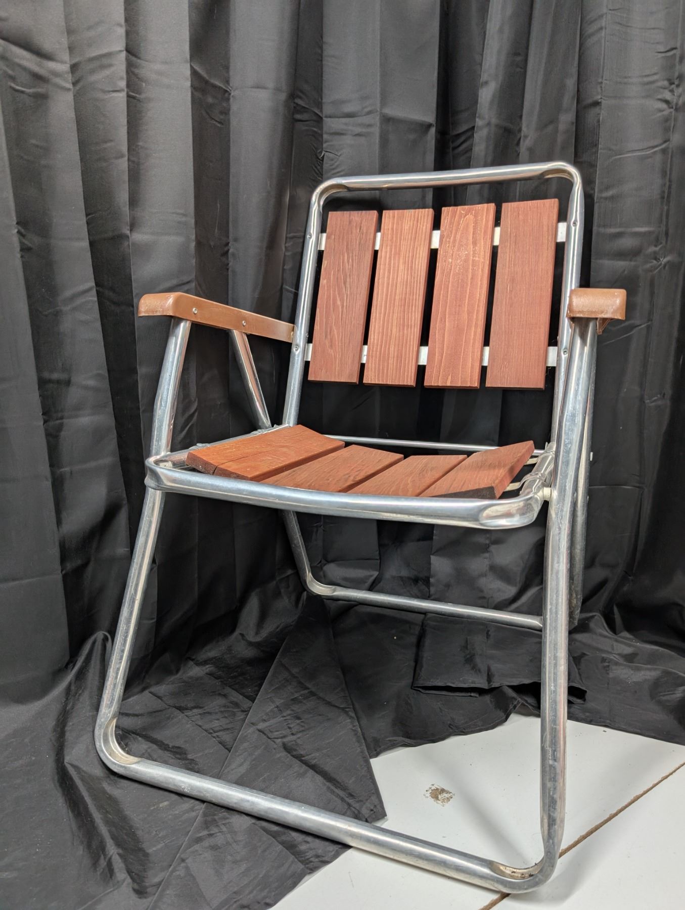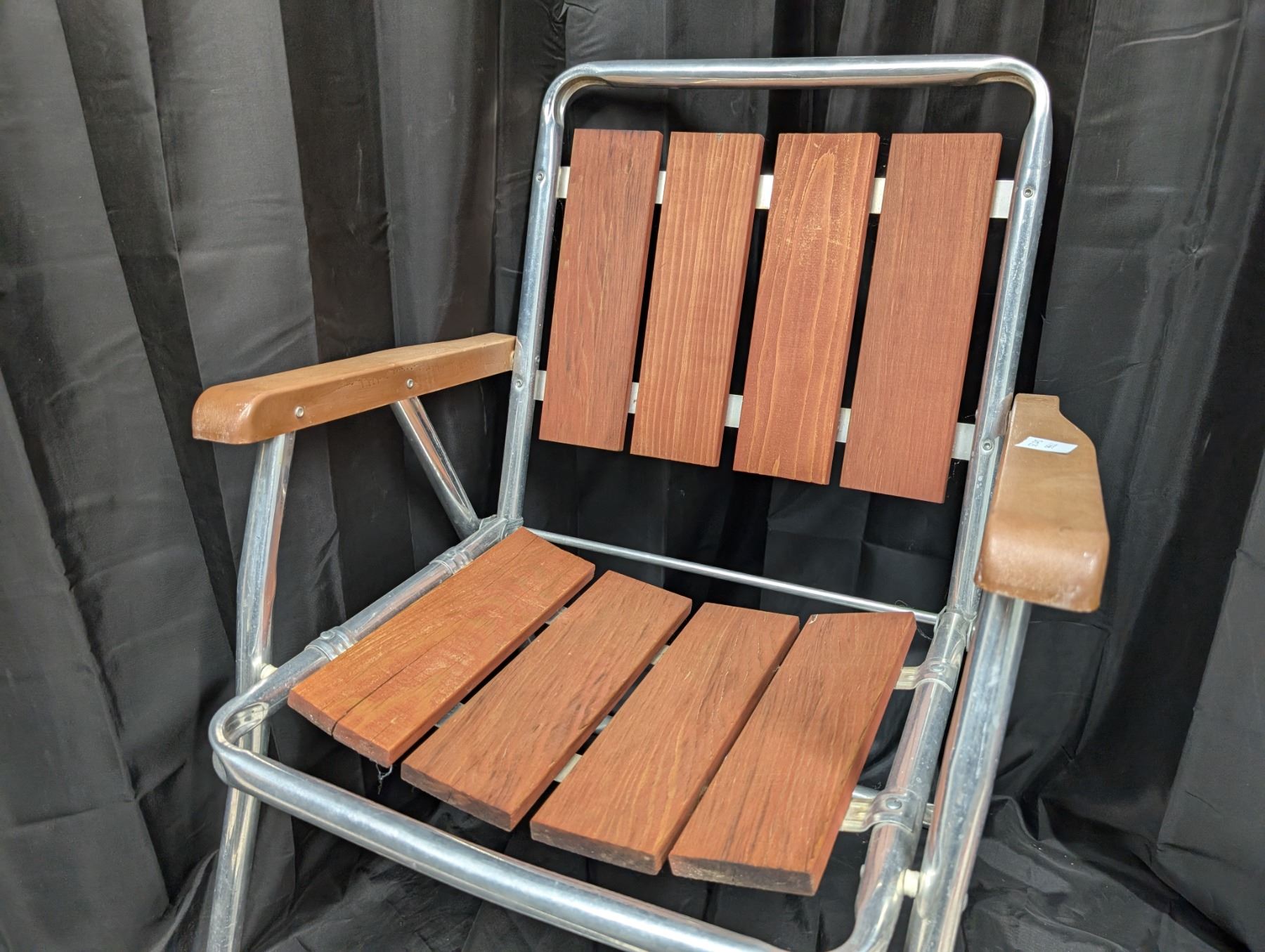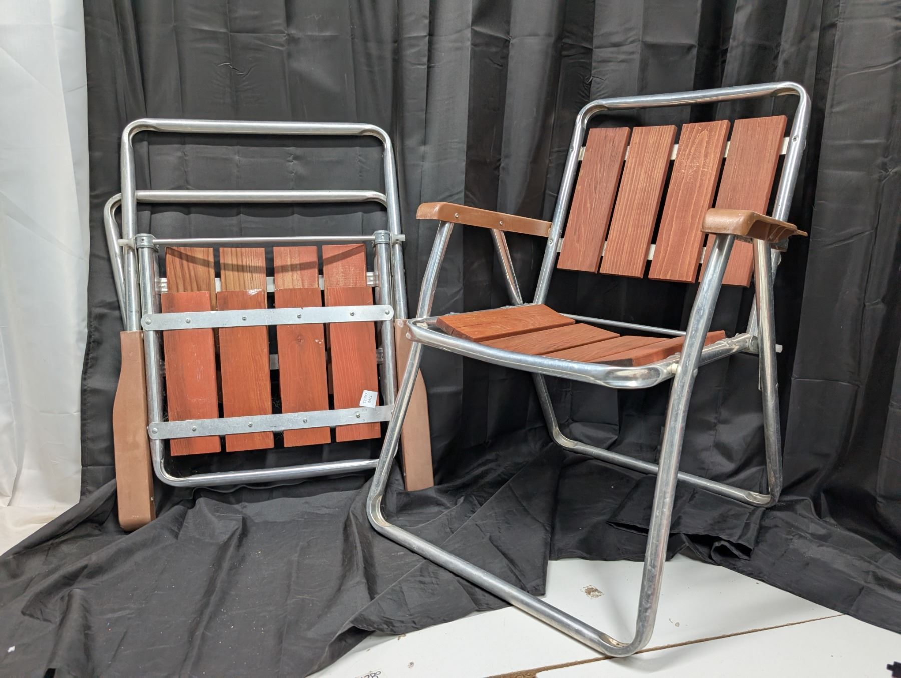 Set of Two Aluminium Wooden Lawn Chairs.