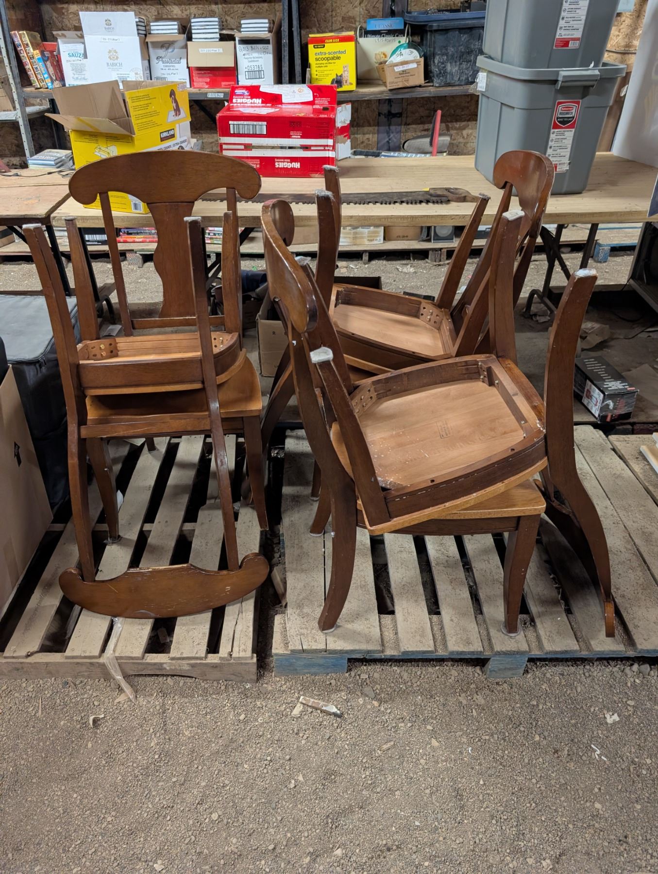 Set of Wooden Chairs (1) Missing Back Piece Marked #TRG-11