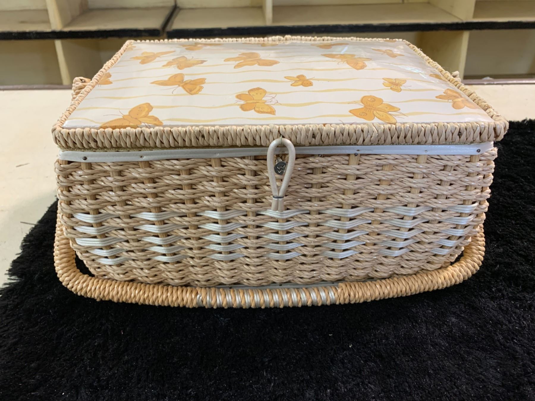 Sewing Basket w/ Porcelain Thimbles + 2 Sewing Books