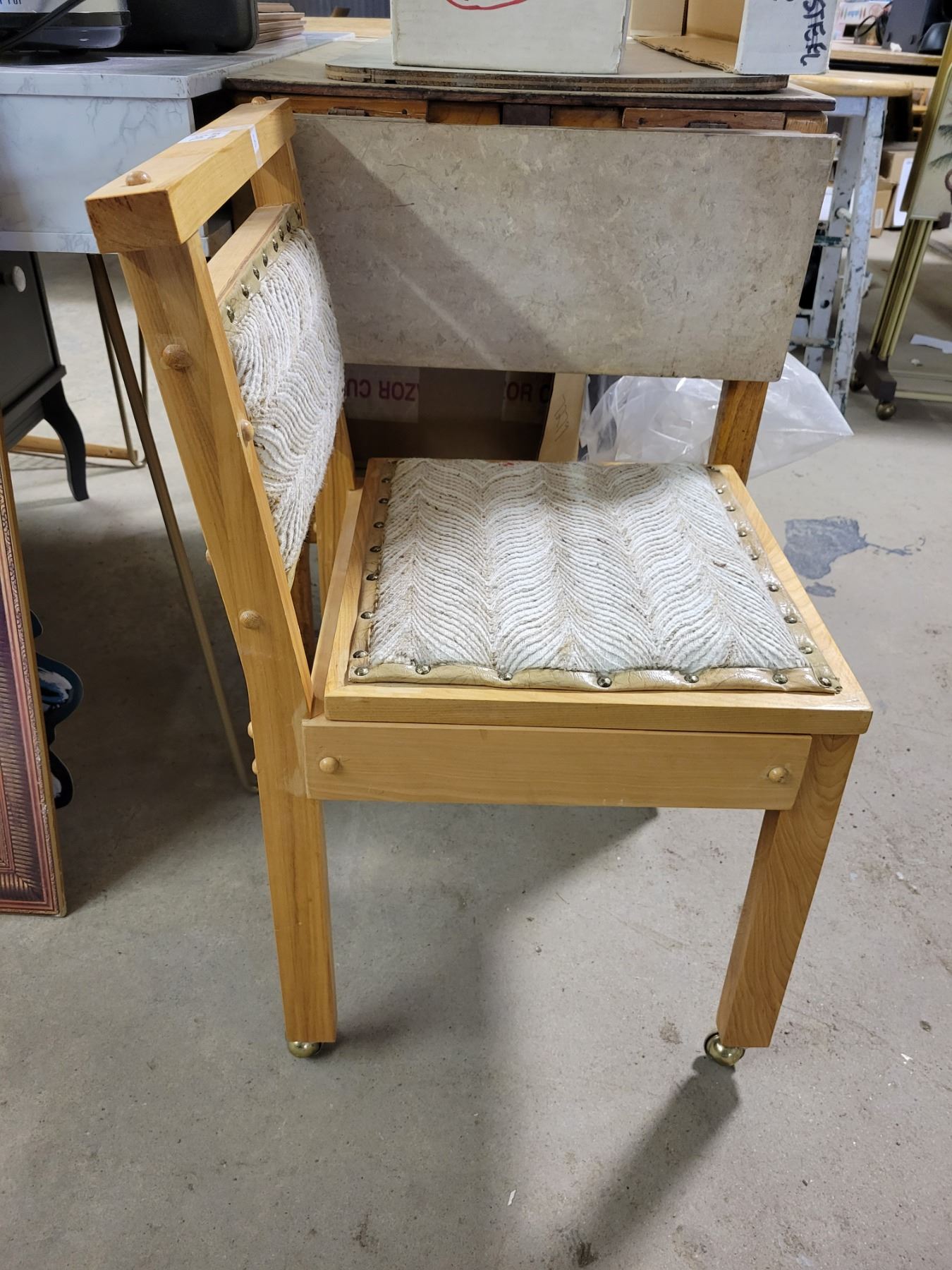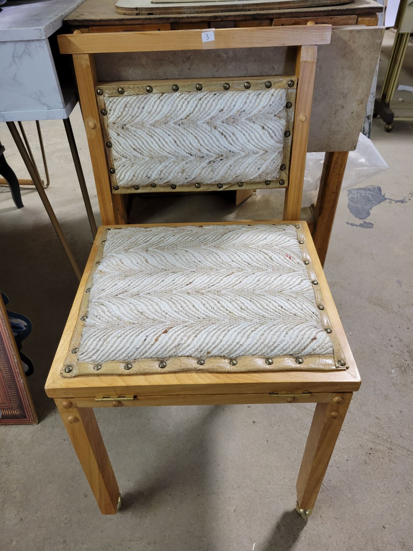 Sewing chairs, metal castors & flip up storage seat