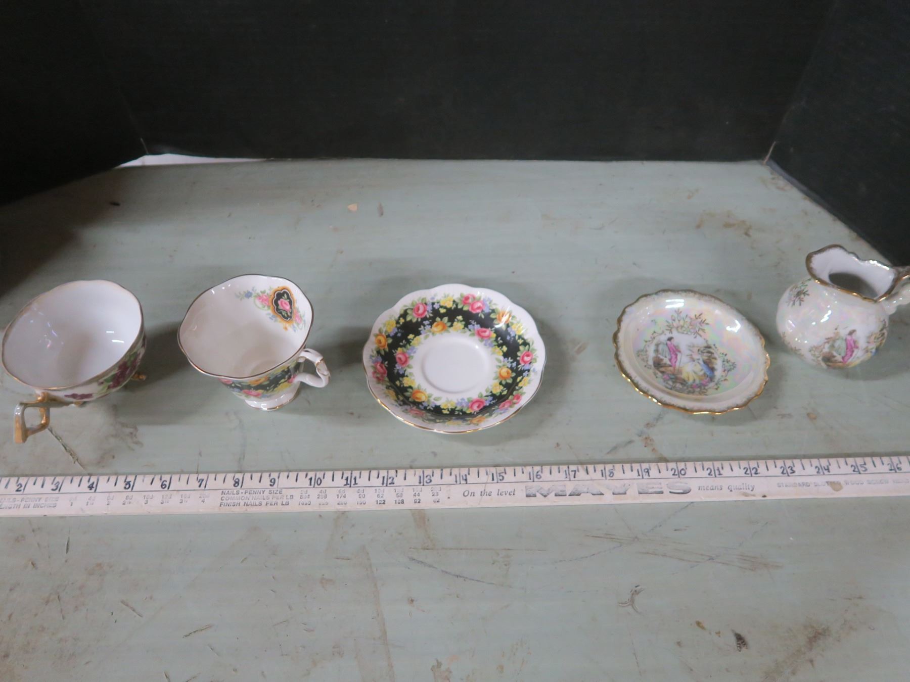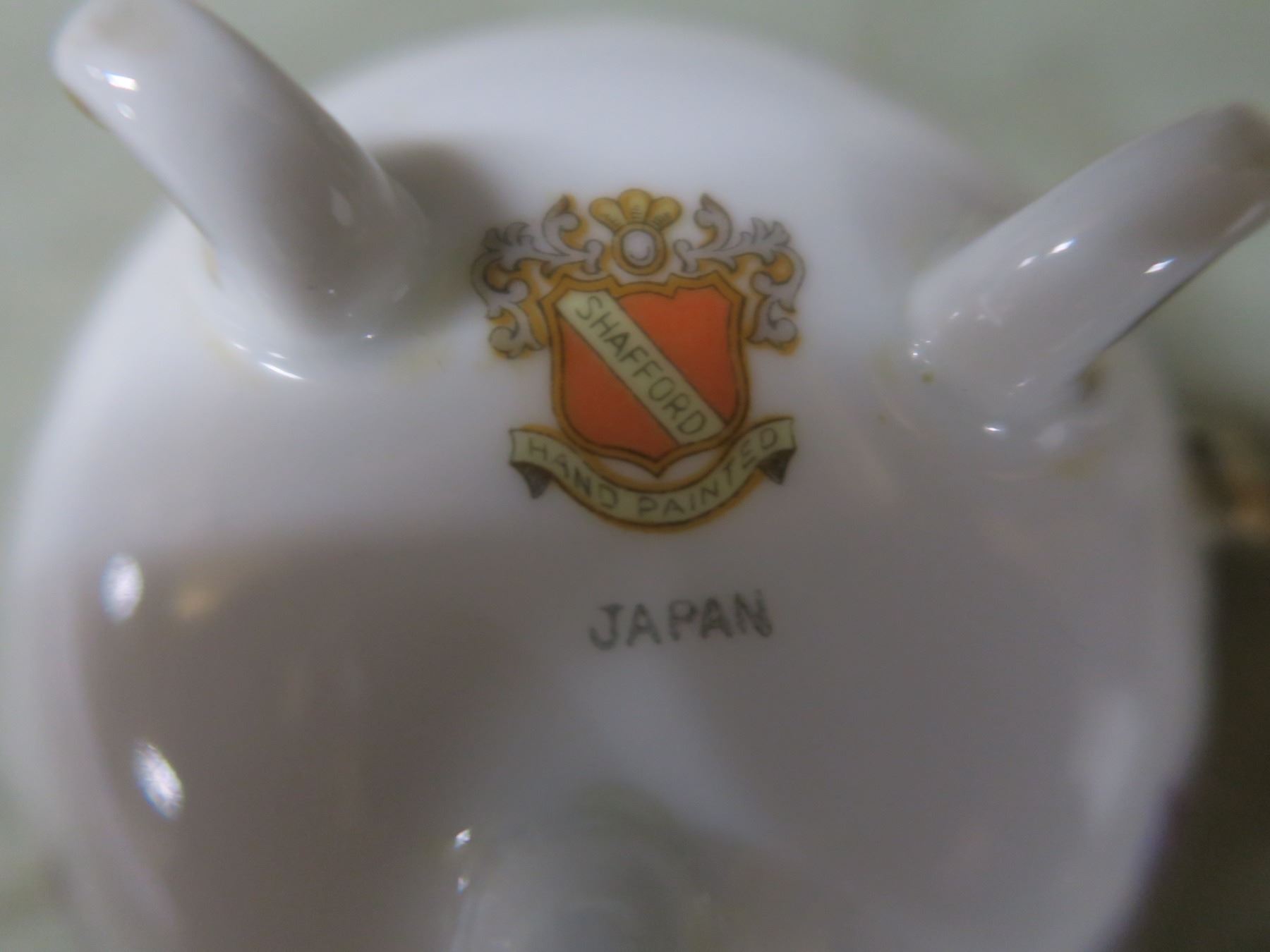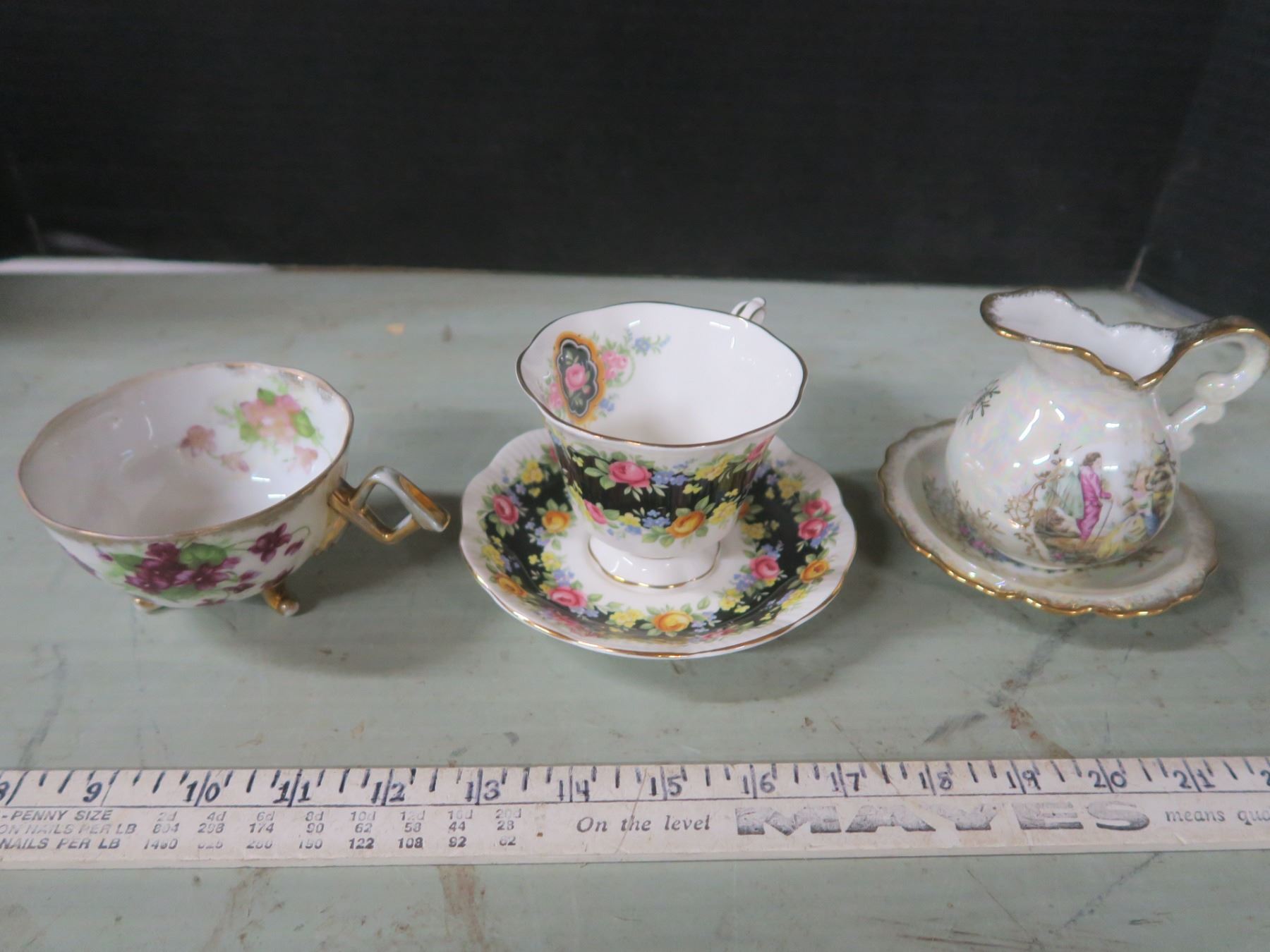 Shafford 3 footed tea cup, Royal Albert tea cup and saucer, and Japan creamer and saucer - bone China