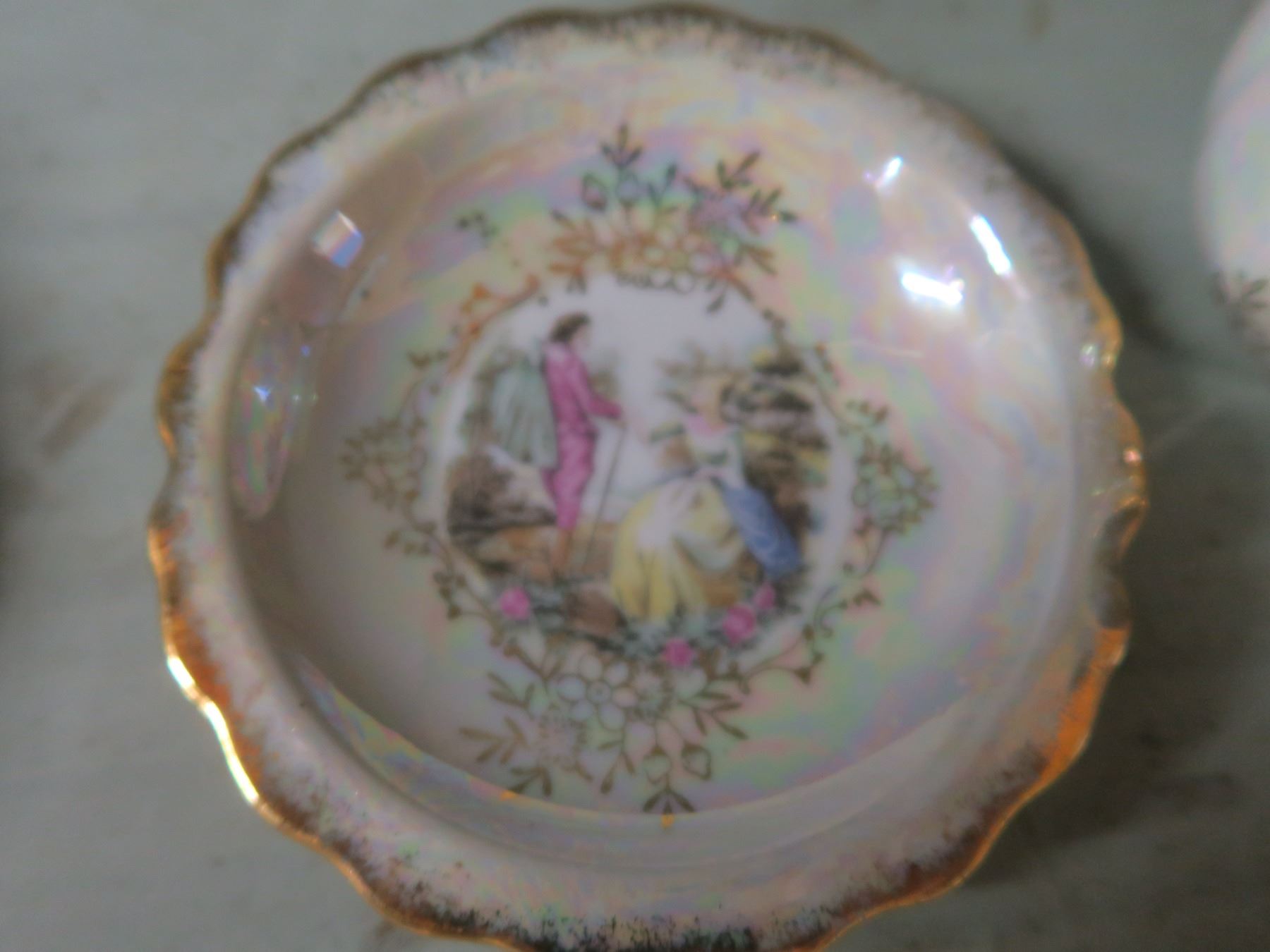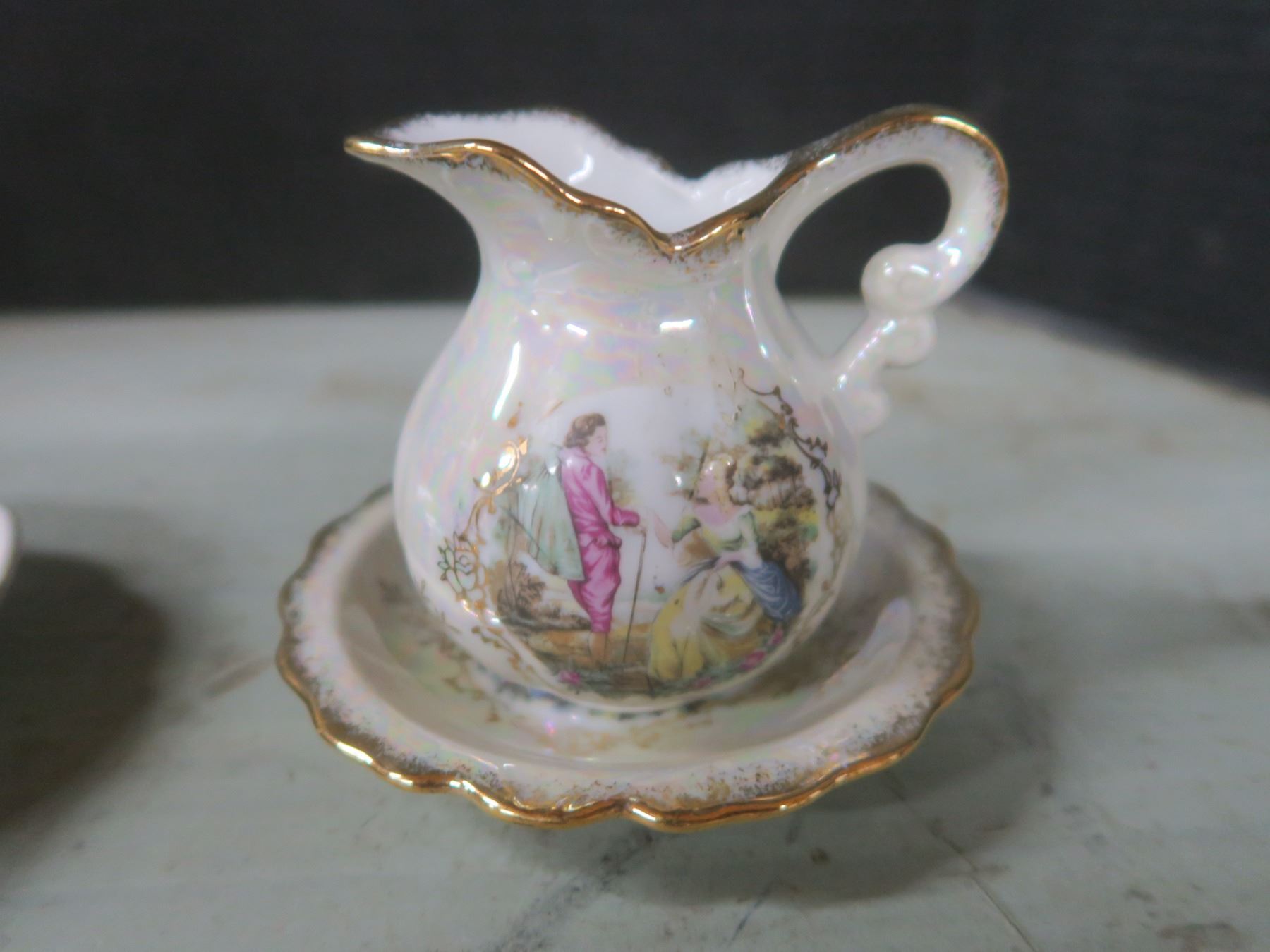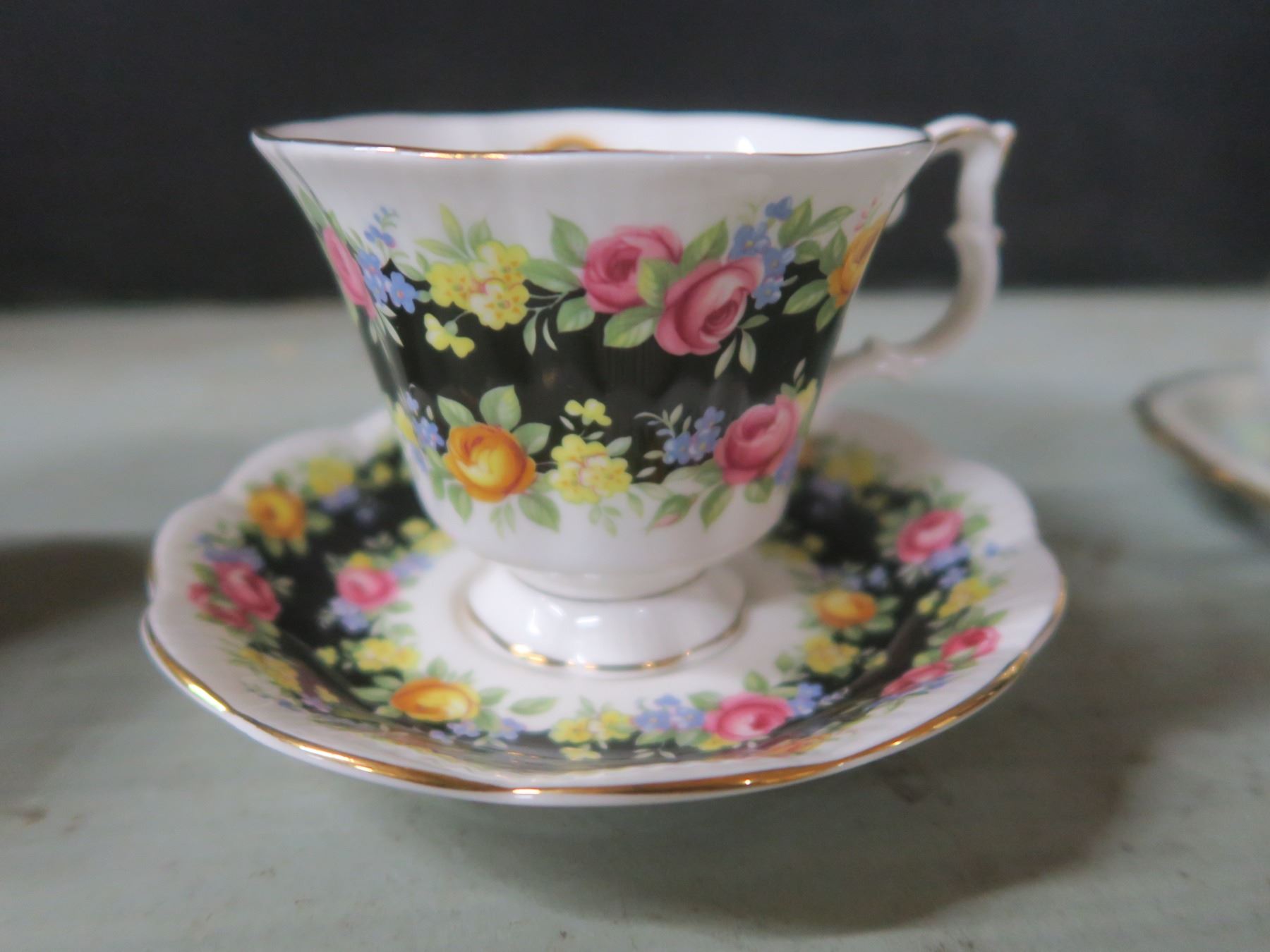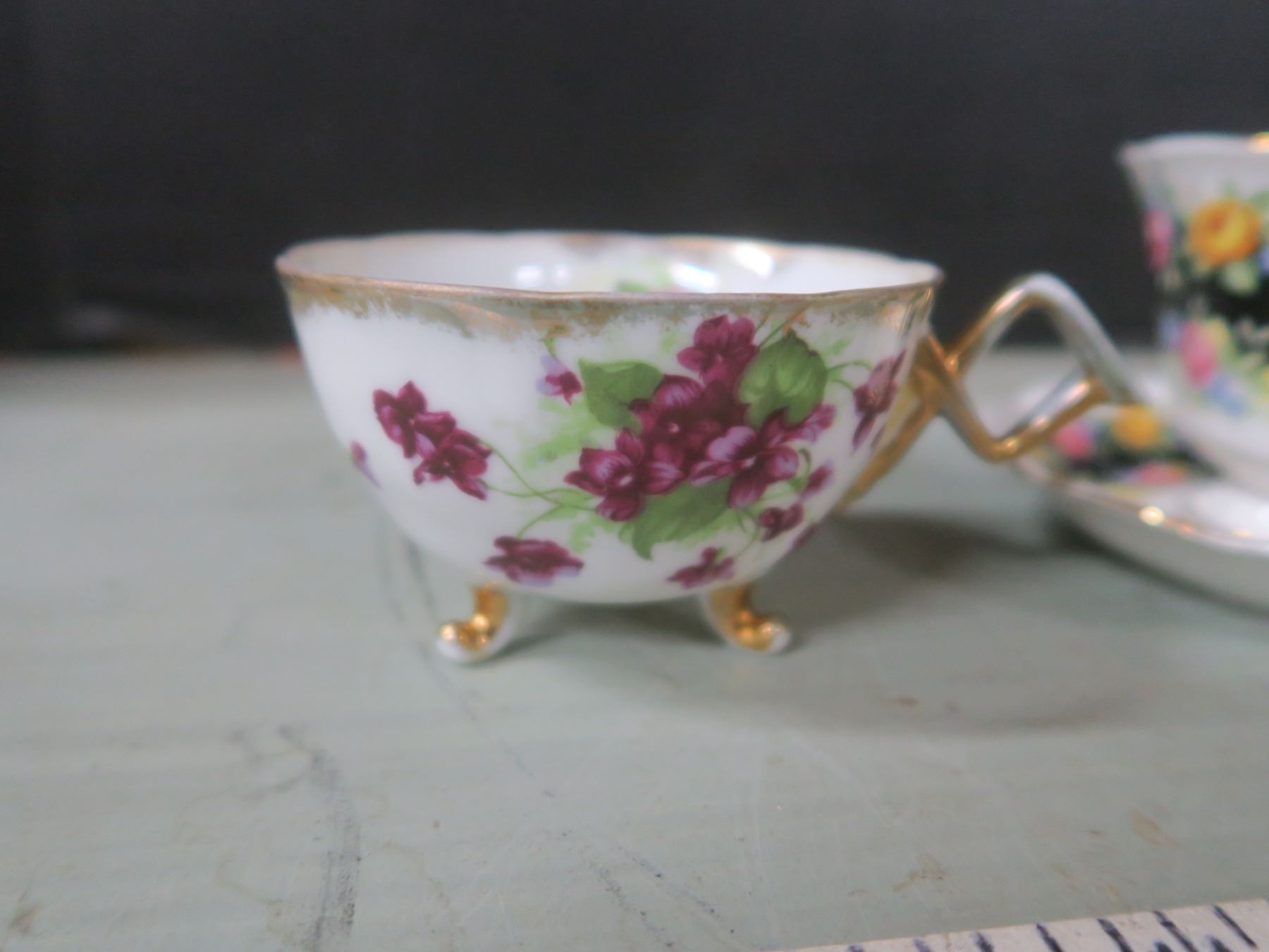 Shafford 3 footed tea cup, Royal Albert tea cup and saucer, and Japan creamer and saucer - bone China