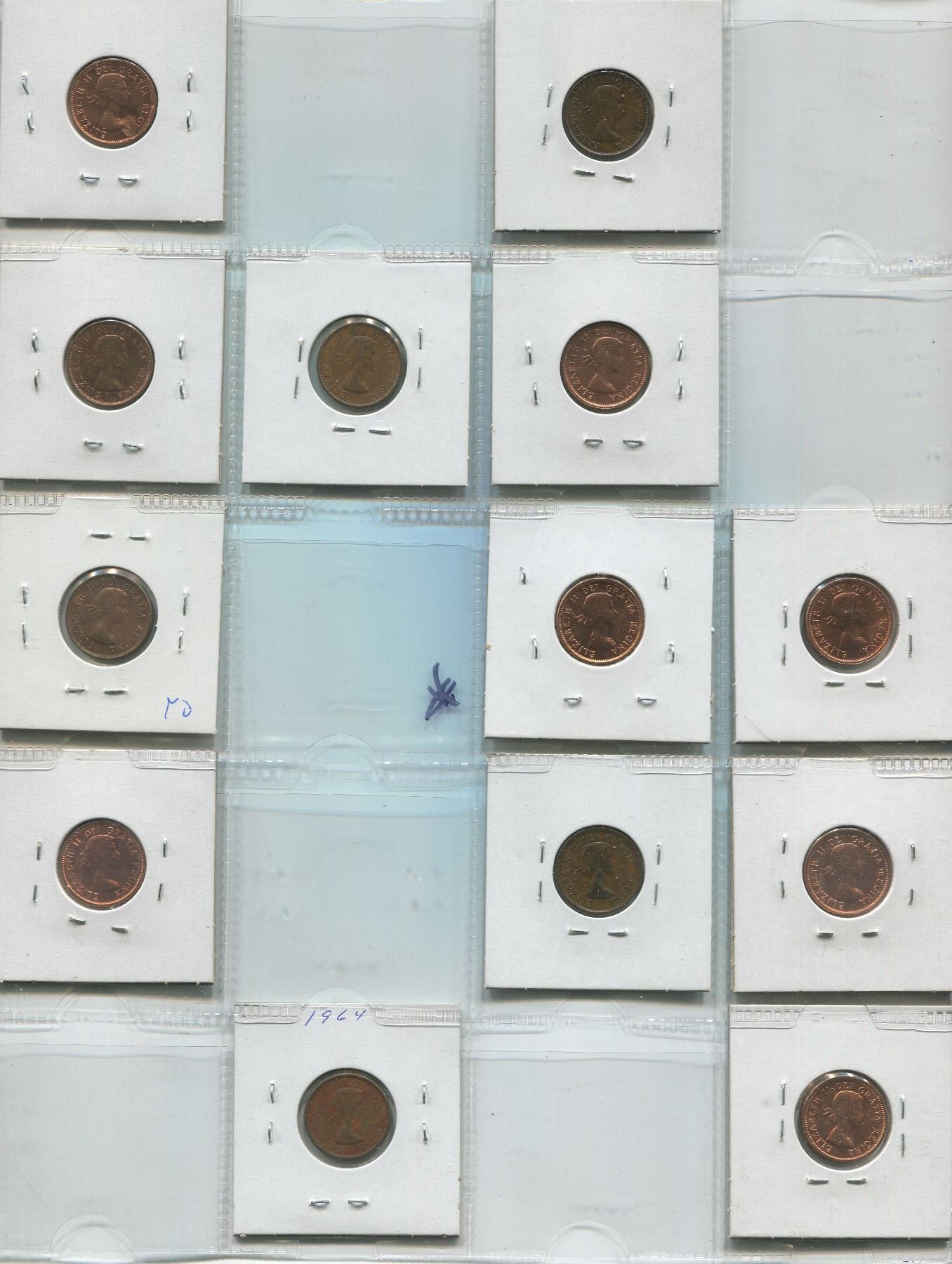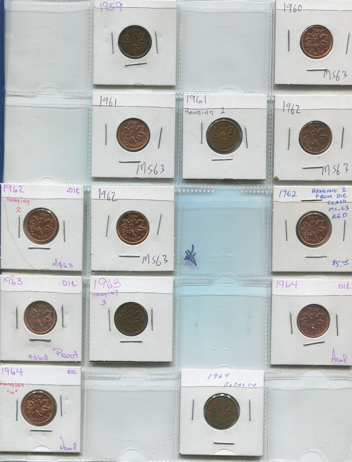 Sheet Of Canadian One Cent Coins 1959-1964 (13)