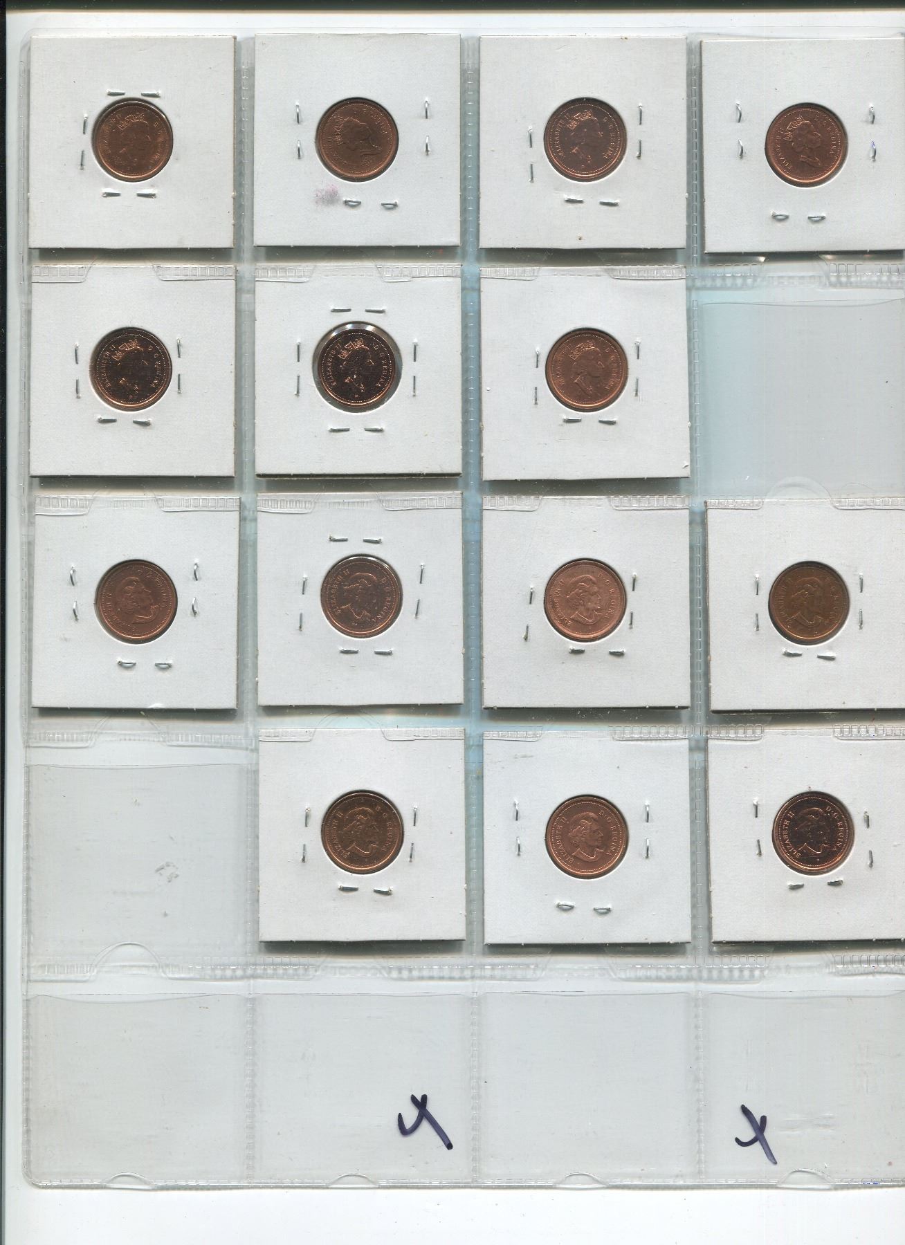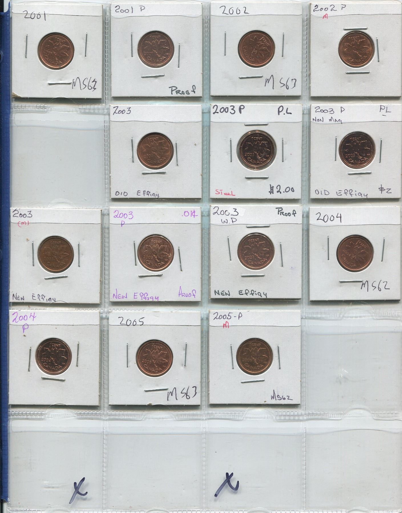Sheet Of Canadian One Cent Coins 2001-2005 (14)