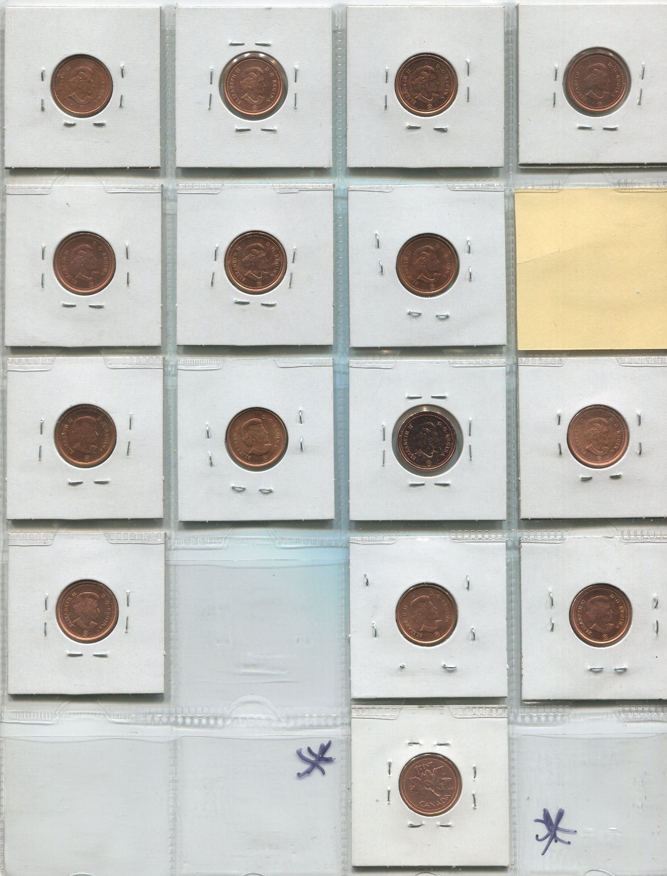 Sheet Of Canadian One Cent Coins 2002-2012 (15)
