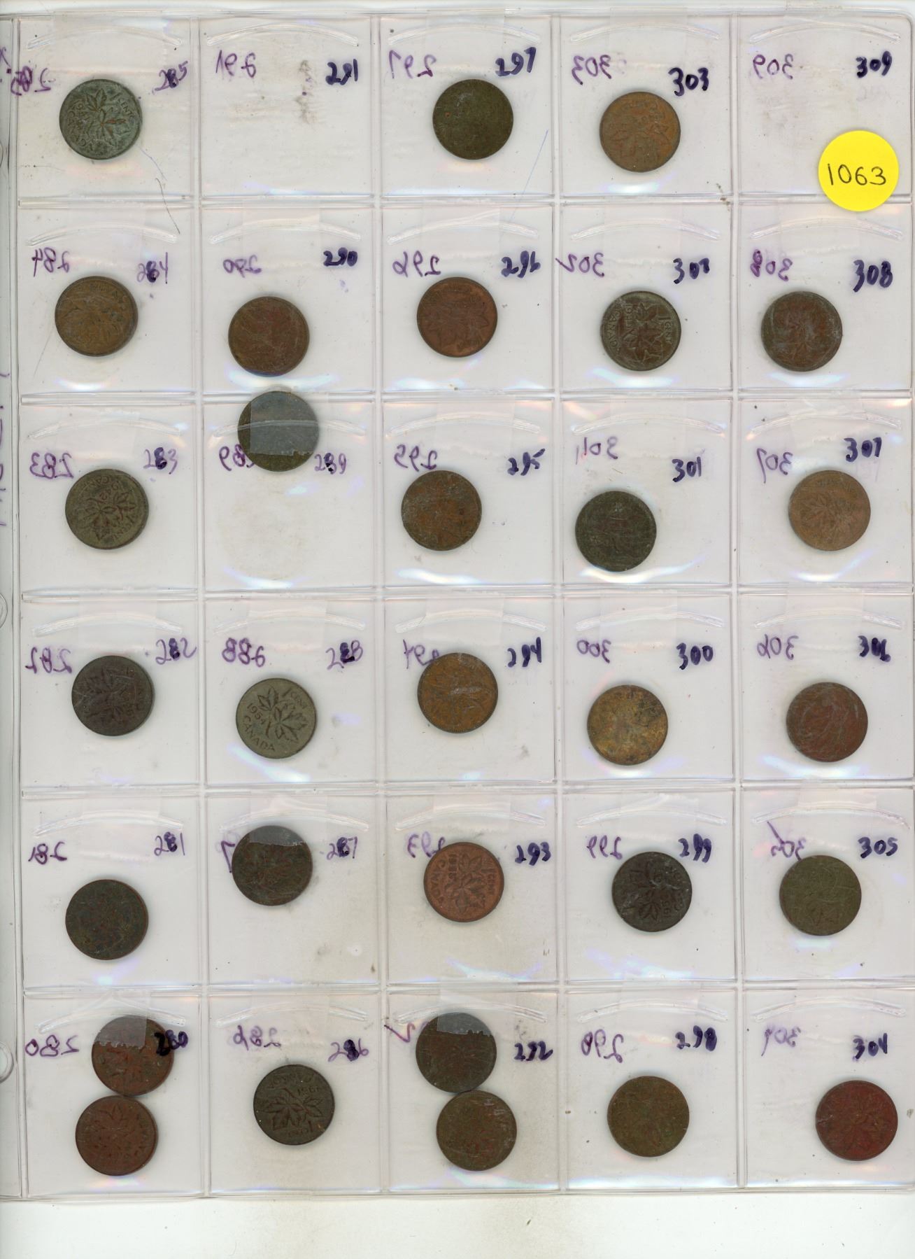Sheet Of Canadian Pennies from 1940's / 1950's