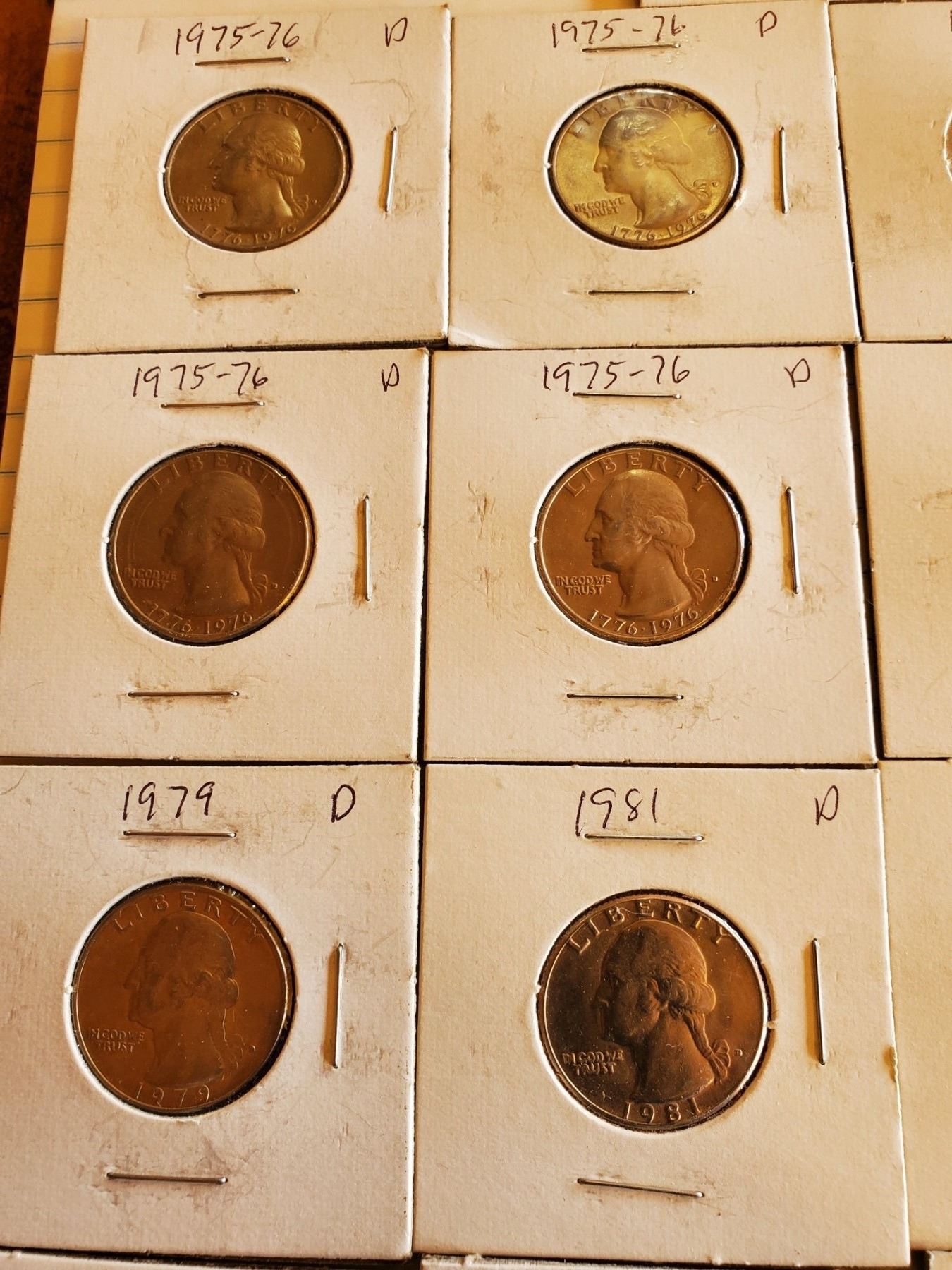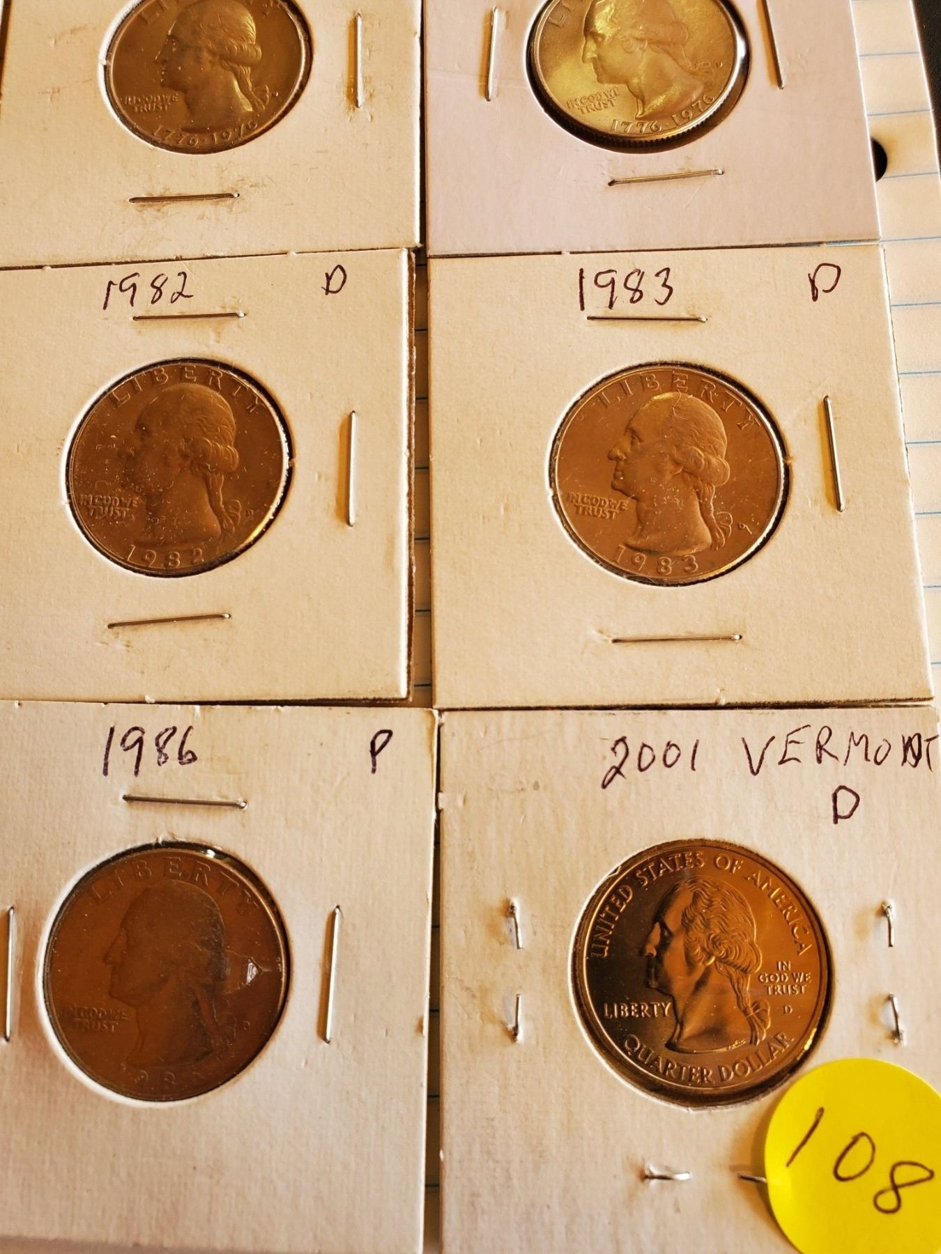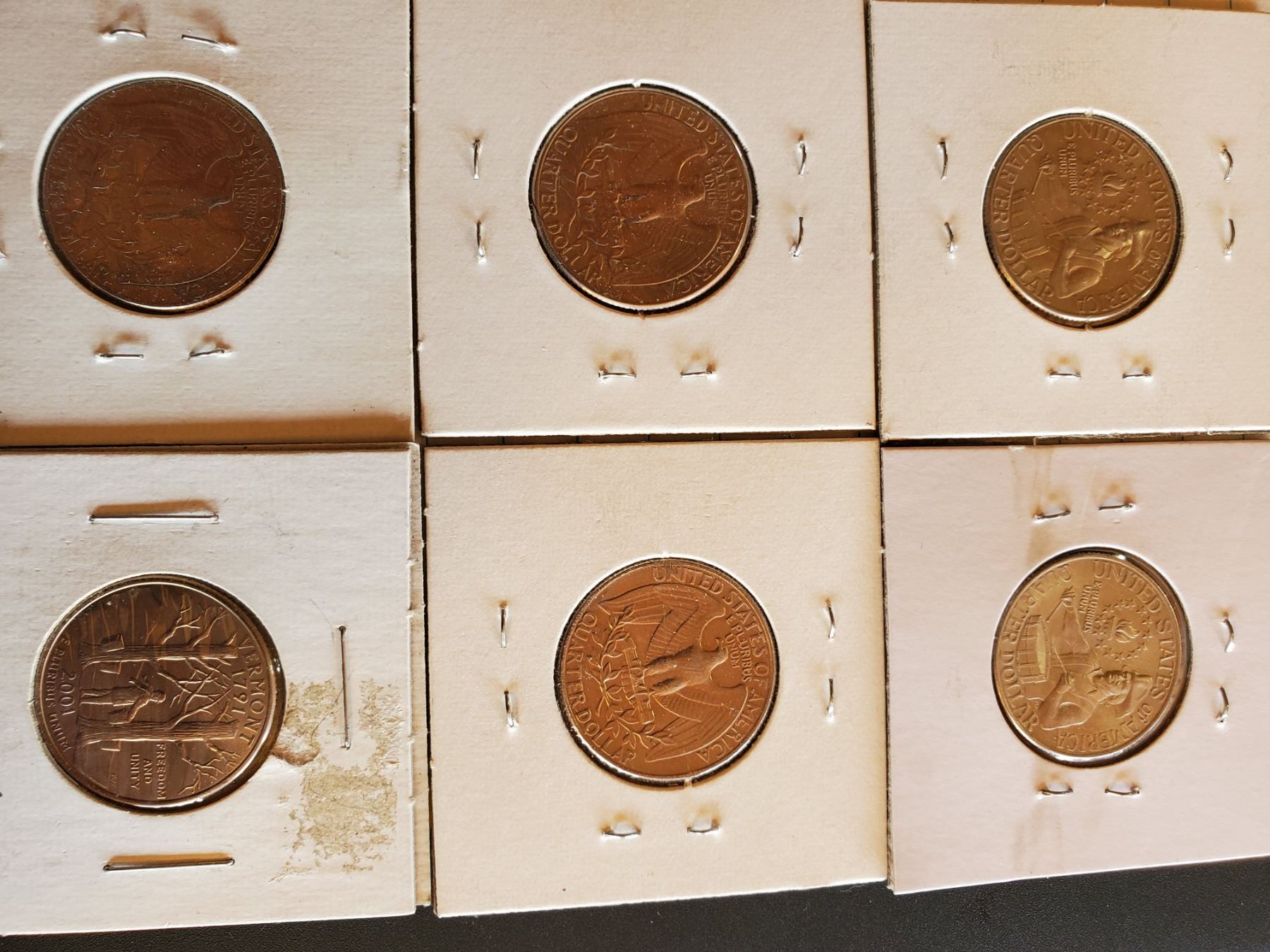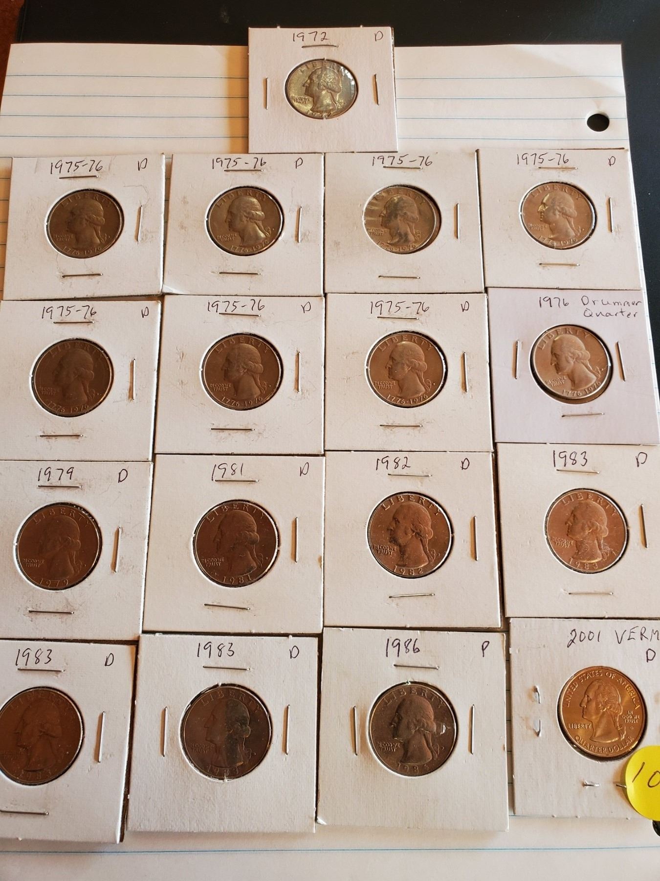 Sheet of 17 U.S. Quarters 1972-86 and 2001 - 8 Drummers, 8 Eagles, 1 Vermont