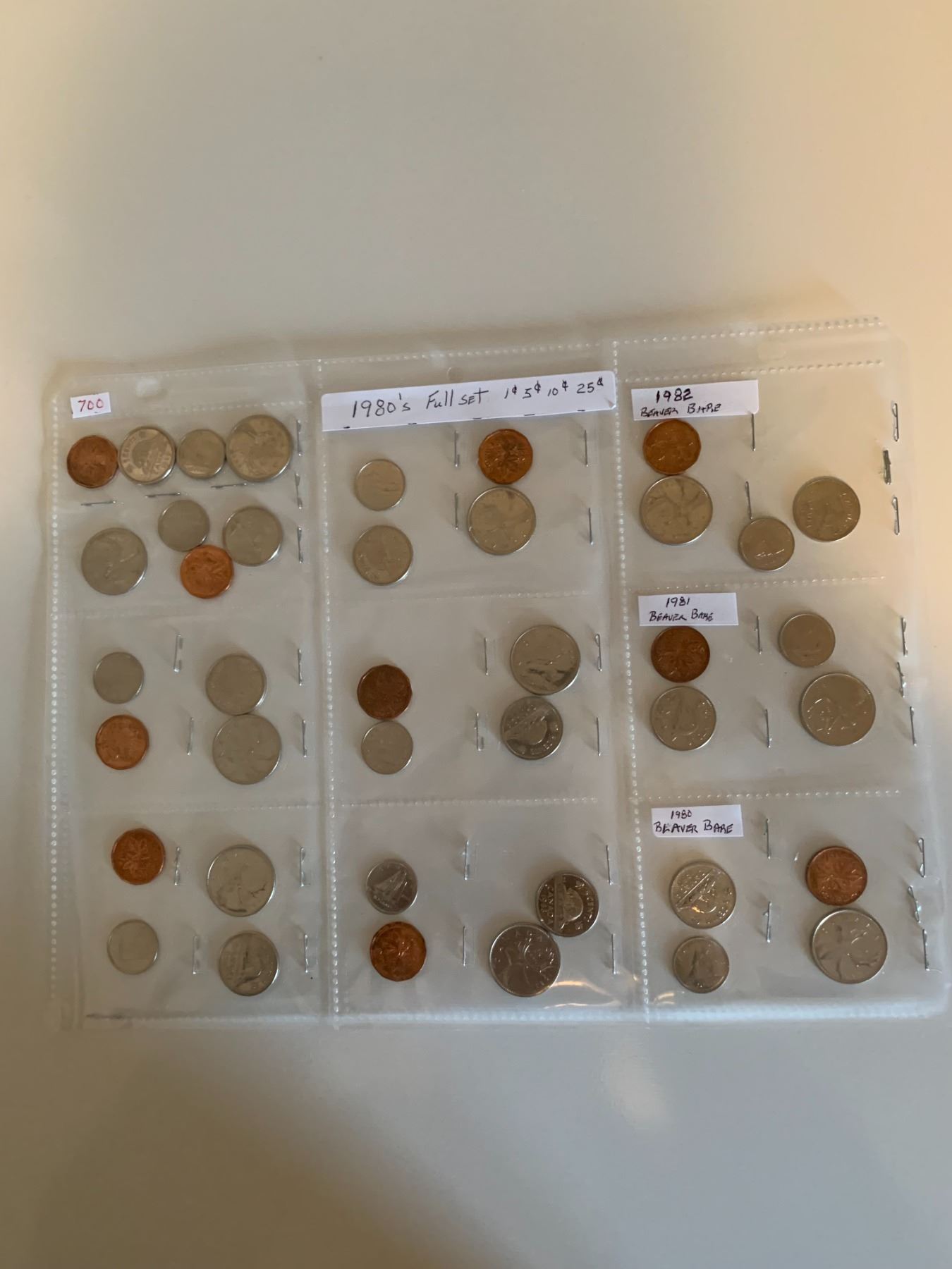 Sheet of 1980's 1 cent , 5 cent , 10 cent and 25 cent conis